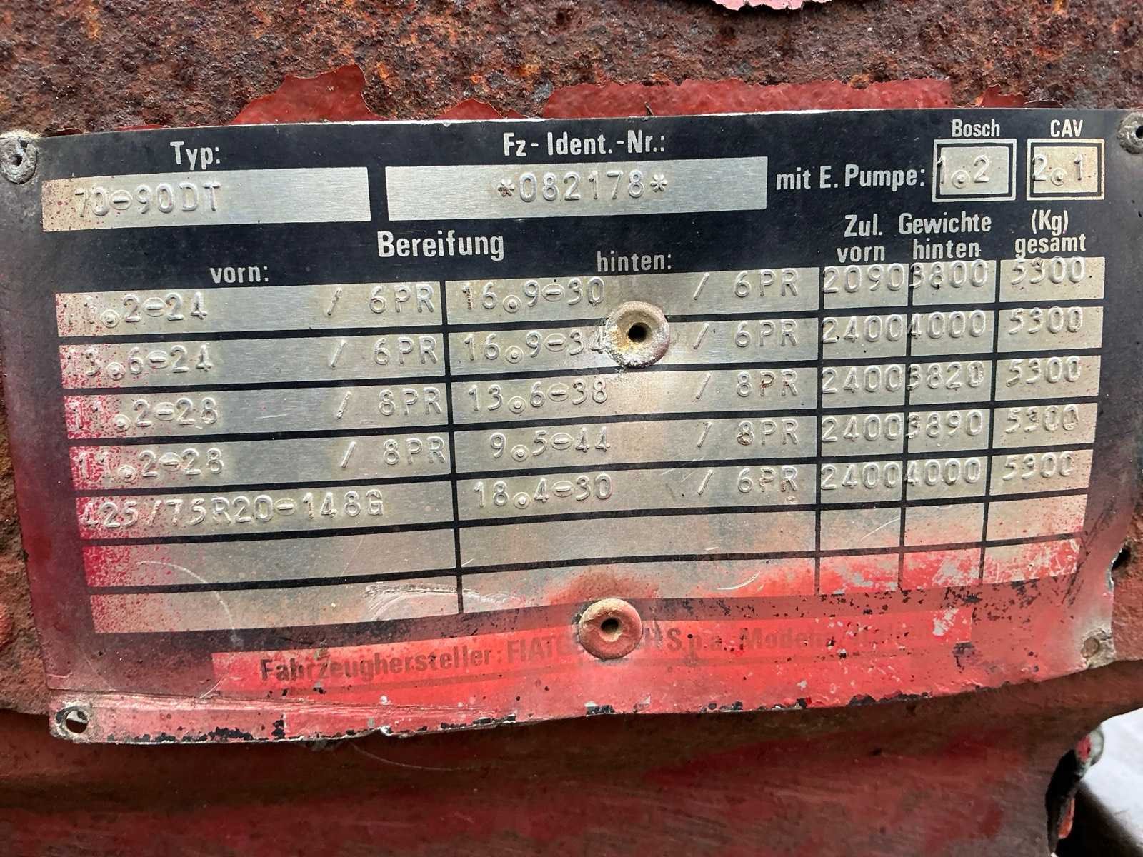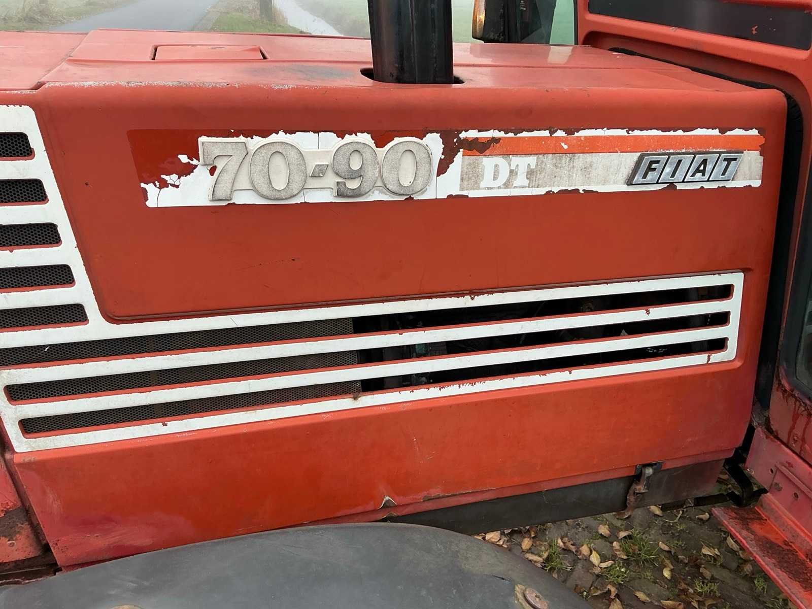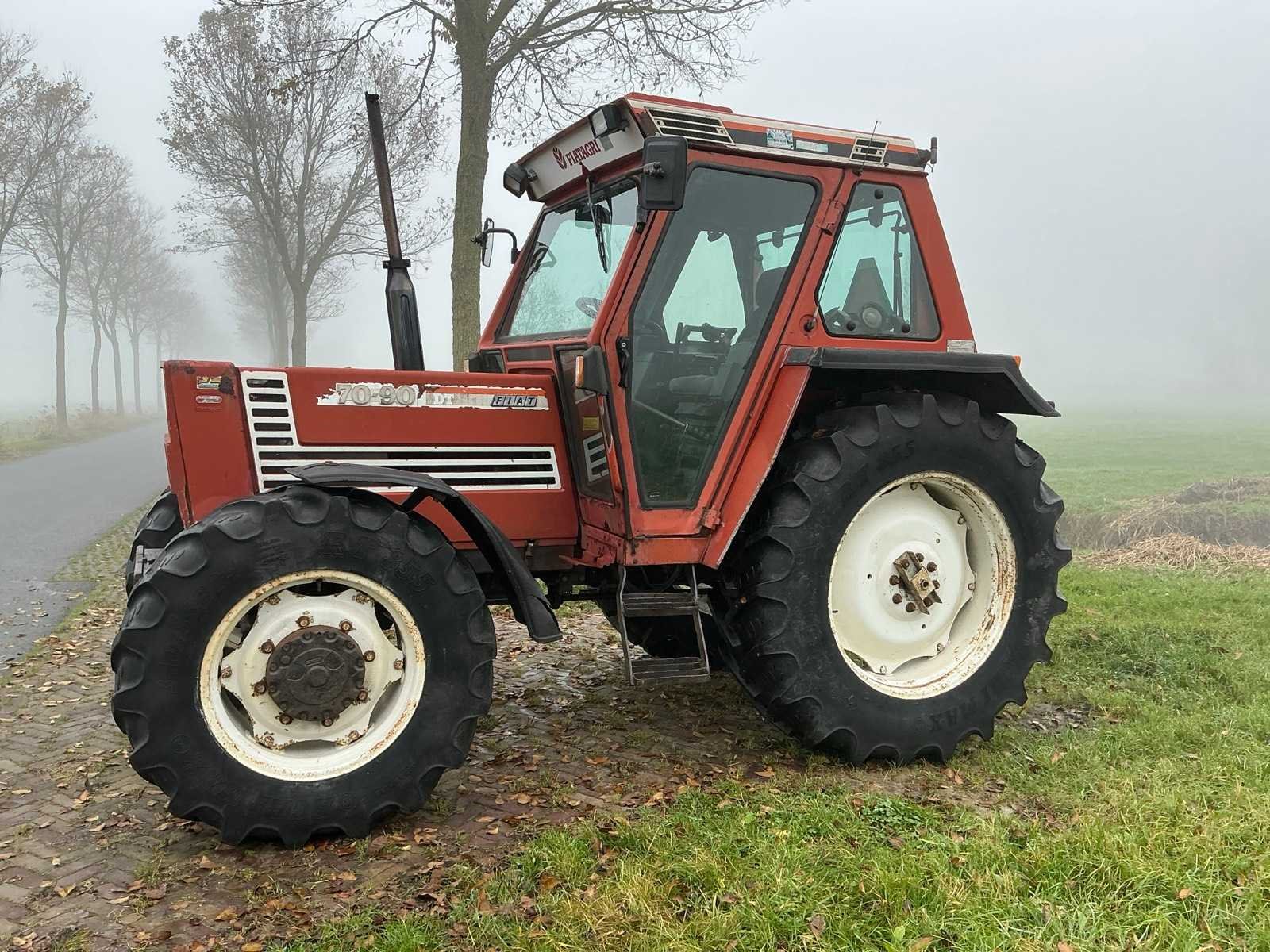 Fiat 70-90 dt 4x4; 70pk ; trekhaak ; Tractor komt van stoppend bedrijf !! Nee Merk: Fiat Type: 70-90 DT Bouwjaar: 1990 Kenteken: TJV-38-D Afgelezen urenstand: 6573 Versnellingsbaktype: Handgeschakeld 4 versnellings/ 3 groepen Aantal hydraulische ventielen achter: 4 Bandenmaat voor: 340/85R24 Bandenmaat achter: 420/85R34 Cabine: true Luchtgeveerde stoel: true Kentekenpapieren compleet?: true Datum eerste toelating: 1990-06-30 Nationaliteit documenten: NL Zelf rijdend exporteren: Yes