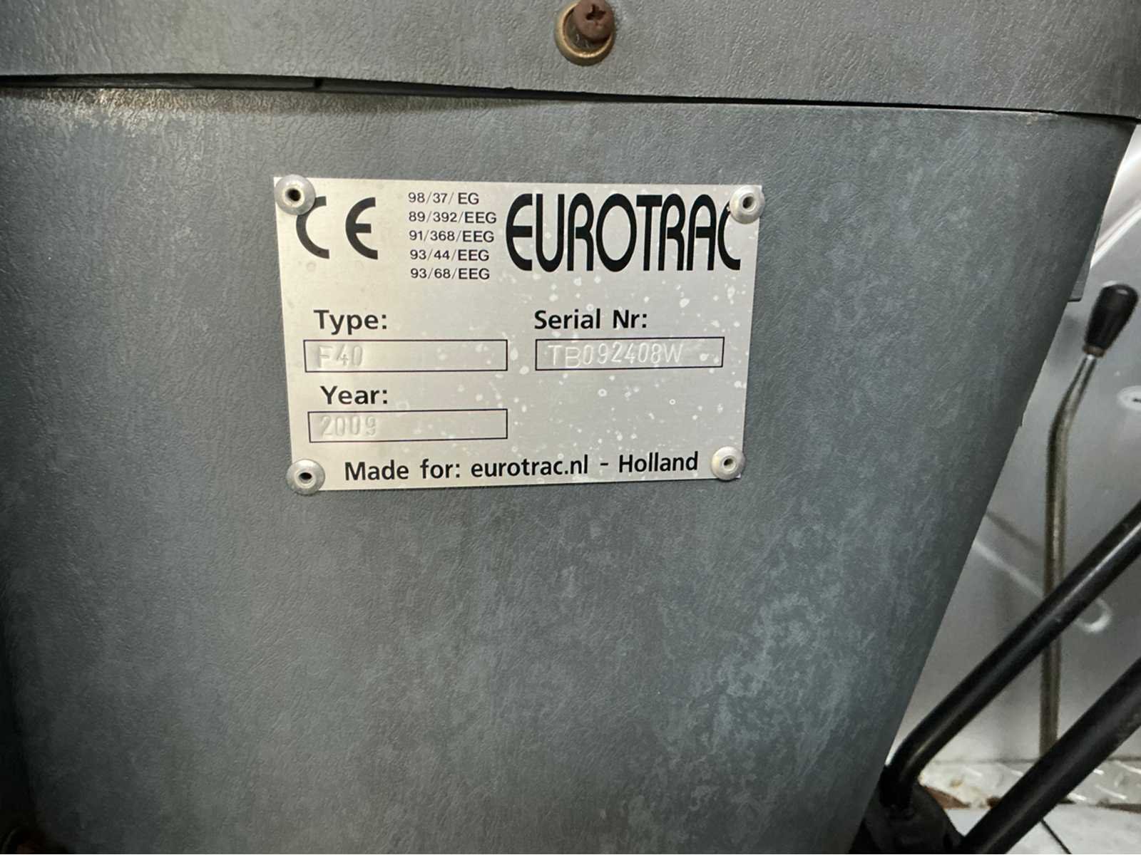 Conditie: goede staat. Machine heeft een toegestaan geremd gewicht van 2275 kg, ongeremd: 2700 kg. De maximale snelheid is: 40 km/uur en heeft een aftakastoerental: 540/1000. Machine is voorzien van werkverlichting, rijwegverlichting en inklapbare beugel. Het kapje van de linker lamp ontbreekt maar is werkend. Nee Merk: Euro Trac Type: F40II Bouwjaar: 2009 Motorvermogen (kW): 29kW Afgelezen urenstand: 61 Versnellingsbaktype: Handgeschakeld Aantal hydraulische ventielen achter: 5 Bandenmaat voor: 8,3-20 Bandenmaat achter: 12,4-28 Totale afmeting L: 3060mm Totale afmeting Breedte: 1650mm Totale afmeting Hoogte: 1900mm Zelf rijdend exporteren: Ja