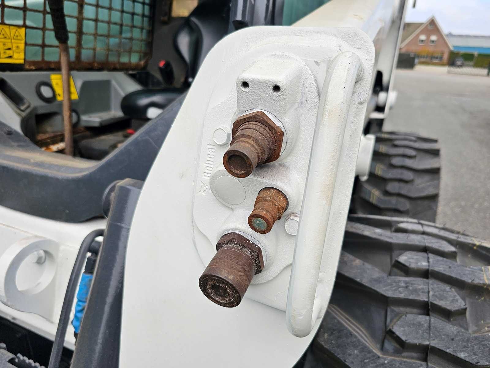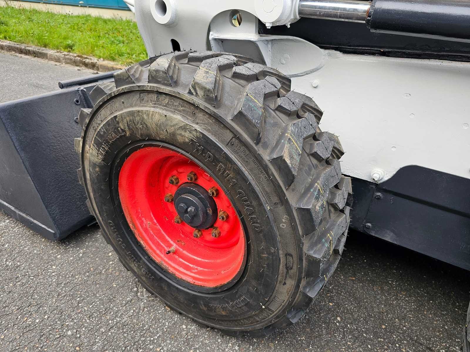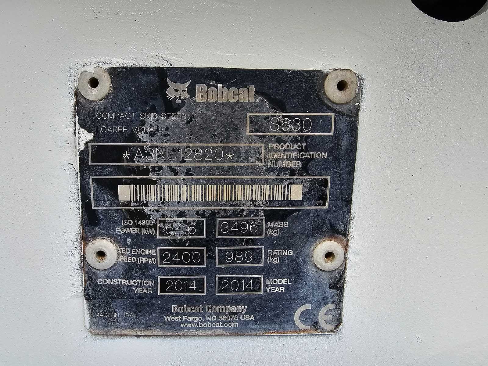 Capaciteit: 989 kg. Voorzien van: cabine, info display, werkverlichting en nieuwe banden. No Merk: Bobcat Type: S630 Bouwjaar: 2014 Serienummer: A3NU12820 Motorvermogen (kW): 54.6kW Brandstof: diesel Bandenmaat: 12-16.5 Graafbak afm. b: 1800mm Afgelezen urenstand: 2045 Eigen gewicht: 3496kg Totale afmeting L: 3470mm Totale afmeting Breedte: 1880mm Totale afmeting Hoogte: 2060mm Leveringsvoorwaarden: Geladen op vrachtwagen