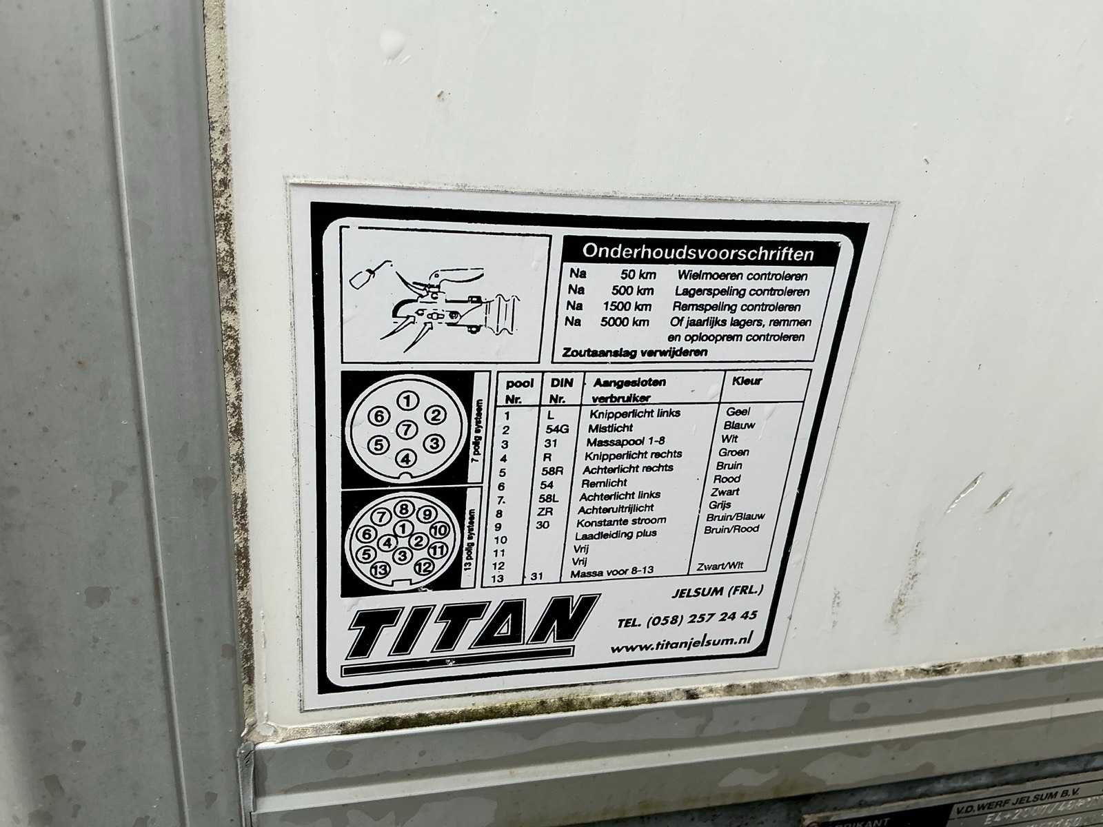 Voorzien van: 3 rolluiken, disselkist, verlichting, neuswiel, handrem, trekhaakkoppeling, reserveband, sleutels, mover Nee Merk: Titan jelsum Bouwjaar: 2016 Chassisnummer: XL9PGV35016008363 Aantal assen: 2 Laadbak afmeting l: 340cm Laadbak afmeting b: 180cm Ledig gewicht: 1120kg Laadvermogen: 2380kg Gesloten opbouw: true Datum eerste toelating: 2016-04-19 Datum eerste toelating (NL): 2016-04-19 Kenteken: 90-WN-VN Kentekenpapieren compleet?: true Hoogte: 165cm