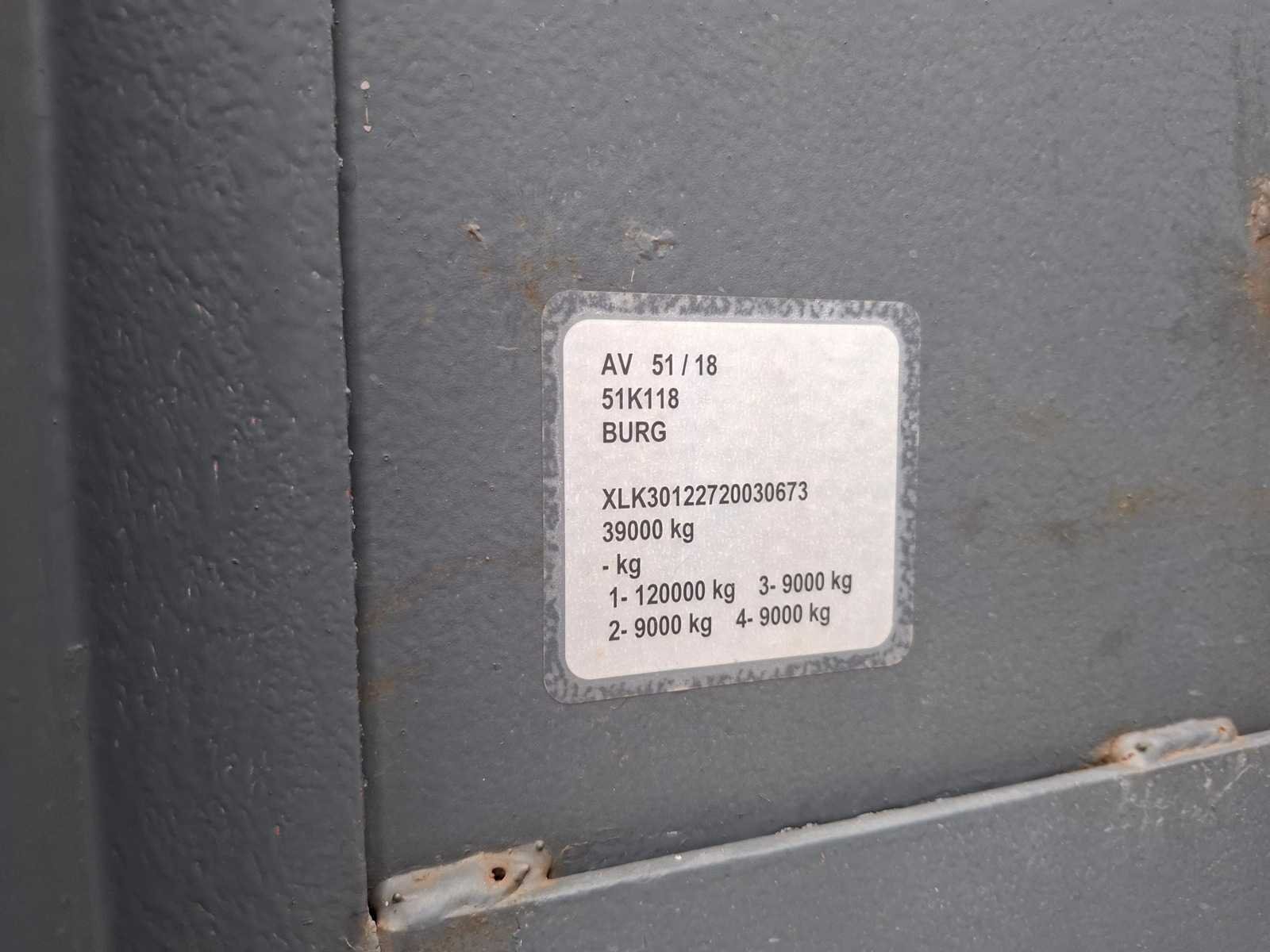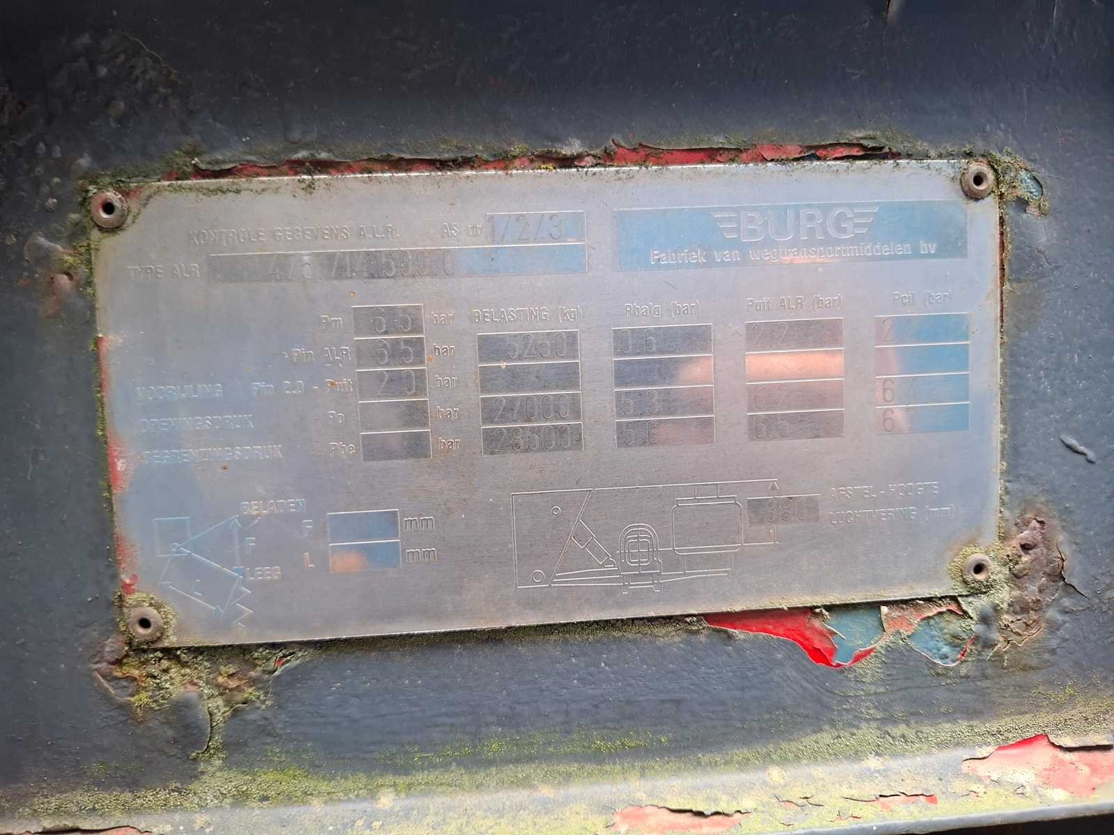 Belgische papieren, gestuurde as achter, abs storing, Nee Merk: Burg Type: BPO 12-27 SRNXX Type aanhangwagencarrosserie: Plateauwagen Bouwjaar: 2002 Chassisnummer VIN: XLK30122720030673 Datum eerste toelating (NL): 19-12-2002 APK vervaldatum: 22-06-2025 Aantal assen: 3 Laadvermogen: 39000kg Eigen gewicht: 6990kg Totale afmeting L: 13850mm Totale afmeting Breedte: 2550mm Totale afmeting Hoogte: 3660mm Zelf rijdend exporteren: Mogelijk