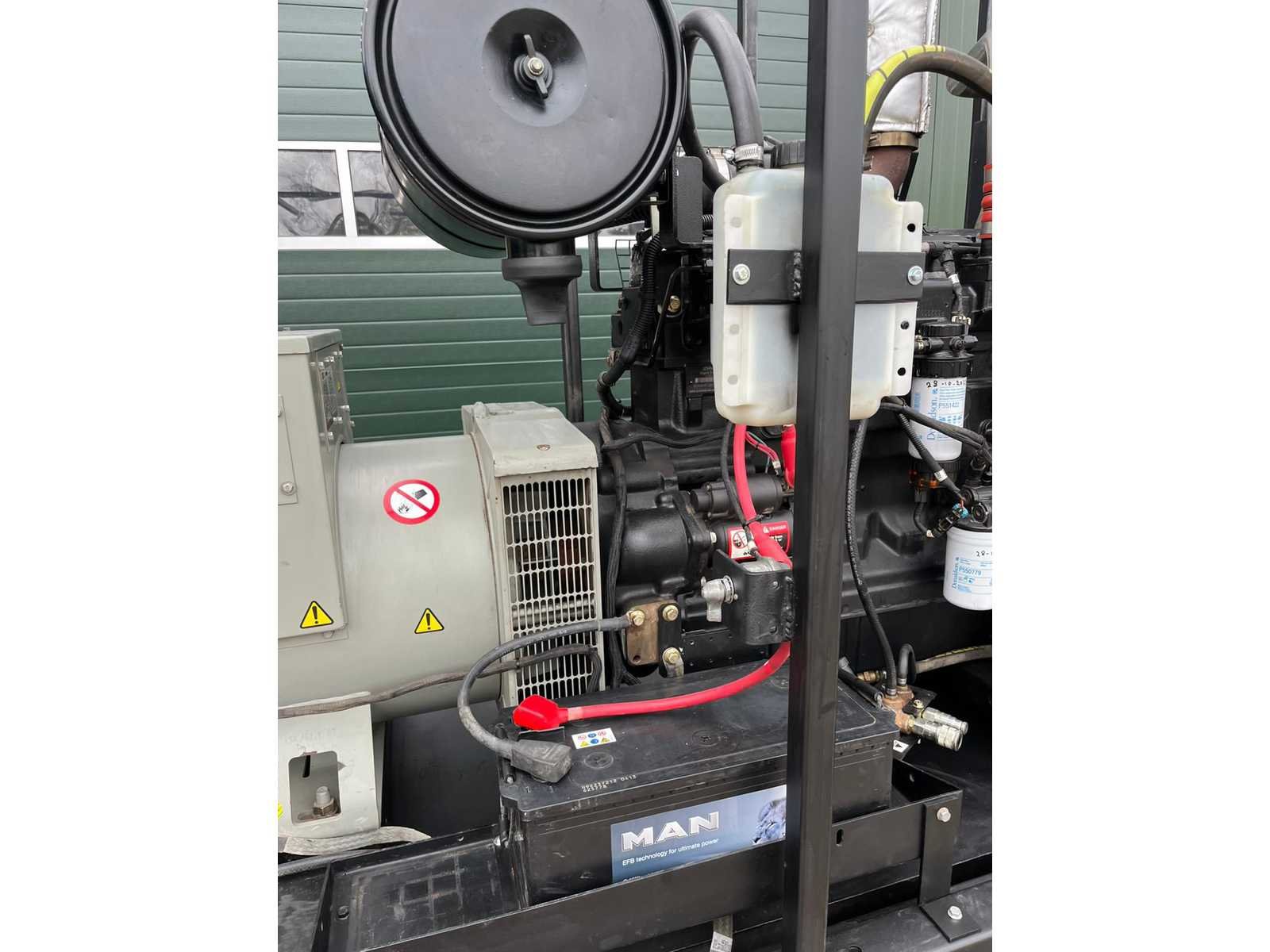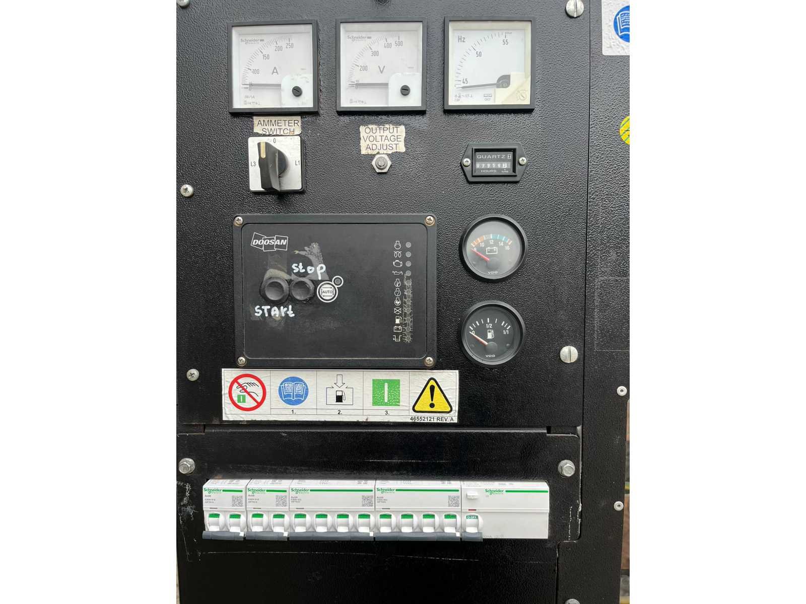 Werkende staat, recent onderhoud uitgevoerd (motorolie, motorolie filter, brandstoffilters), heftruckvork aansluiting, stalen behuizing, Nee Merk: Doosan Type: G 150 KVA Bouwjaar: 2013 Serienummer: G15030058 Capaciteit.: 150kVA Type motor: John Deere DD22291 6,8L Afgelezen urenstand: 7956 Machinegewicht: 3532kg Totale afmeting L: 3520mm Totale afmeting Breedte: 1200mm Totale afmeting Hoogte: 2400mm