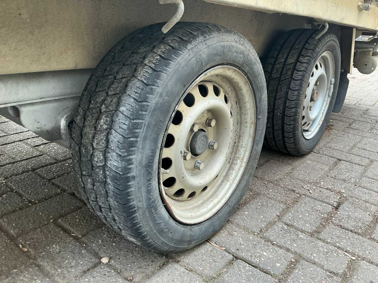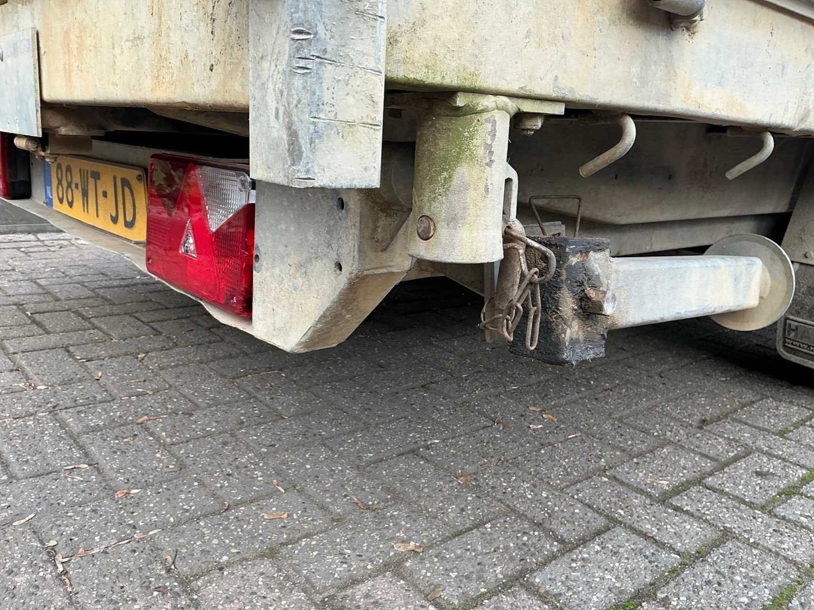 Voorzien van: steunpoten, neuswiel, aanhangwagenkoppeling met oplooprem, verlichting Nee Merk: Hapert Type: E3502 Bouwjaar: 2007 Chassisnummer: XLHE3500000697651 Aantal assen: 2 Laadbak afmeting l: 404cm Laadbak afmeting b: 180cm Ledig gewicht: 1100kg Laadvermogen: 2400kg Kenteken: 88-WT-JD