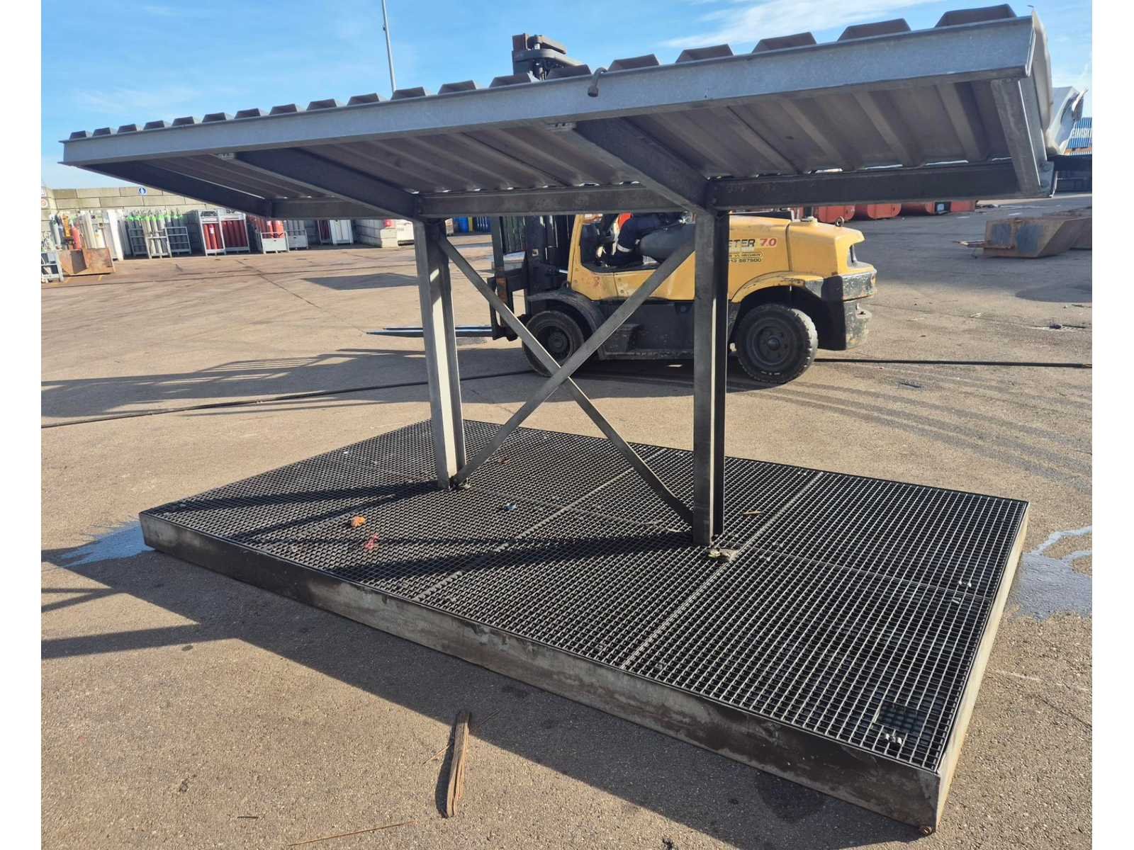 Voorzien van uitneembare roosters, dakconstructie, opvangbak met capaciteit van 1.85m3. Nee Totale afmeting L: 4200mm Totale afmeting Breedte: 2300mm Totale afmeting Hoogte: 2100mm