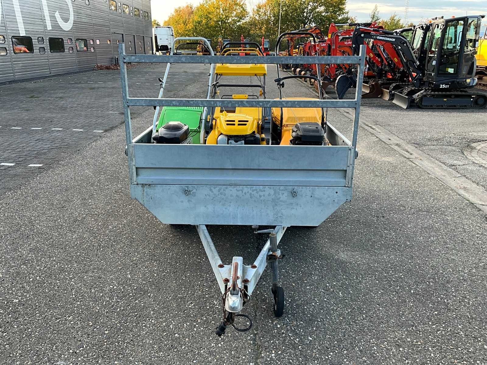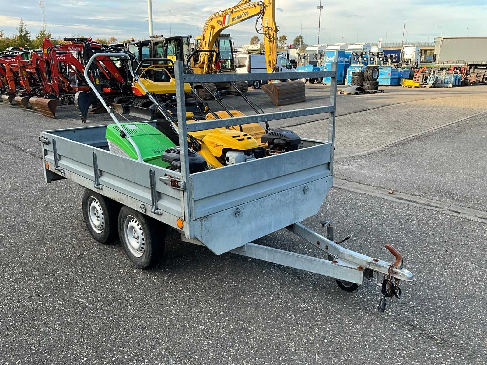 Ongeremd 750kg, koprek, laadvloerhoogte 70cm, inclusief 3x benzine grasmaaier Stiga AL-KO Viking Nee Aantal assen: 2 Laadbak afmeting l: 250cm Laadbak afmeting b: 155cm Hoogte: 190cm Lengte: 370cm Breedte: 170cm