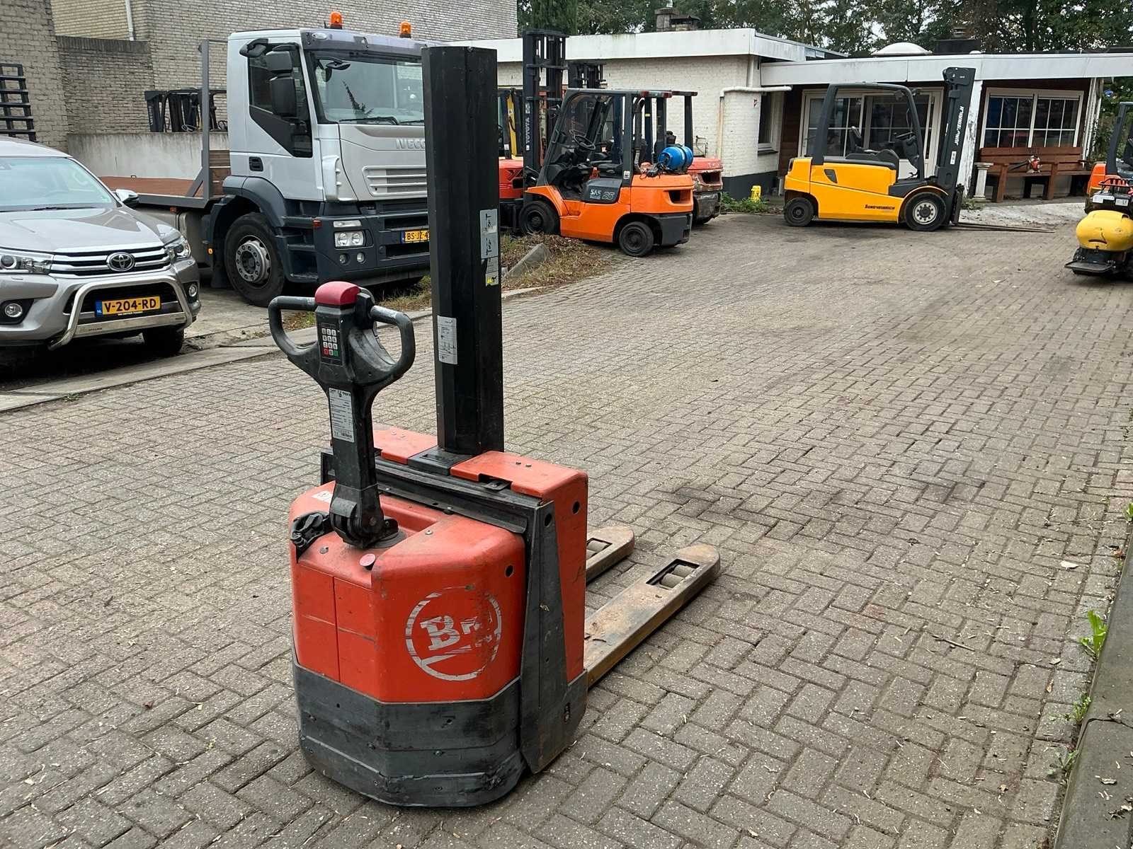 Voorzien van: achterloopstapelaar, dubbele lepels, ingebouwde oplader, electrisch rijden en heffen, dubbele looprollen Nee Merk: BT Type: SWE080L Bouwjaar: 2007 Serienummer: 993565/2007 Hefvermogen: 1600kg Hefhoogte: 1680mm Lepellengte: 1150mm Afgelezen urenstand: 2983 Eigen gewicht: 515kg Totale afmeting L: 1800mm Totale afmeting Breedte: 770mm Totale afmeting Hoogte: 1870mm Accu lader: true