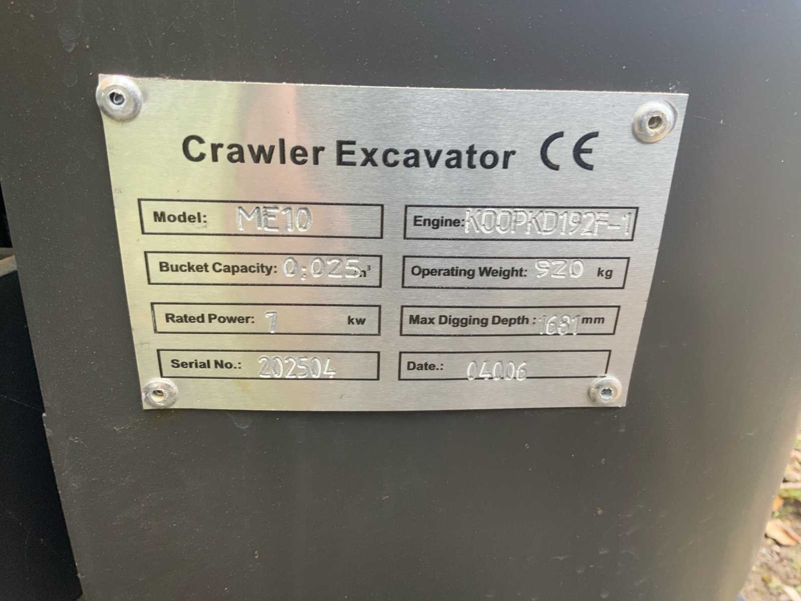 Voorzien van 3 graafbakken * alleen transporturen gemaakt * werkt naar behoren * voorzien van wortelknijper Nee Merk: Brincky Type: ME10 Bouwjaar: 2025 Serienummer: 202504 Motorvermogen (kW): 1kW Brandstof: Diesel Bedrijfsgewicht: 920kg Max. graafdiepte: 1681mm Inclusief graafbak: Ja Rups breedte: 170mm Afgelezen urenstand: 0 Totale afmeting L: 2200mm Totale afmeting Breedte: 950mm Totale afmeting Hoogte: 2150mm