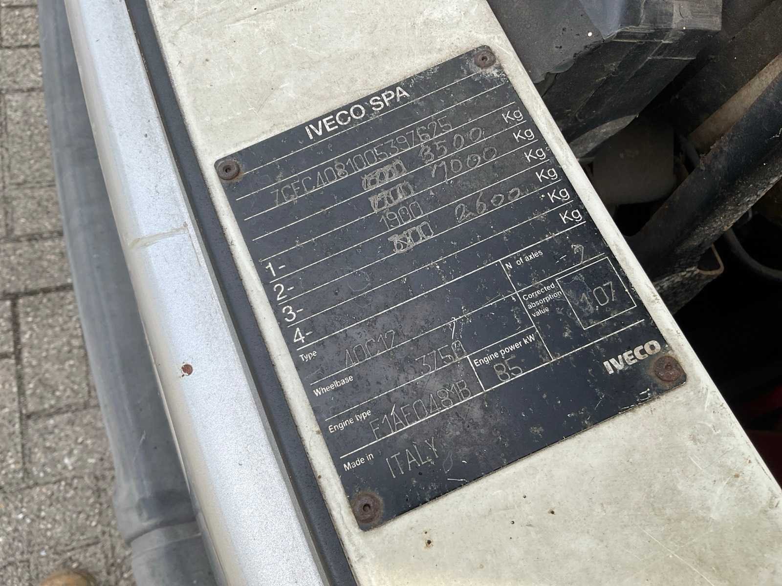 Nee Kenteken: 19-BH-GJ Merk: Iveco Type: 40C12 375 Model: Daily Bouwjaar: 2003 Afgelezen kilometerstand: 190844km Cilinderinhoud: 2400cc Vermogen (kW): 85kW Brandstof: diesel Datum eerste toelating: 2003-02-19 Datum eerste toelating (NL): 2003-02-19 APK vervaldatum: 2025-10-24 NAP status: Logisch Transmissie: Handgeschakeld Aantal zitplaatsen: 3 Kleur: niet van toepassing Ledig gewicht: 2920kg Laadvermogen: 580kg Vermogen (pk): 116 Aantal cilinders: 4 Carrosserie: veewagen Emissieklasse: 3 Maximaal trekgewicht ongeremd: 750