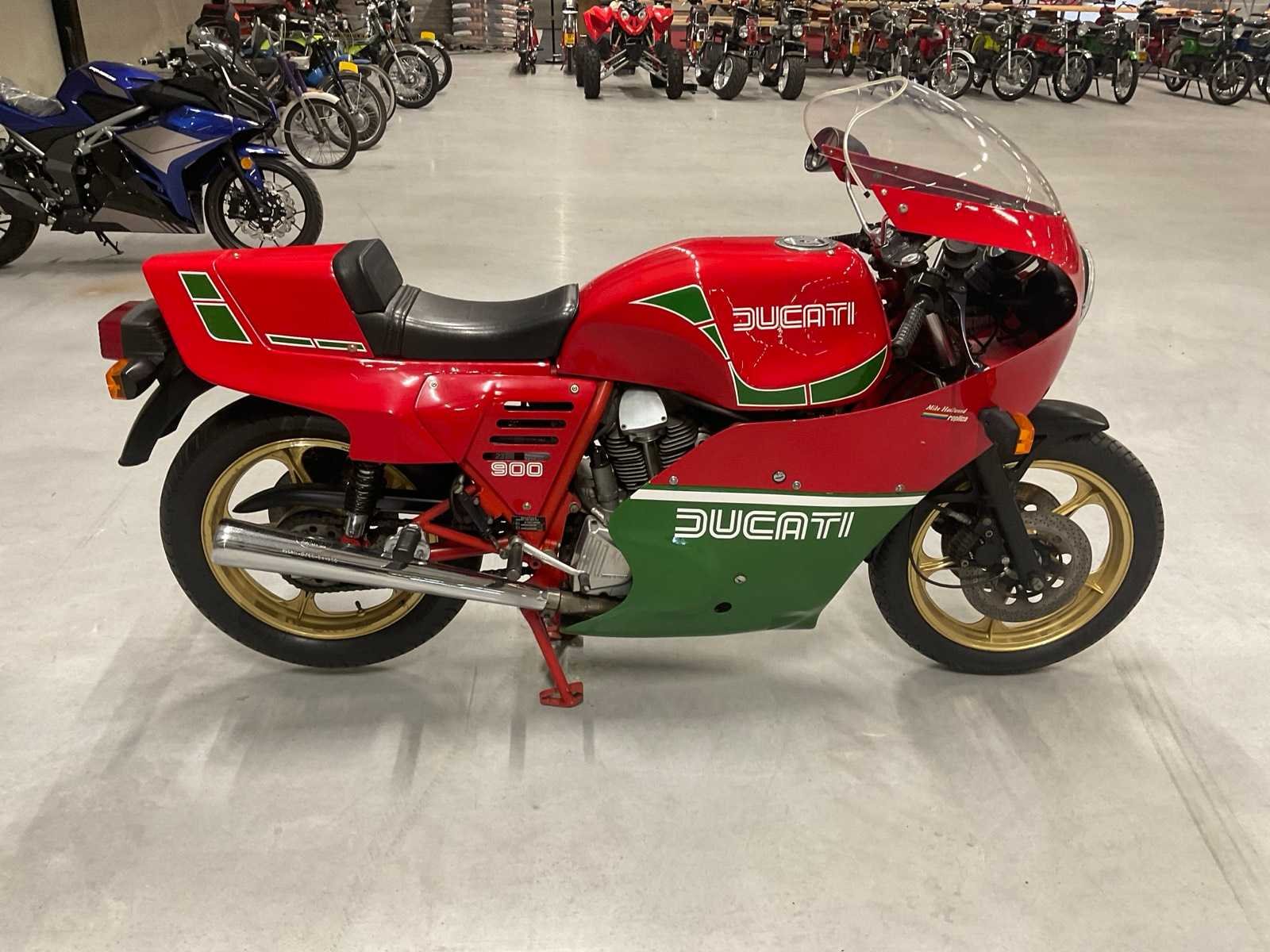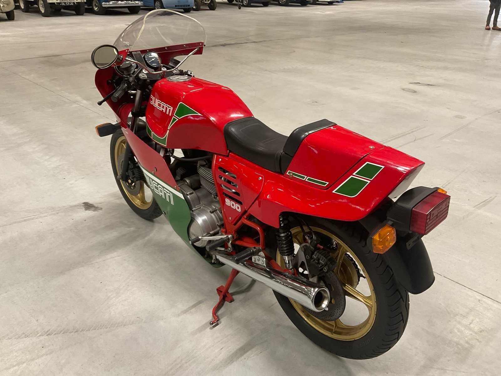 Motor nummer: DMG511470M; inclusief registratie documenten Nee Merk: Ducati Model: DM900R Type: 864cc Mike Hailwood Replica Brandstof: Benzine Chassisnummer: DM900R1905190 Cilinderinhoud: 900cc Afgelezen kilometerstand: 17093km