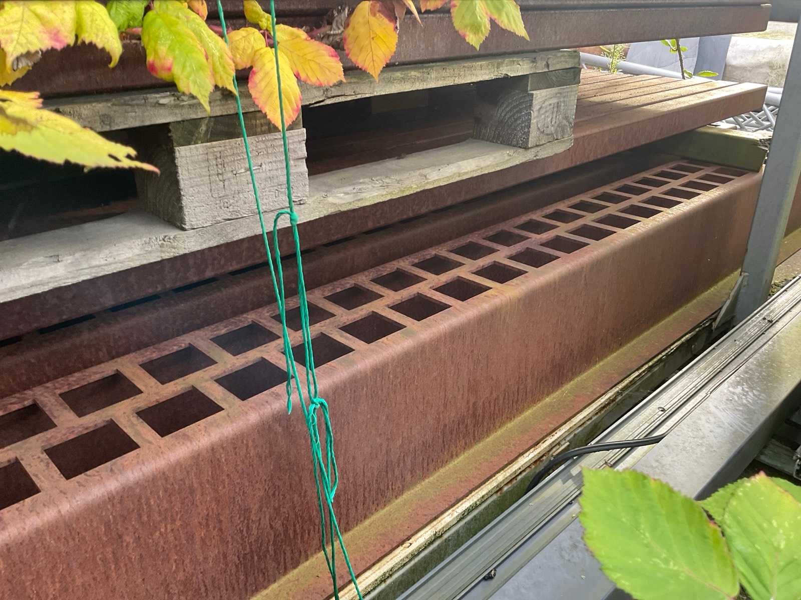 Bestaat uit koker 60x60; roosterprofiel 220x300; ci transport breedte 3500 mm Nee