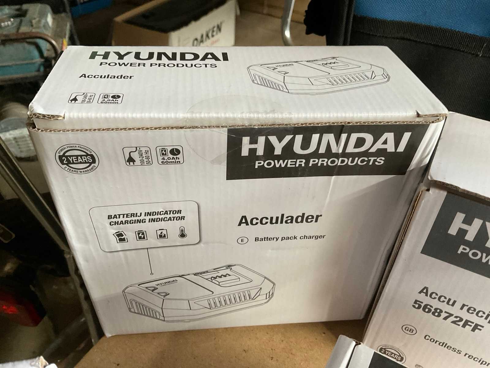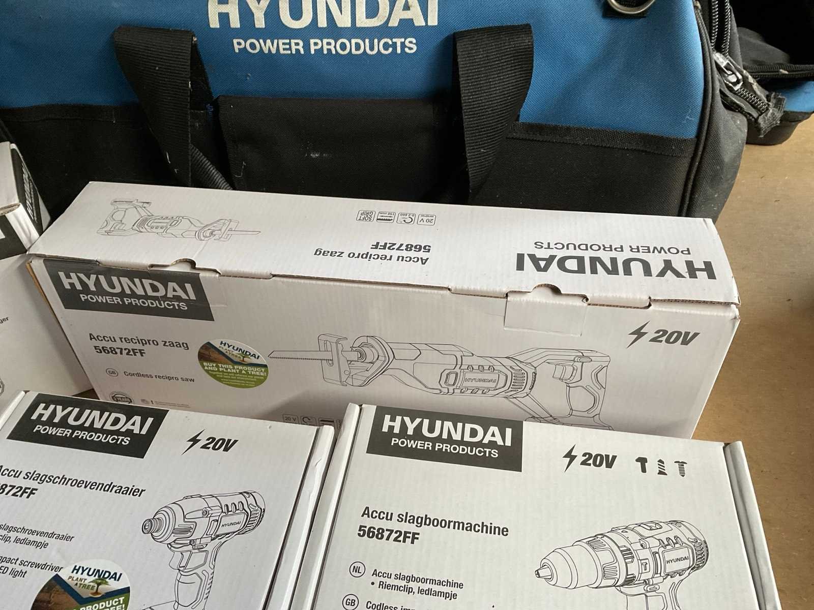 Bestaande uit: (1x) haakse- slijpmachine, (1x) slagmoersleutel, (1x) slagschroevendraaier. Inclusief: (1x) draagtas. Nee Merk: Hyundai Type: 56871FF Accu lader: true Accuspanning: 20V Aantal accu's: 2