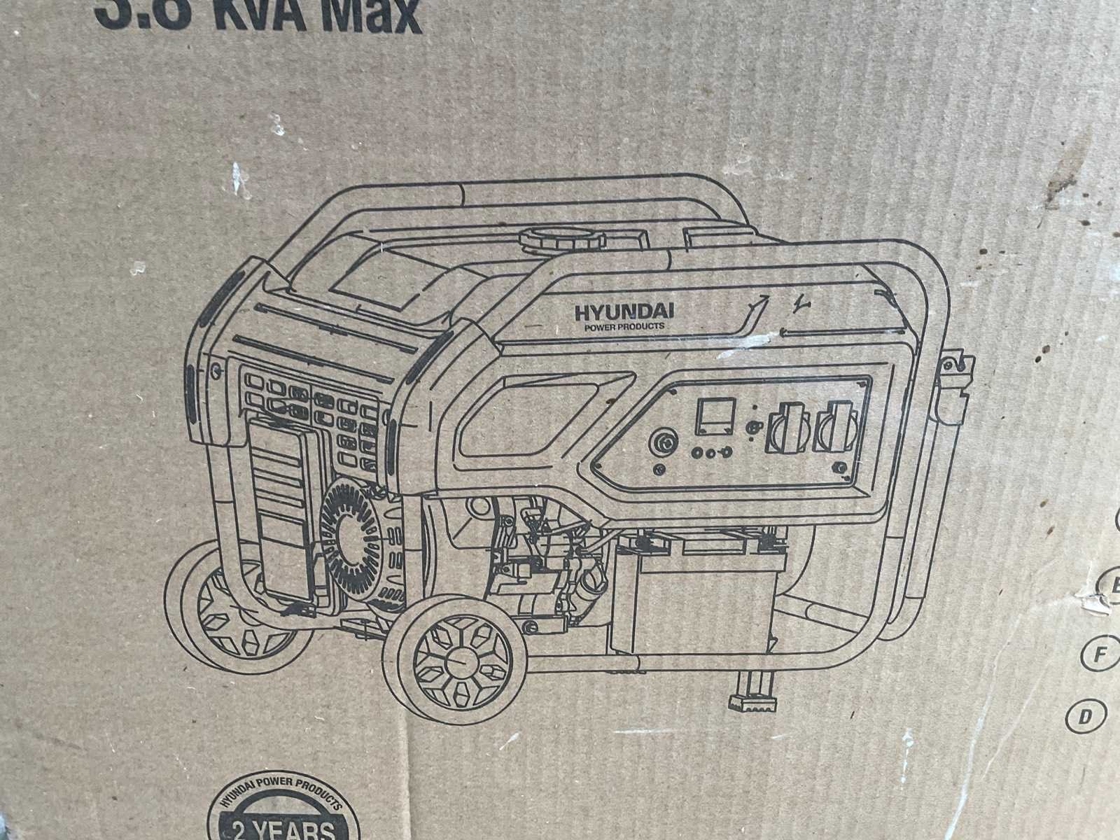 Vermogen: 3,8kVa, Motorvermogen: 2,8kW, 230V. Nee Merk: Hyundai Type: HHDP35DE Benzine: true