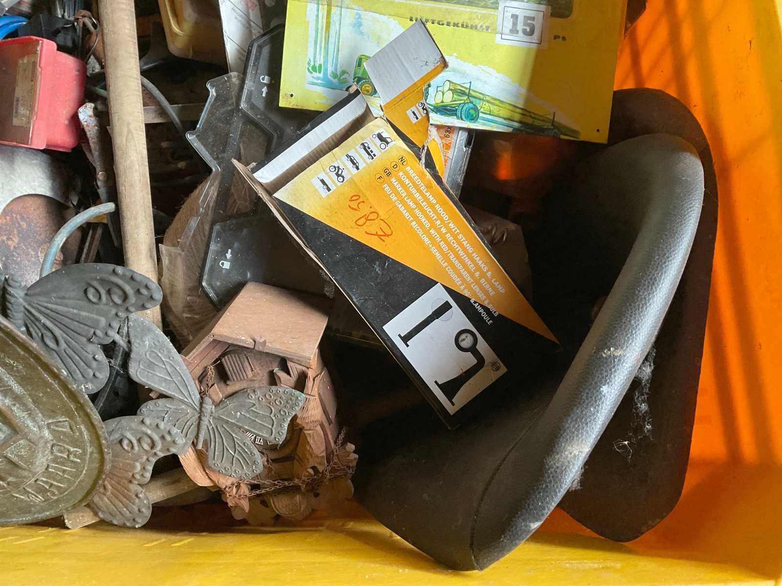 1 kist met divers materiaal: handgereedschap, decoatiemateriaal, onderdelen, etc. Nee