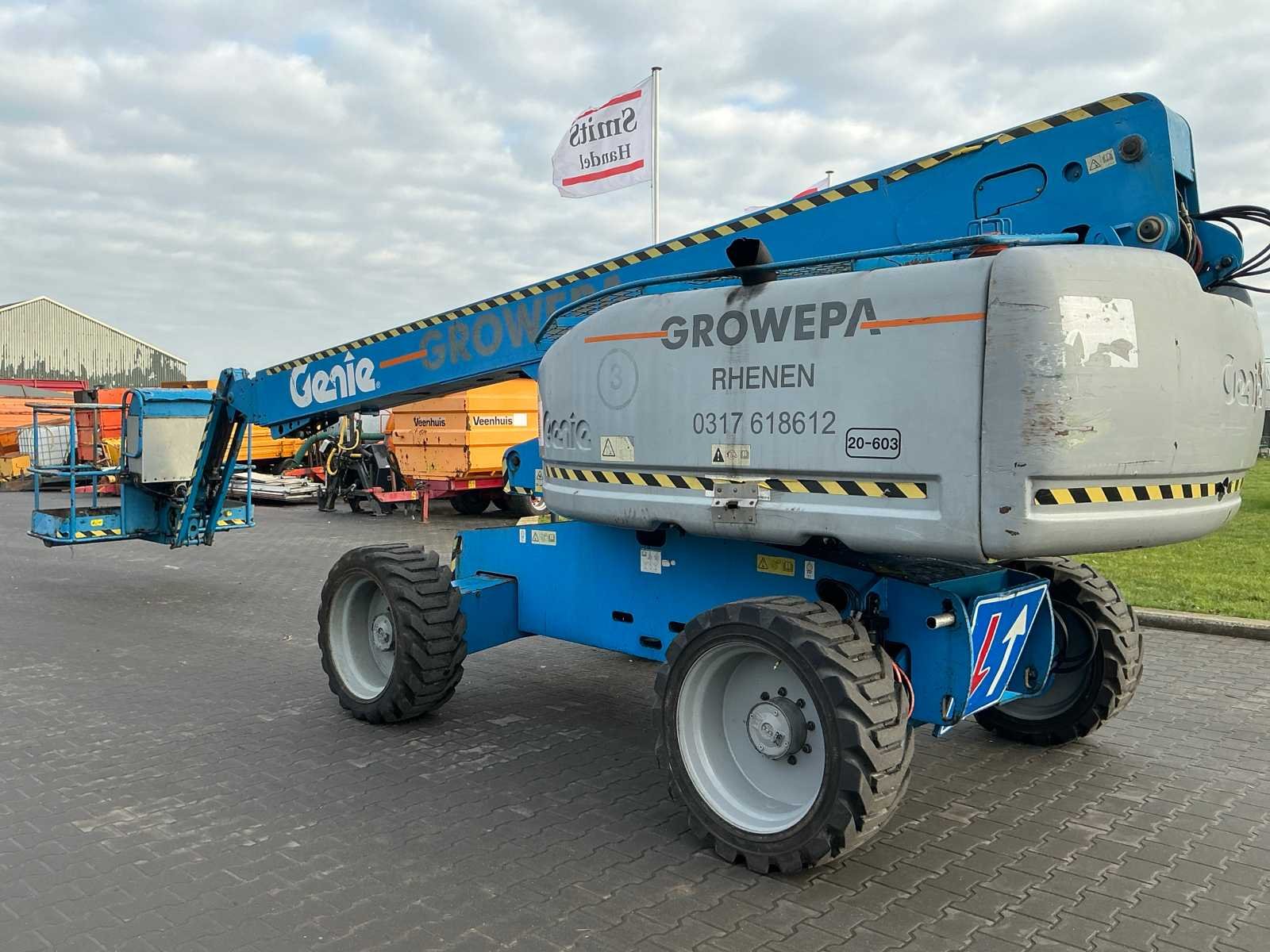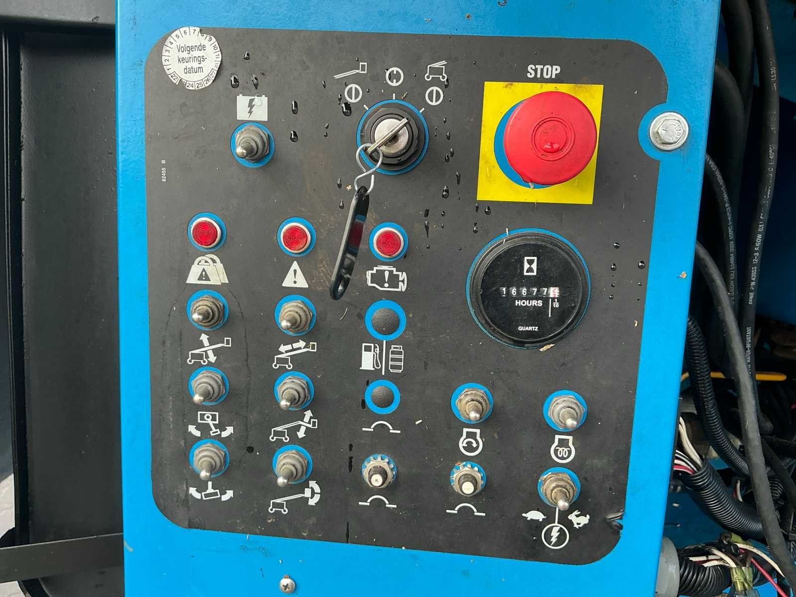 Voorzien van joystick bediening, manbak, 4x4 wielaandrijving Nee Merk: Genie Type: S-65 Bouwjaar: 2008 Serienummer: S6008-17329 Diesel: true Motorvermogen (kW): 36kW Telescoop hoogwerker: true Werkhoogte: 19800mm Horizontale rijkwijdte: 17100mm Plateau afm. l: 760mm Plateau afm. b: 1830mm Platform capaciteit: 227kg Afgelezen urenstand: 16677 Eigen gewicht: 10087kg Totale afmeting L: 9500mm Totale afmeting Breedte: 2500mm Totale afmeting Hoogte: 2750mm