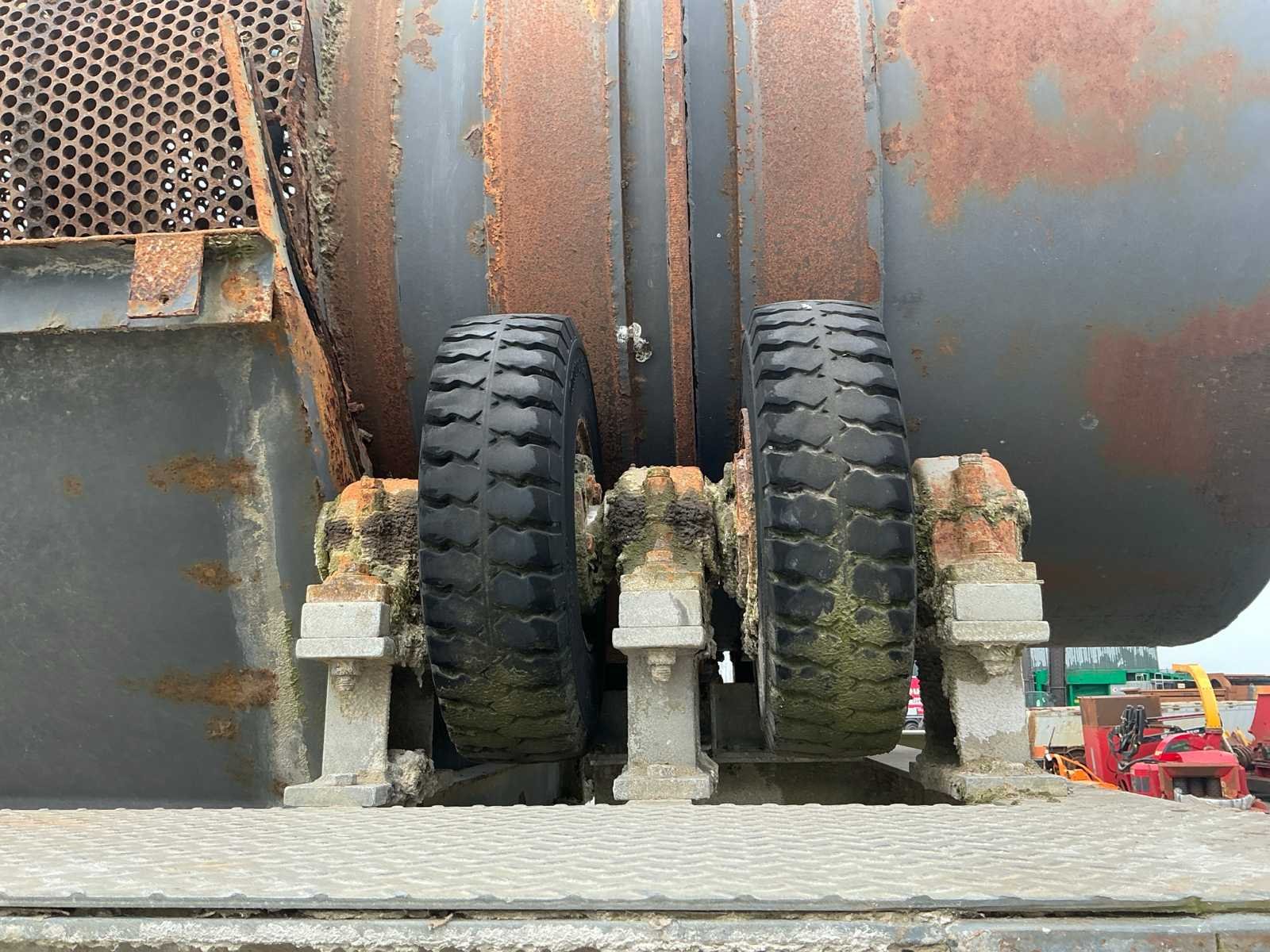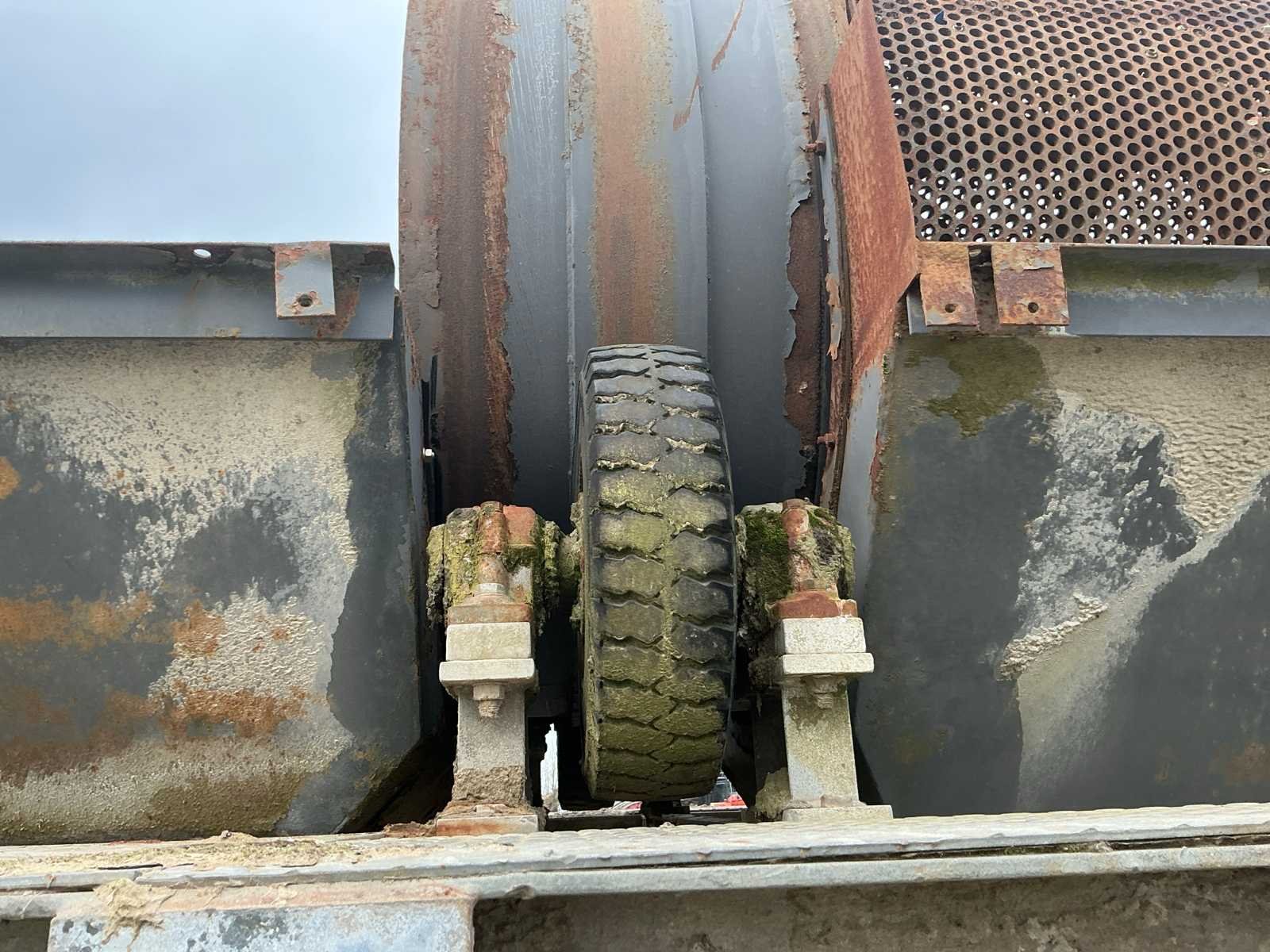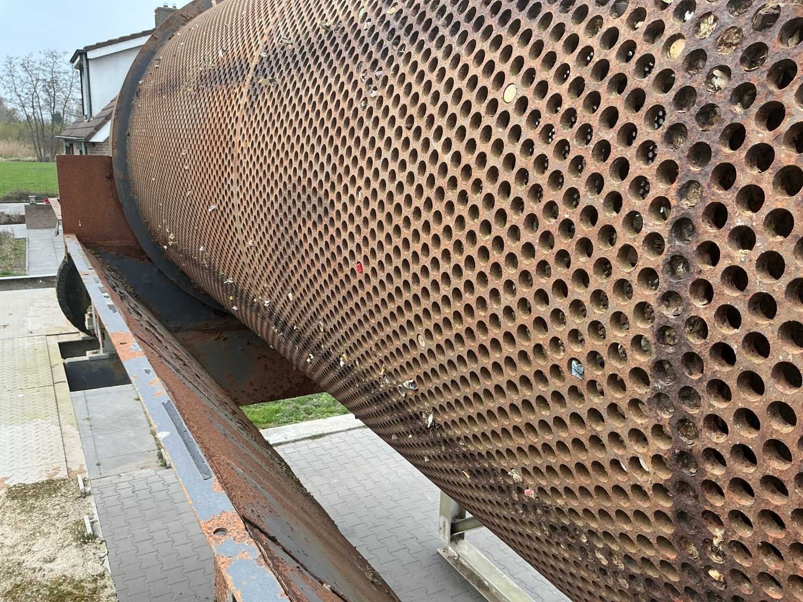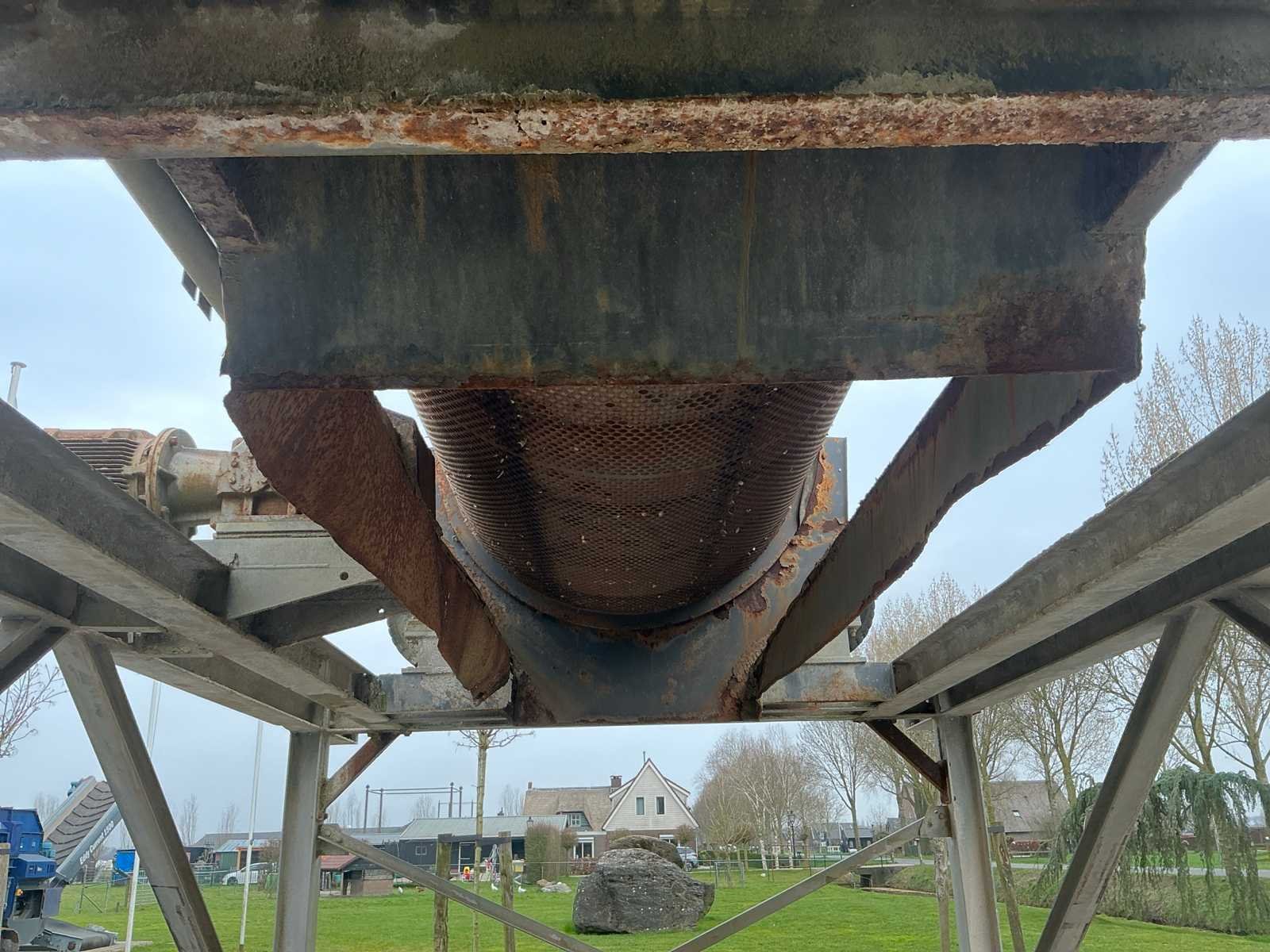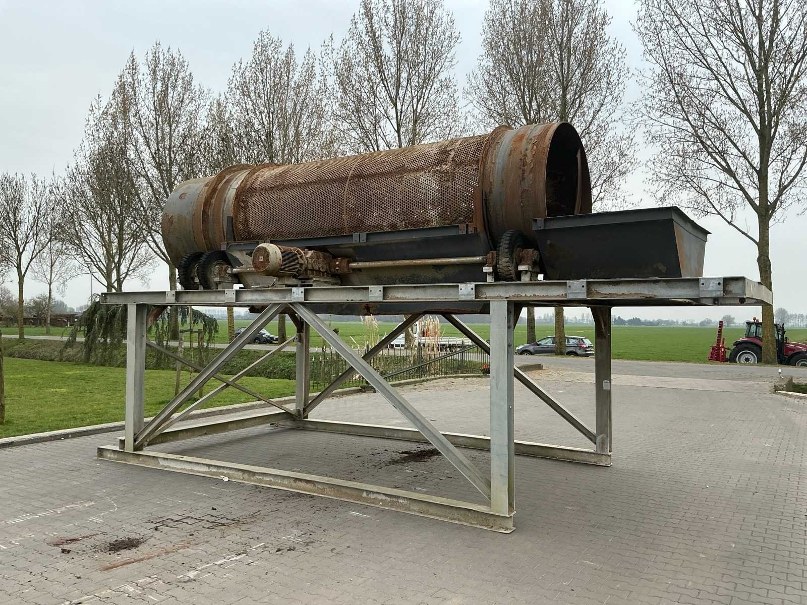 Voorzien van elektrisch aangedreven zeeftrommel, trommel ø 1650 mm, trommel lengte 5800 mm, totale afmeting met trommel (lxbxh) 7700x3500x4000 mm, maas trommel circa 20mm, totale hoogte zonder trommel 3000 mm, trommel wordt gedemonteerd voor het transport. Nee