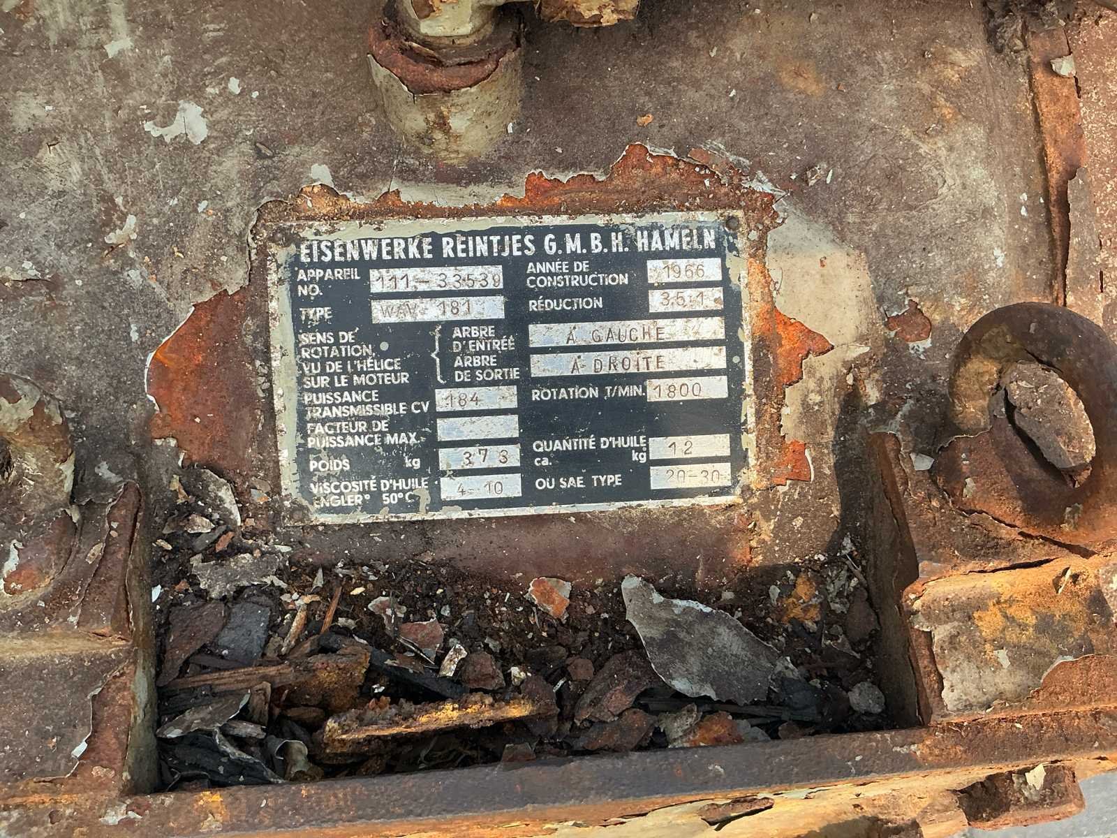 Reintjes keerkoppeling, inclusief fundatiebouten. Nee Merk: Deutz Type: Sf8m716 Bouwjaar: 1966 Serienummer: 4572878 Motorvermogen (kW): 165.4kW Aantal cilinders: 10 Machinegewicht: 2200kg Totale afmeting L: 3000mm Totale afmeting Breedte: 1000mm Totale afmeting Hoogte: 1500mm