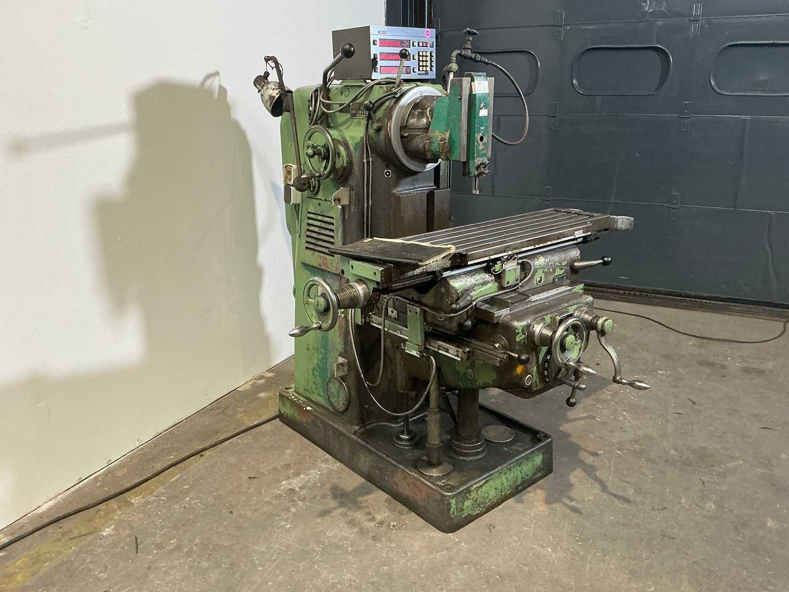 Without a stinger No Merk: Schaublin Type: 53 Verplaatsing x-as: 700mm Verplaatsing y-as: 550mm Verplaatsing z-as: 430mm Opname iso: ISO30 Snelheid van n =: 38rpm Snelheid tot n =: 1500rpm T-gleuf opspantafelafmeting L: 1100mm T-gleuf opspantafelafmeting B: 255mm Motorvermogen (kW): 4kW Machinegewicht: 1650kg Afmeting l: 1800mm Afmeting b: 1600mm Afmeting h: 1700mm GS Code: 84.596.990