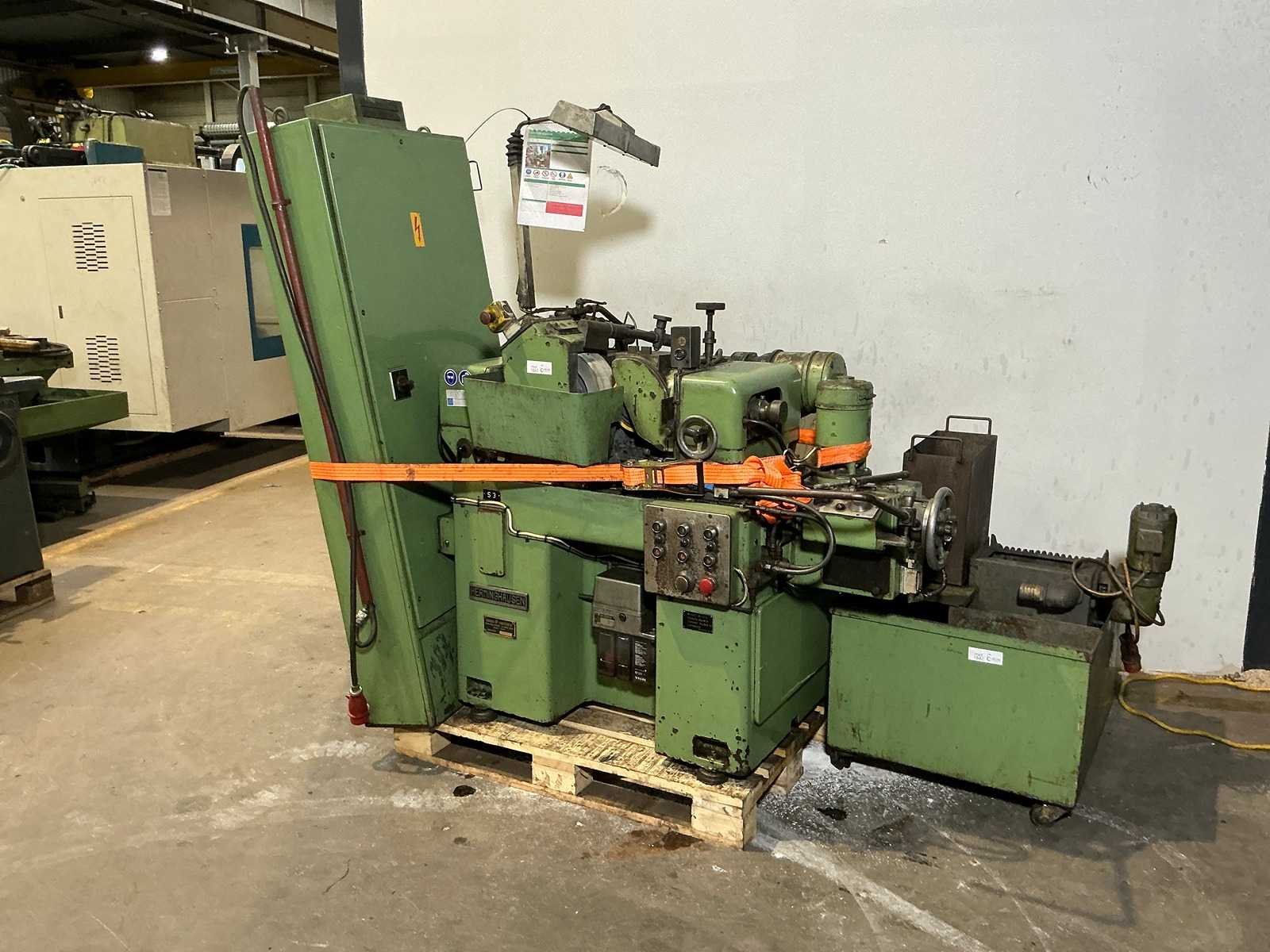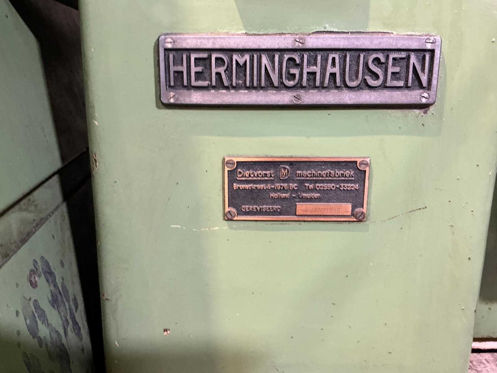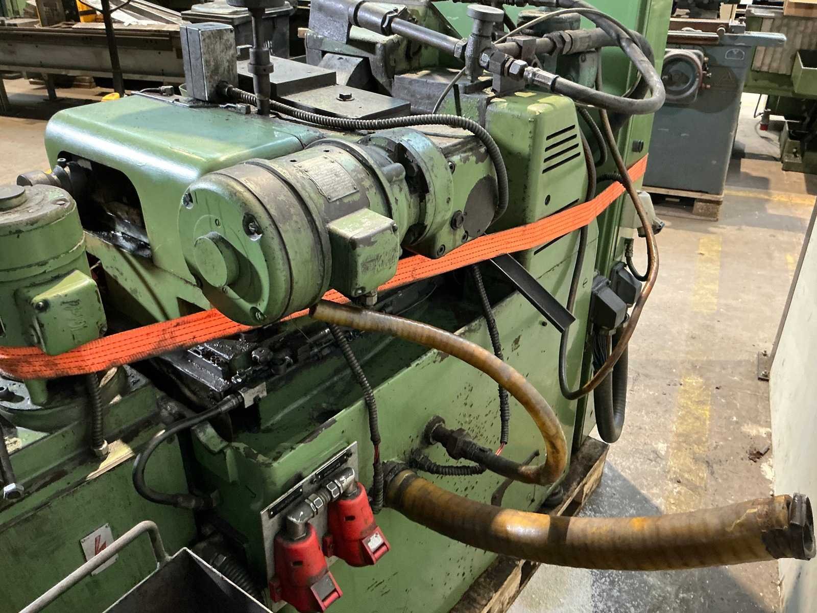 No Merk: Herminghausen Bouwjaar: 1986 Slijpbereik: 30mm Tafel afmeting l: 420mm Tafel afmeting b: 10mm Slijpsteen Ø: 300mm Snelheid tot n =: 2850rpm Machinegewicht: 1500kg Afmeting l: 1400mm Afmeting b: 2000mm Afmeting h: 2100mm GS Code: 84.602.910