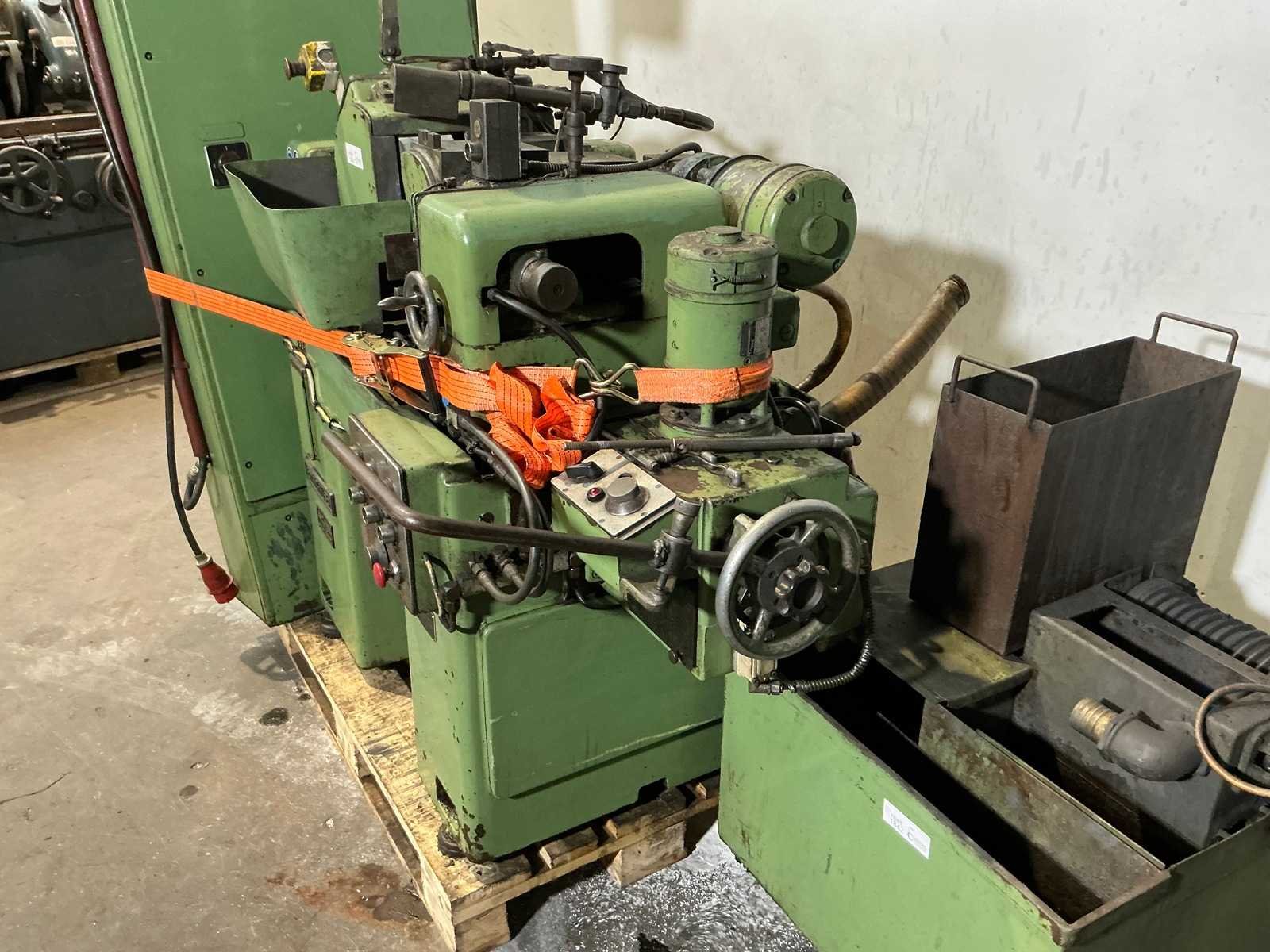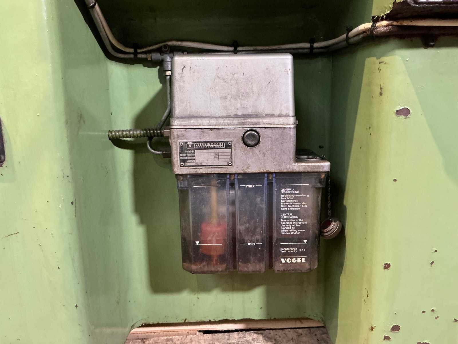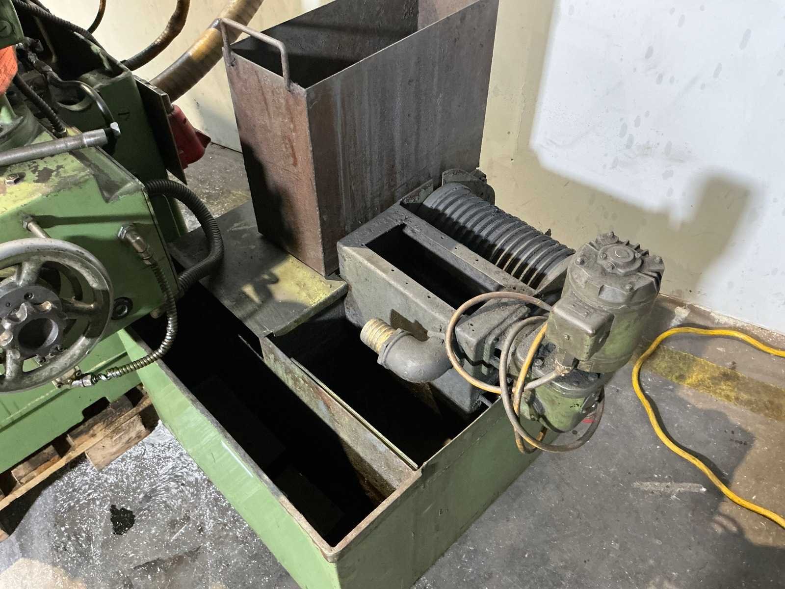 No Merk: Herminghausen Bouwjaar: 1986 Slijpbereik: 30mm Tafel afmeting l: 420mm Tafel afmeting b: 10mm Slijpsteen Ø: 300mm Snelheid tot n =: 2850rpm Machinegewicht: 1500kg Afmeting l: 1400mm Afmeting b: 2000mm Afmeting h: 2100mm GS Code: 84.602.910