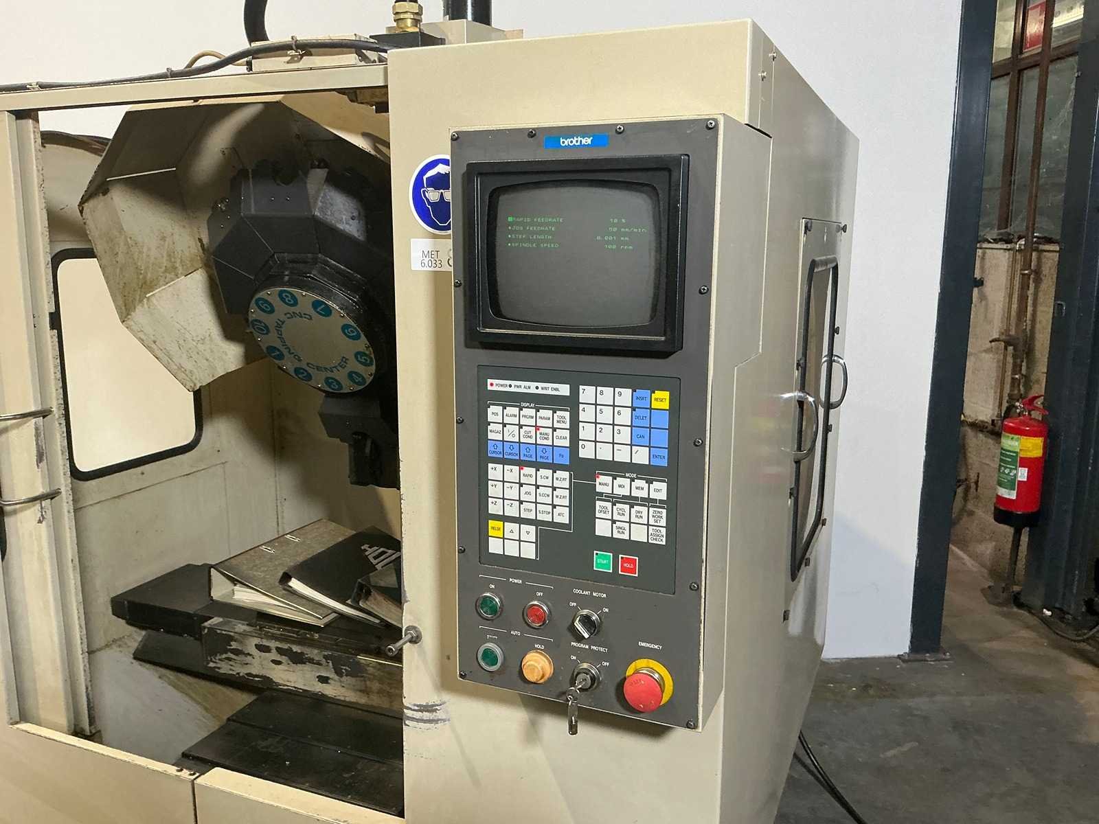 No Merk: Brother Type: TC-255 Verplaatsing x-as: 420mm Verplaatsing y-as: 300mm Verplaatsing z-as: 250mm Snelheid van n =: 6rpm Snelheid tot n =: 6000rpm Tafel afmeting l: 600mm Tafel afmeting b: 300mm Motorvermogen (kW): 4kW Machinegewicht: 1850kg Afmeting l: 1800mm Afmeting b: 1550mm Afmeting h: 2200mm GS Code: 84.596.190
