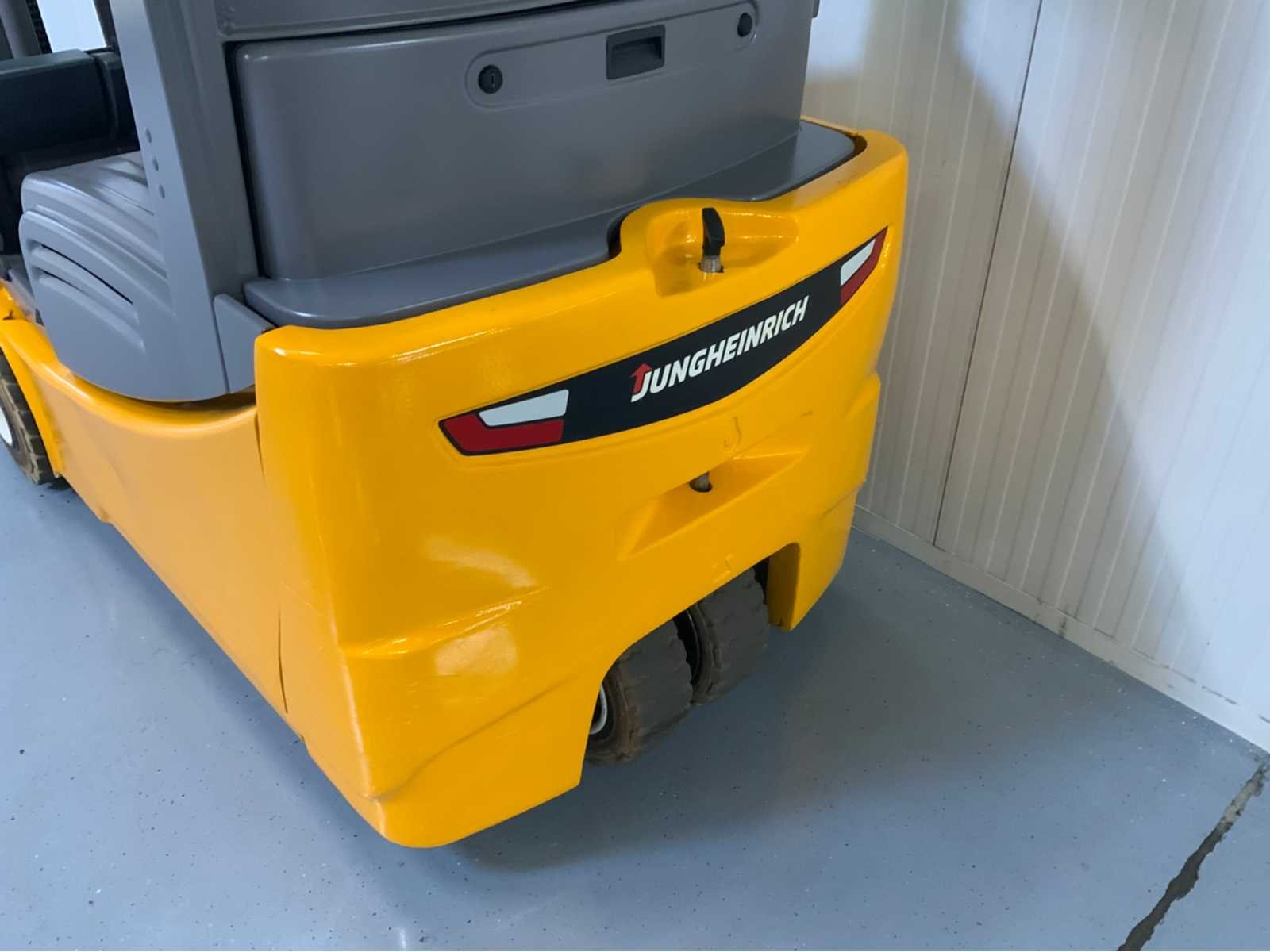 Extra opties: Led verlichting voorkant, Bluespot achterkant, Accu van 2018 Nee Merk: Jungheinrich Type: EFG218 Bouwjaar: 2016 Brandstof: Elektrisch Mast: Triple Soort band: Volrubber banden Aantal wielen: 3 Free-lift: true Side-shift: true Triple mast: true Eigen gewicht: 3611kg Hefvermogen: 1800kg Lepellengte: 1150mm Hefhoogte: 4800mm Totale afmeting L: 3100mm Totale afmeting Breedte: 1100mm Totale afmeting Hoogte: 2200mm