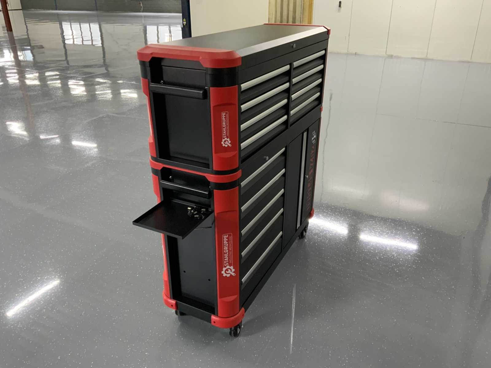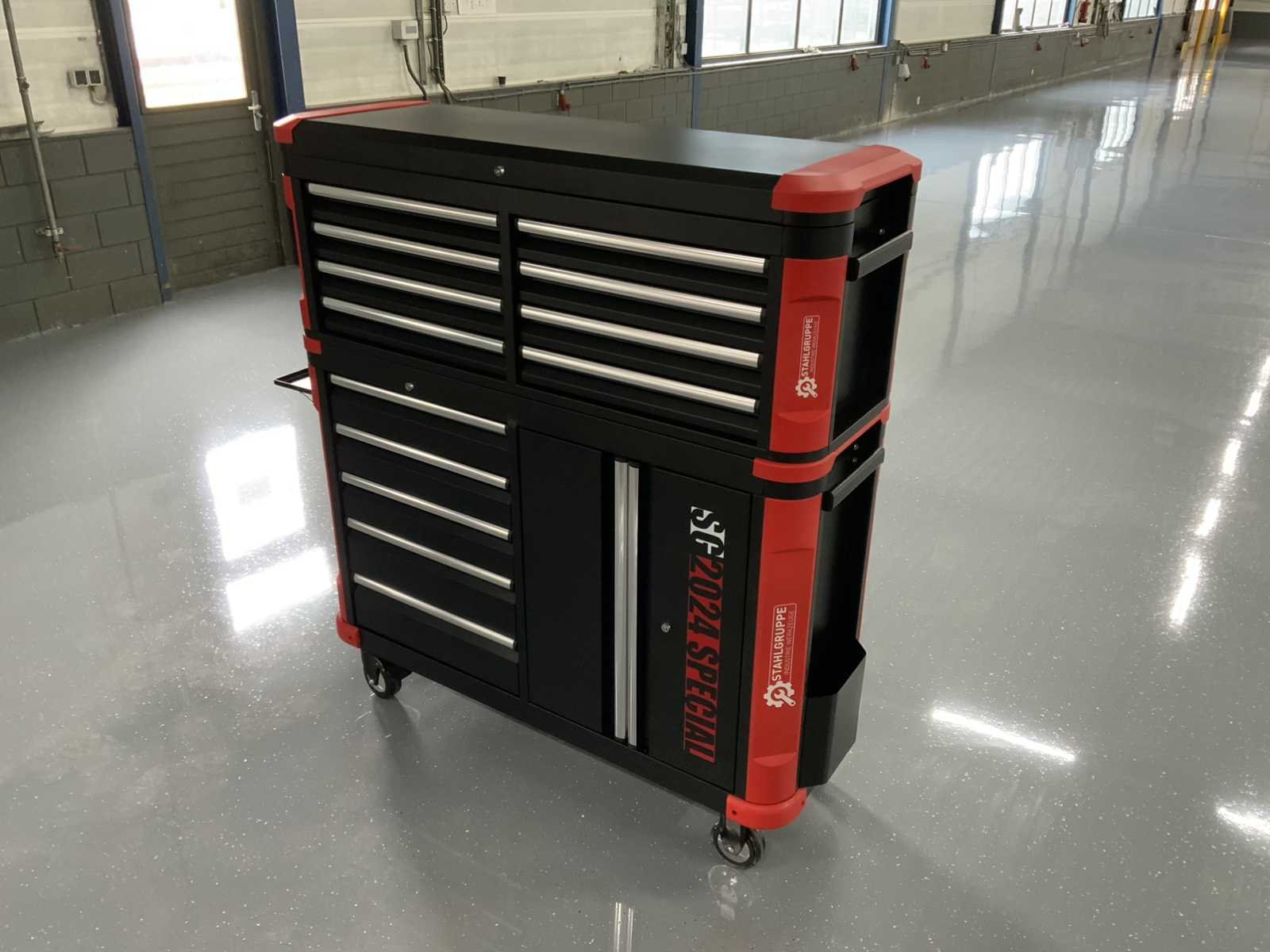 13 Laden, 9 gevuld, 327 pcs gereedschap. Kar met afneembare topbox Top box met 8 laden en boven klep Kar met 5 laden en kast met dubbele openslaande deuren Hoeken schuin afgewerkt met bumpers Stevig kunststof handvaten 2 zwenkwielen waarvan 2 geremd Hoge kwaliteit cilinder sloten Mat zwart afgewerkt met rode accenten Nee Merk: Stahlgruppe Type: XL PRO Deluxe Bouwjaar: 2025 Aantal laden: 13 Met inhoud: true