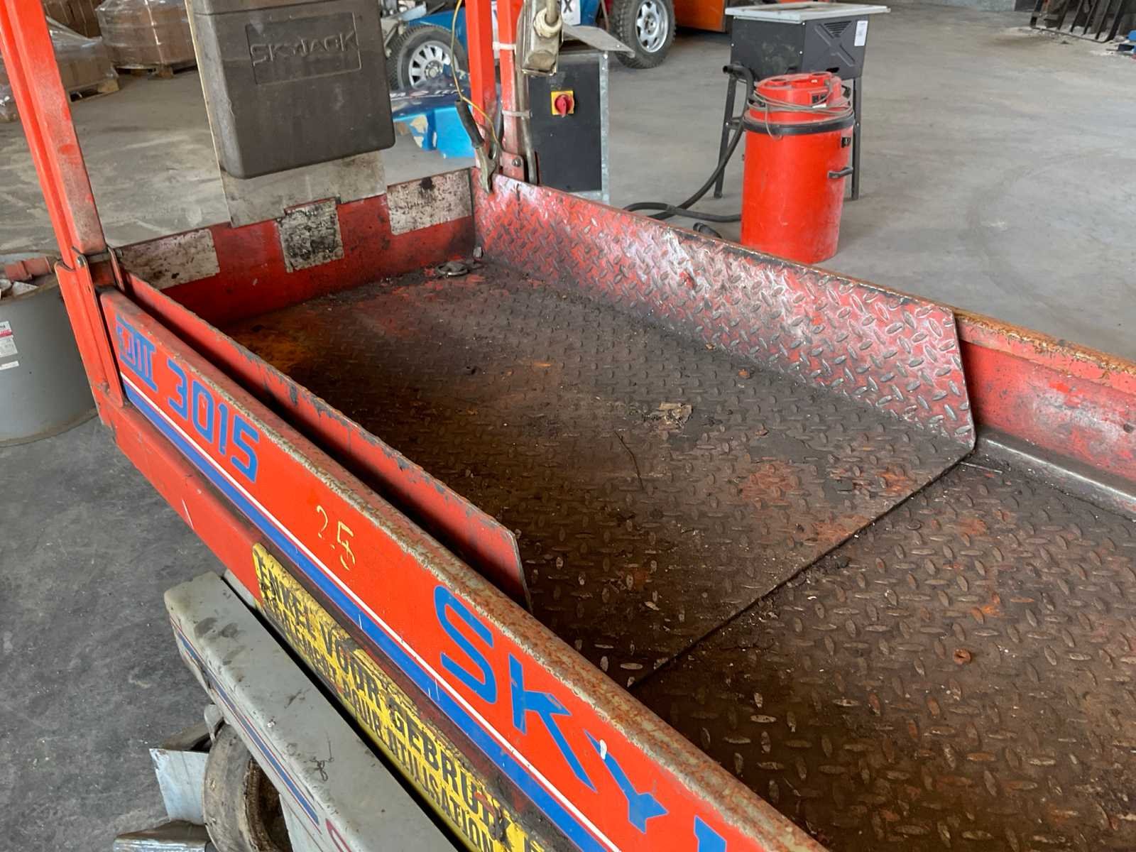 Hoogwerker is niet werkend, onbekend defect, geen accu’s Nee Merk: Skyjack Type: SJ3 3015 Bouwjaar: 2002 Elektrisch: true Schaarhoogwerker: true Werkhoogte: 6400mm Horizontale rijkwijdte: 700mm Plateau afm. l: 1630mm Plateau afm. b: 710mm Platform capaciteit: 227kg Afgelezen urenstand: 605 Eigen gewicht: 2340kg Totale afmeting L: 1900mm Totale afmeting Breedte: 770mm Totale afmeting Hoogte: 1980mm