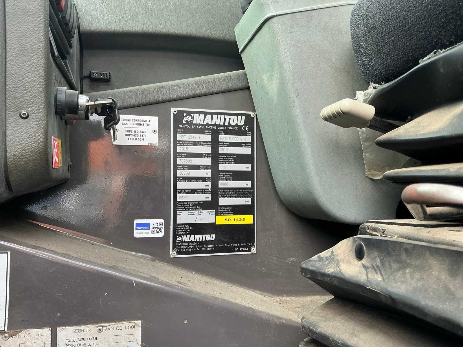 Voorzien van Mercedes-Benz OM934 dieselmotor, 4x4x4 besturing, hydrostatische transmissie met high/low functie, extra hydraulische functies, radiografische besturing, overdrukcabine met P3 filter, maximale snelheid 40 km/uur, inclusief vorkenbord met palletvorken No Merk: Manitou Type: MRT 2540+ Privilege Bouwjaar: 2015 Serienummer: 767985 Kenteken: TPL-21-V Motorvermogen (kW): 115kW Hefvermogen: 4000kg Hefhoogte: 25000mm Cabine: true Vierwielaandrijving 4x4: true Luchtbanden: true Afgelezen urenstand: 8786 Eigen gewicht: 18900kg