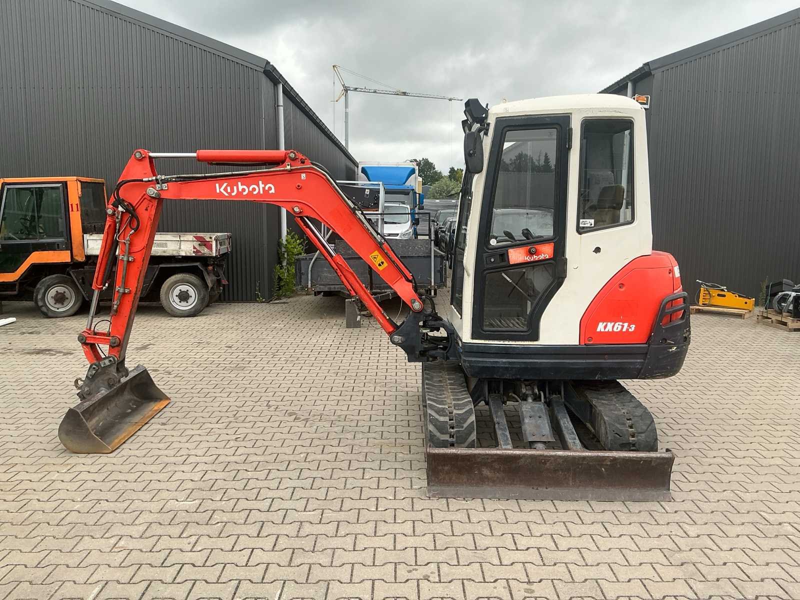 Voorzien van Kubota V1505 dieselmotor, hydraulische snelwissel, cabineverwarming, rubber rupsen, zwenkgiek, hamerfunctie, extra hydraulische functie, 3 graafbakken (120, 46 en 23 cm breed) No Merk: Kubota Type: KX61-3 Bouwjaar: 2010 Serienummer: 77878 Merk motor: Kubota Motorvermogen (kW): 18.2kW Aantal cilinders: 4 Brandstof: Diesel Bedrijfsgewicht: 2590kg Gieklengte: 3700mm Max. graafdiepte: 2740mm Met graafbak: true Rups breedte: 300mm Cabine: true Afgelezen urenstand: 3702 Totale afmeting L: 4310mm Totale afmeting Breedte: 1400mm Totale afmeting Hoogte: 2410mm