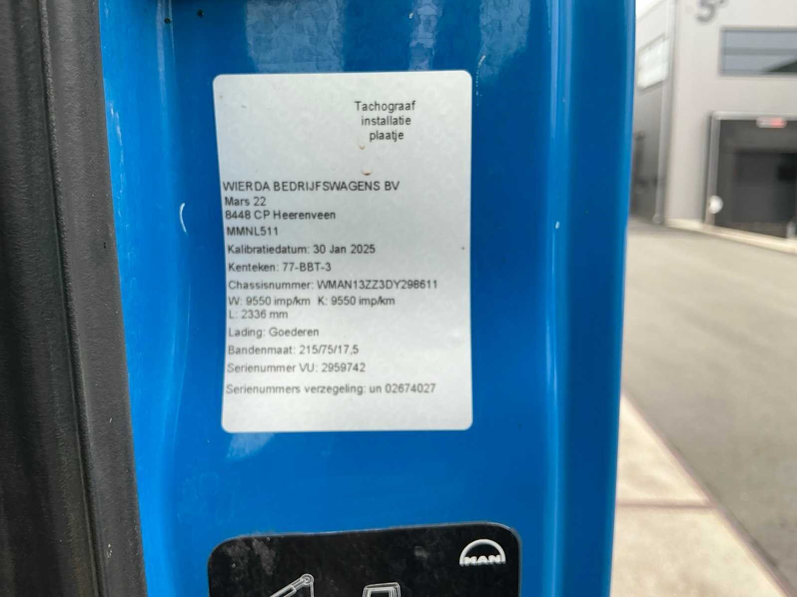 Voorzien van EURO5 dieselmotor, automatische transmissie, opbouw voor toiletservice, tachograaf, airconditioning, elektrisch bedienbare ramen, elektrisch verstelbare en verwarmde buitenspiegels, niveauregeling, voorruitverwarming, werkverkichting achter, PTO, dubbel lucht, signaallamp (2x), trekhaak Nee Kenteken: 77-BBT-3 Merk: MAN Type: TGL Bouwjaar: 2013 Chassisnummer VIN: WMAN13ZZ3DY298611 Cilinderinhoud: 4580cc Kilometerstand bij opname: 598044km APK vervaldatum: 2026-02-11 Datum eerste toelating: 2013-05-10 Datum eerste toelating (NL): 2013-05-10 Type transmissie: Automaat Aantal assen: 2 Fuel Type: Diesel Laadvermogen: 1645kg Aantal sleutels: 1 Emissieklasse: 5 Nationaliteit documenten: Nederlands Kentekenpapieren compleet?: true Aantal zitplaatsen: 2 Zelf rijdend exporteren: Ja Automaat: true Diesel: true
