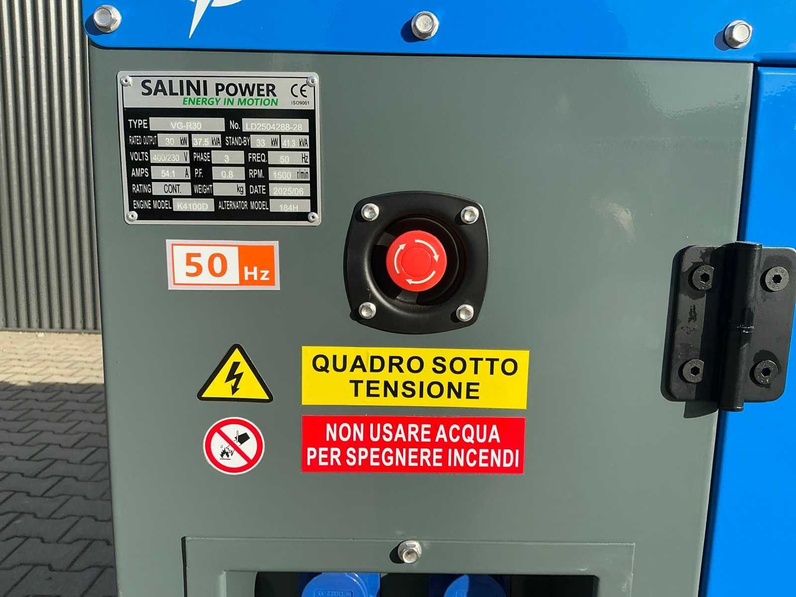 Frequentie: 50 Hz, voorzien van elektronisch bedieningspaneel/display, handleiding, hijsogen, lepelgaten/heftruckgaten Nee Merk: Salini Type: VG-R30 Capaciteit.: 41.3kVA Aansluiting: 400V Motor merk: EBSO Motorcapaciteit: 30.1kW Generator merk: AC Generator type: 3 fasen Generator capaciteit: 55A Afgelezen urenstand: 0 Machinegewicht: 800kg Totale afmeting L: 2200mm Totale afmeting Breedte: 970mm Totale afmeting Hoogte: 1050mm