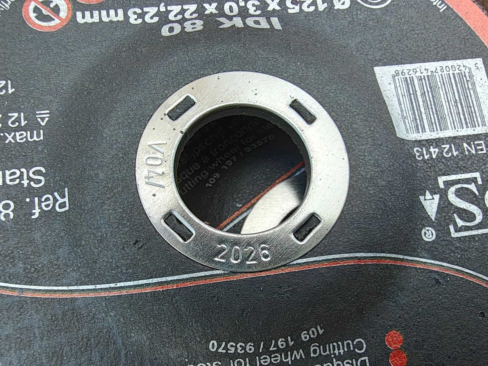 Partij van 425 doorslijpschijven 125x3x22.23mm, geschikt voor staal. ongebruikt Nee Merk: Interdiamant Model: IDK80 Schijfdiameter: 125mm Dikte: 3mm