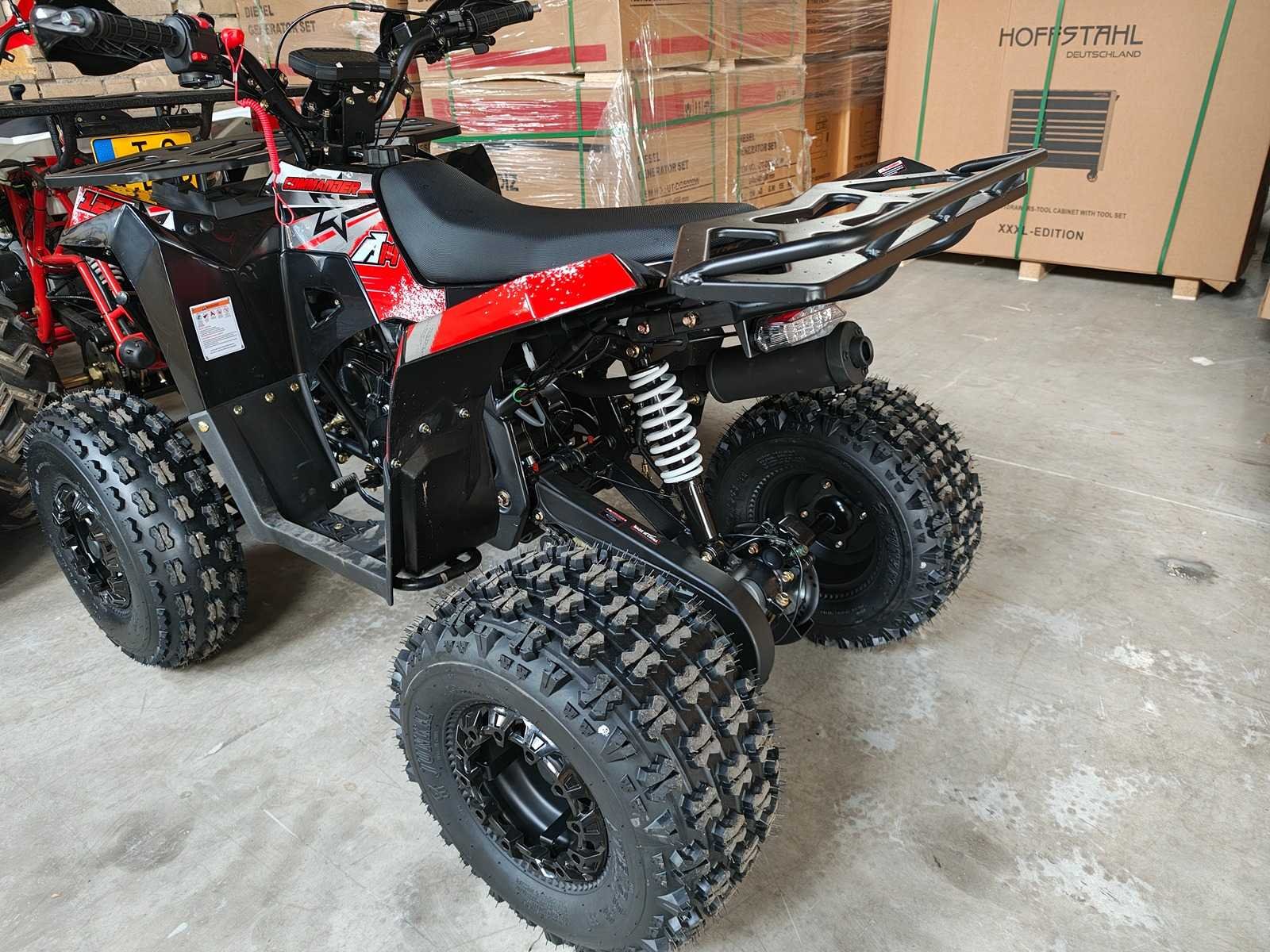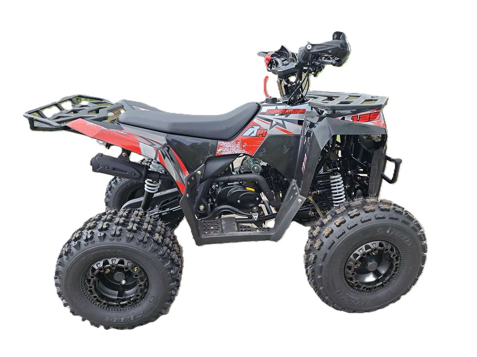 Ongebruikt AIII Commander 125CC Quad, 4 versnellingen incl achteruitversnelling, benzine, wordt geleverd in doos. Nee Merk: AIII Model: Commander 125 Gewicht: 120kg Aantal zitplaatsen: 1 Transmissie: 4 versnellingen Bouwjaar: 2025 Afgelezen kilometerstand: 0km Brandstof: benzine 4 takt Kleur omschrijving: zwart Carrosserie: staal Lengte: 167cm Breedte: 102cm Hoogte: 110cm