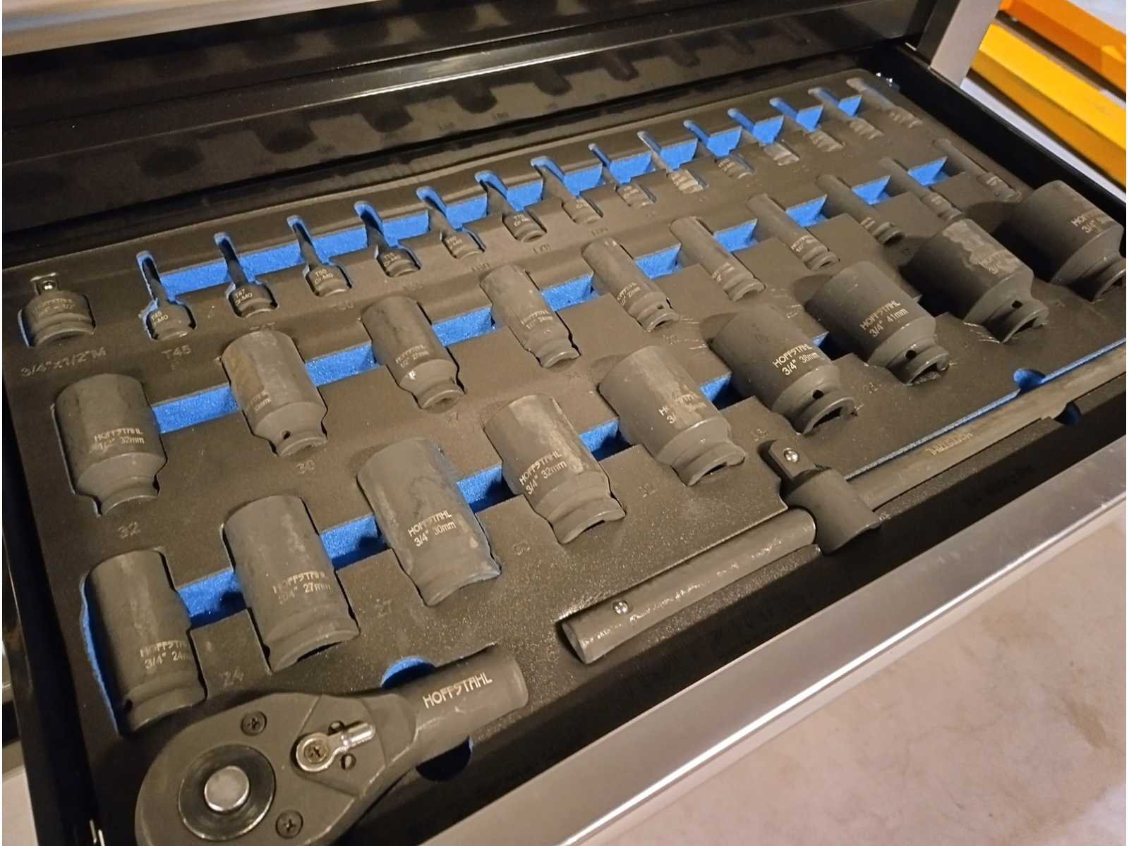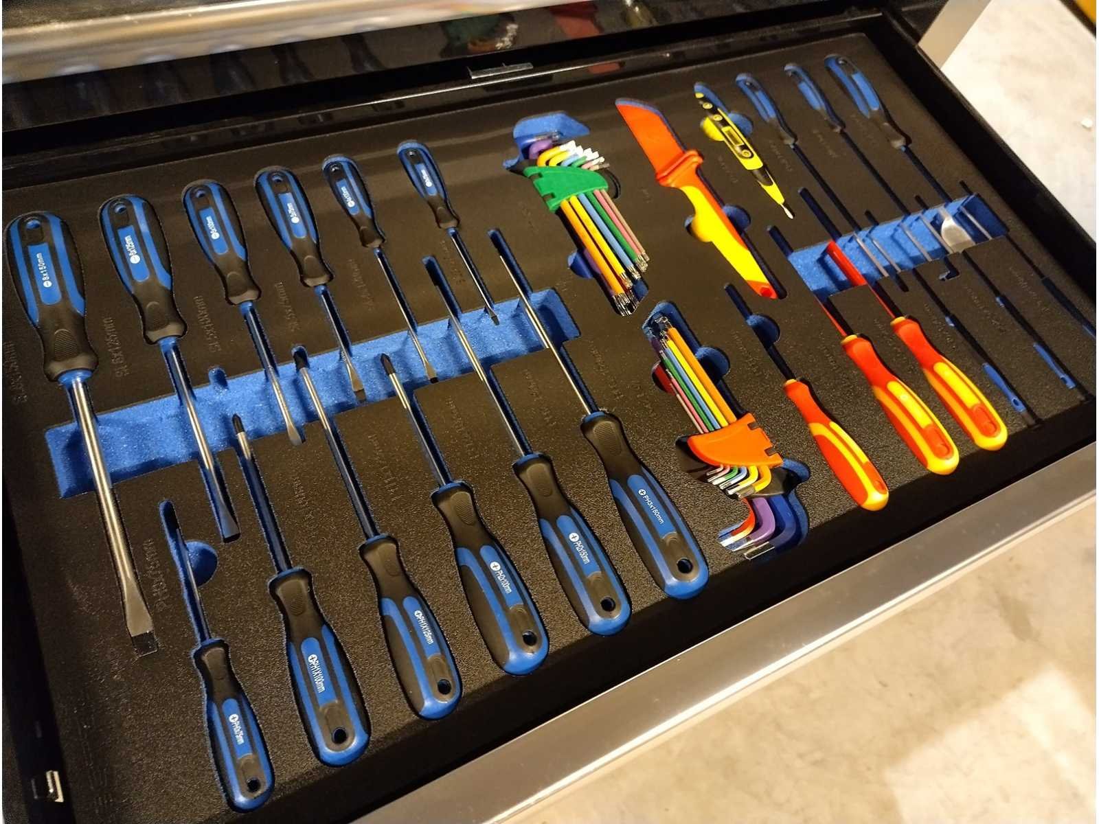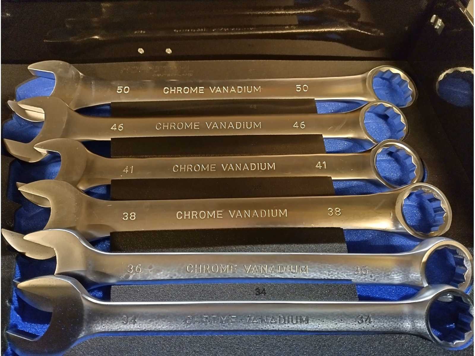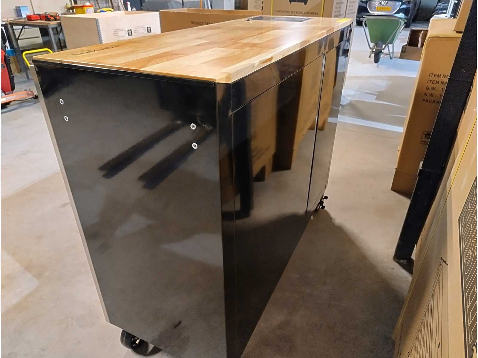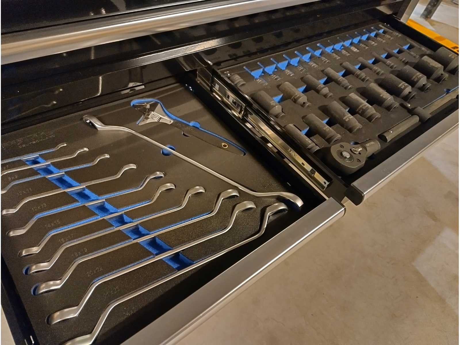 Grote zware kwaliteits gereedschapswagen met Ring Steek sleutels tot en met 50mm en Krachtdoppen tot en met 50mm. zeer uitgebreid assortiment. in doos Nee Merk: Hoffstahl Type: Profi-line 386 delige Bouwjaar: 2024 Serienummer: 11/9-24 Aantal laden: 11 Met inhoud: true Eigen gewicht: 181kg Totale afmeting L: 1370mm Totale afmeting Breedte: 540mm Totale afmeting Hoogte: 1130mm
