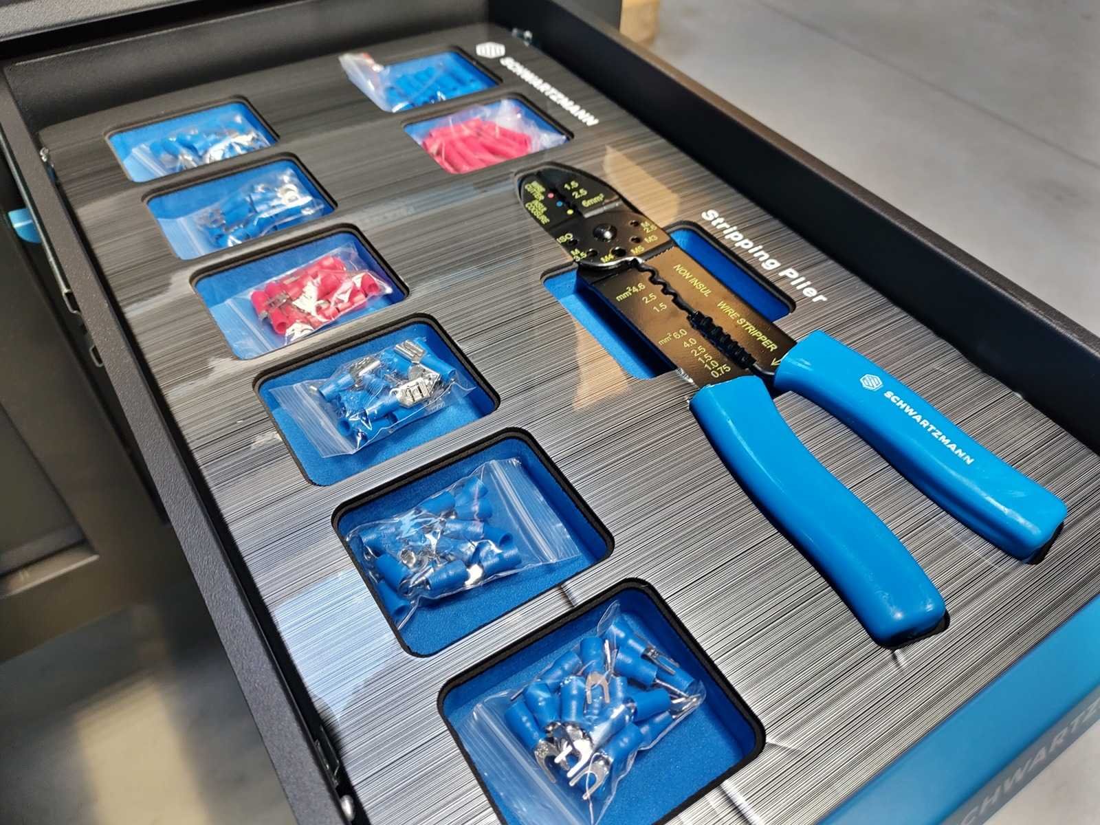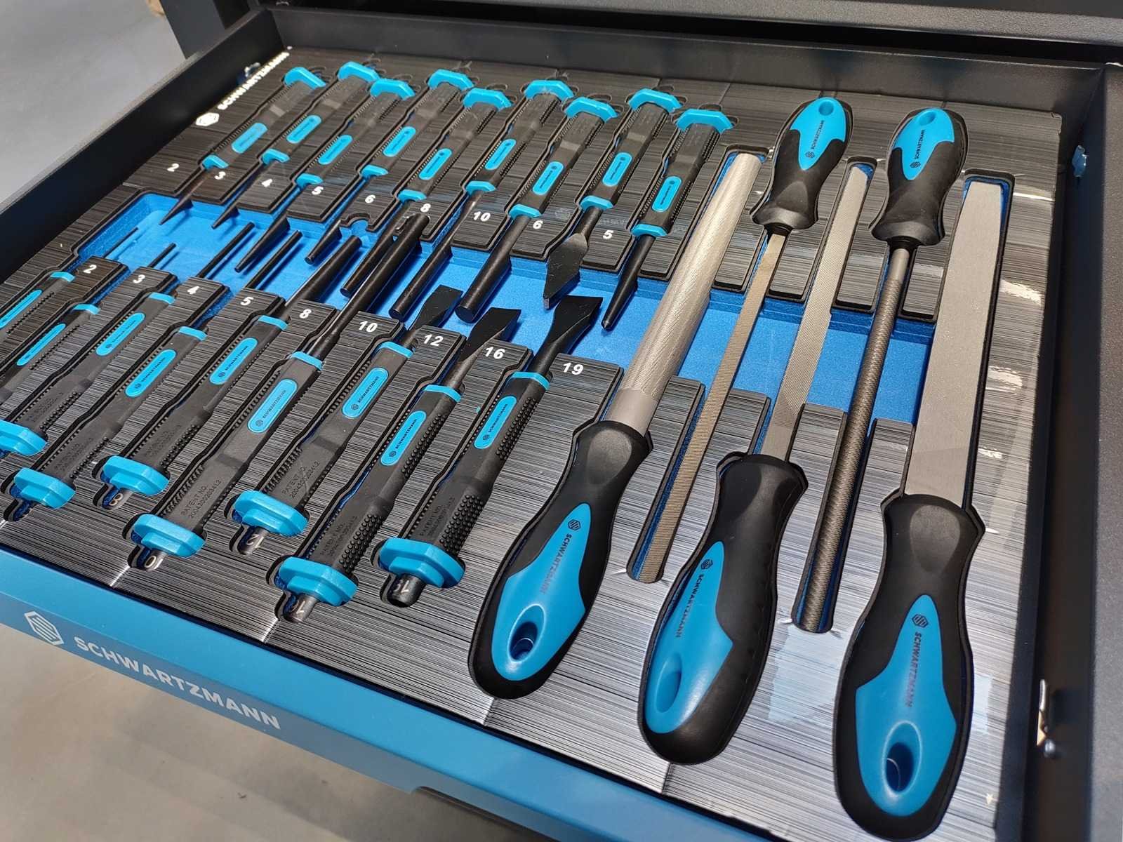 Gevulde gereedschapswagen 12 laden, XXXL Jumbo uitvoering met houten bovenblad, gevuld met kwaliteits gereedschap, nieuw in doos Nee Merk: Schwartzmann Model: 12/10