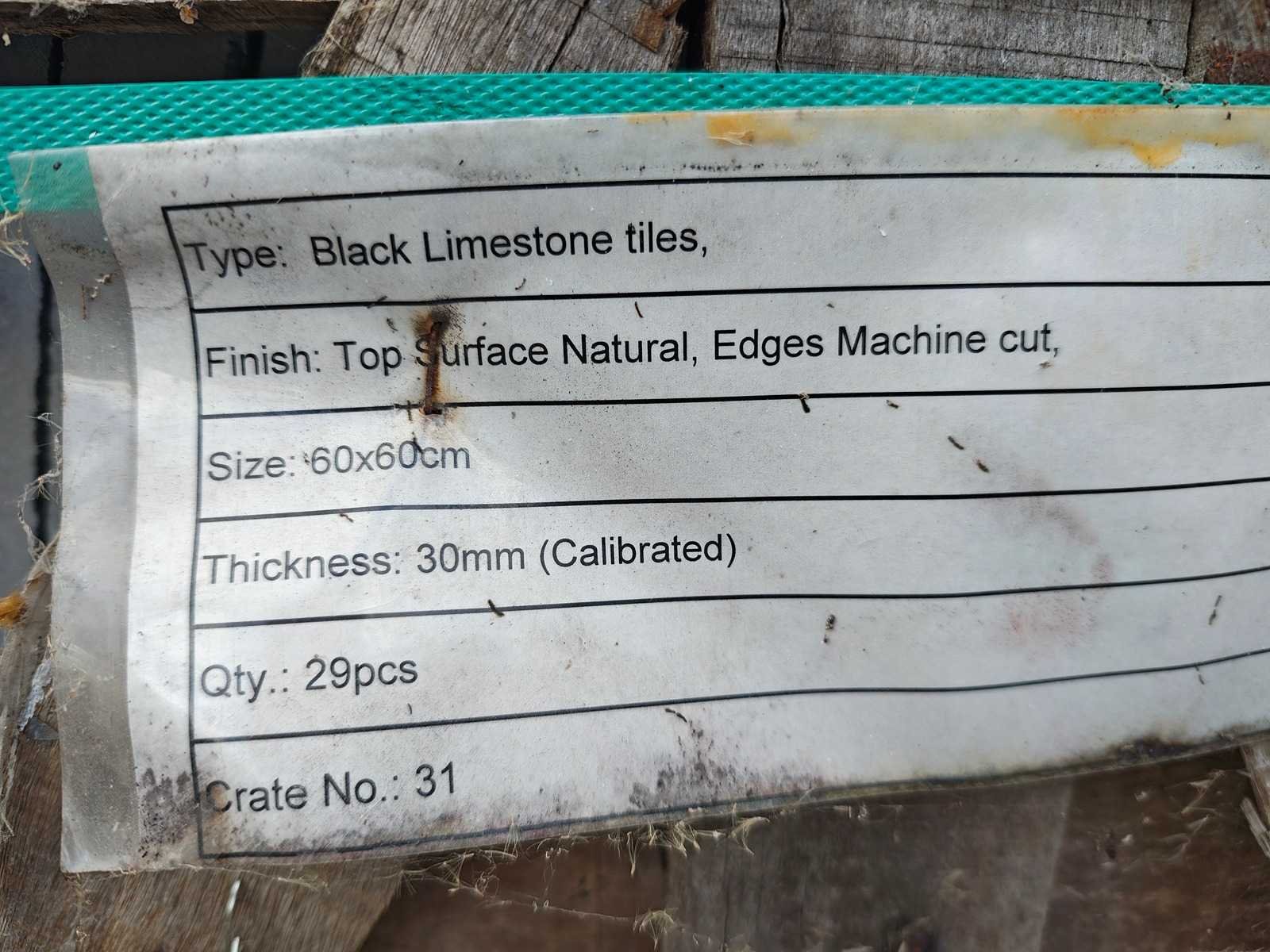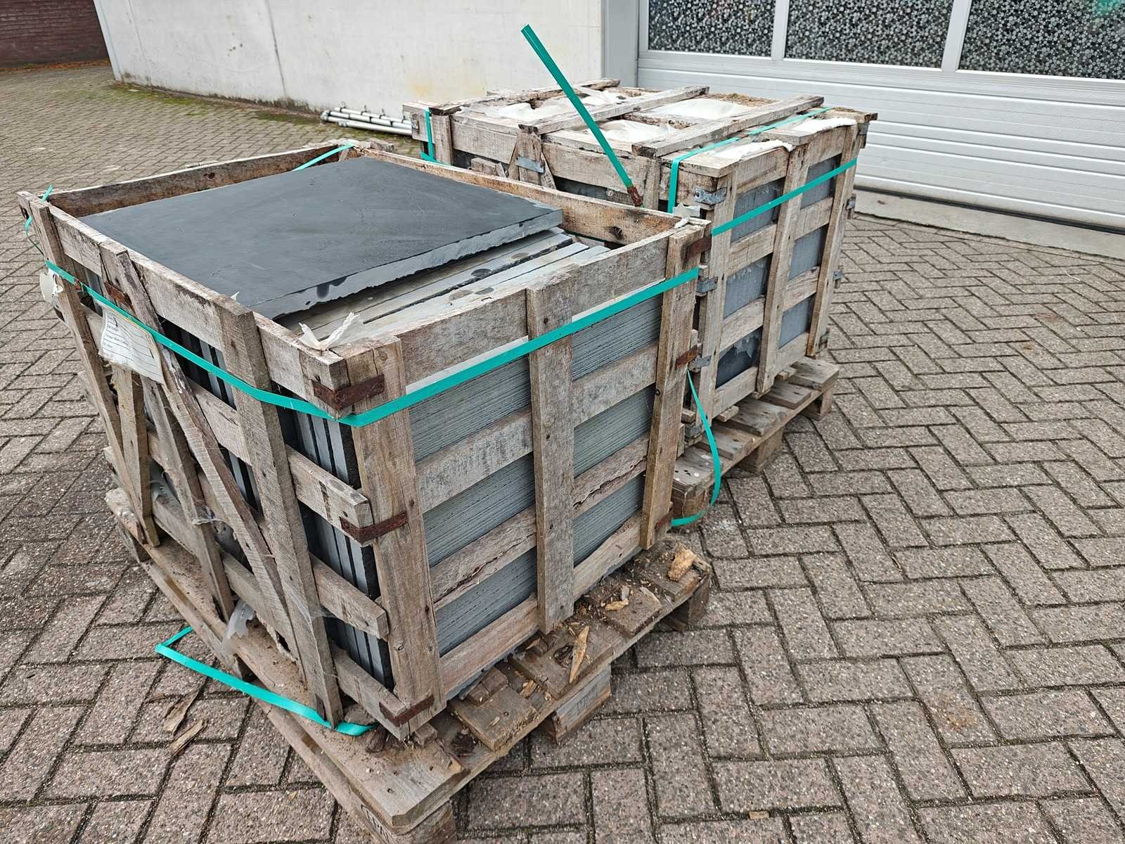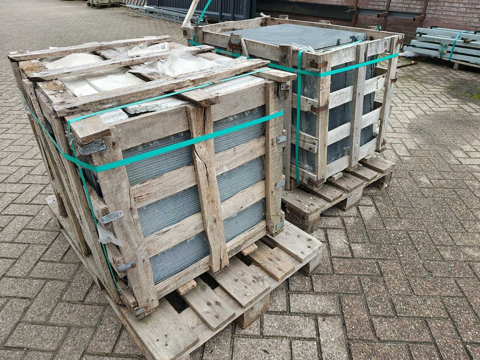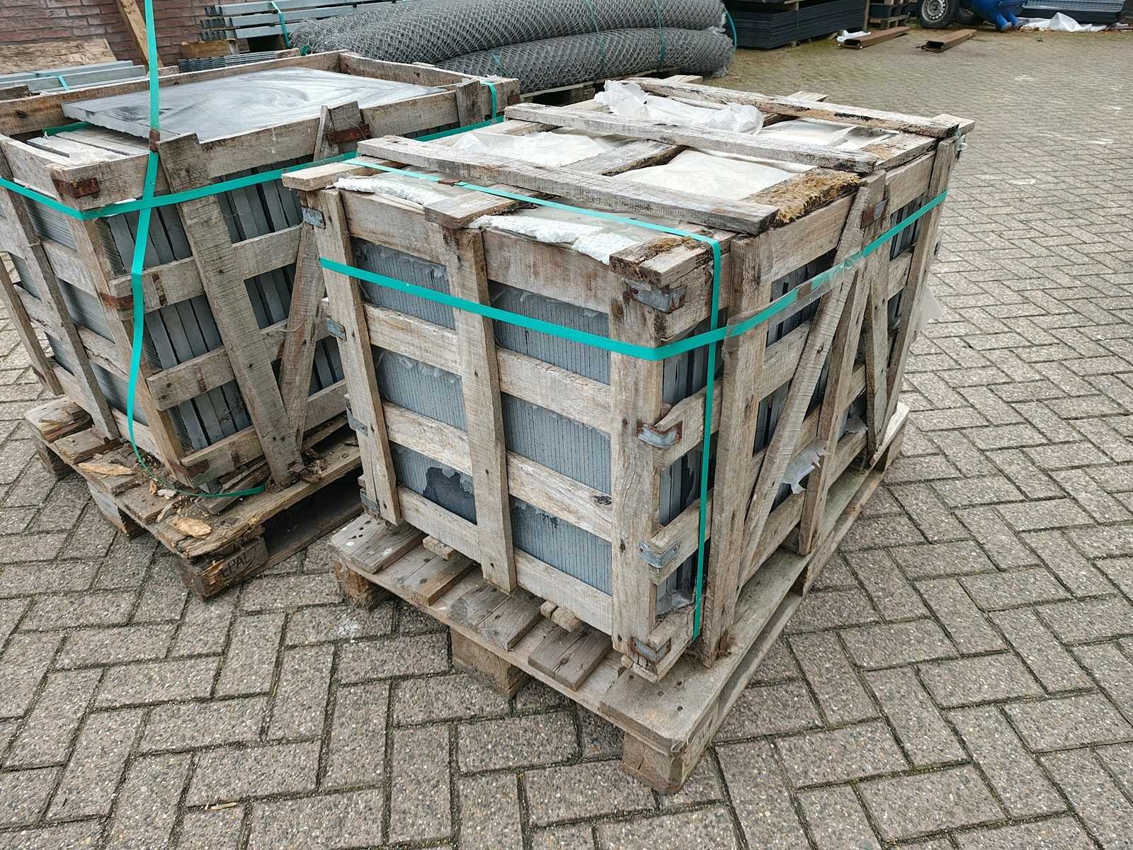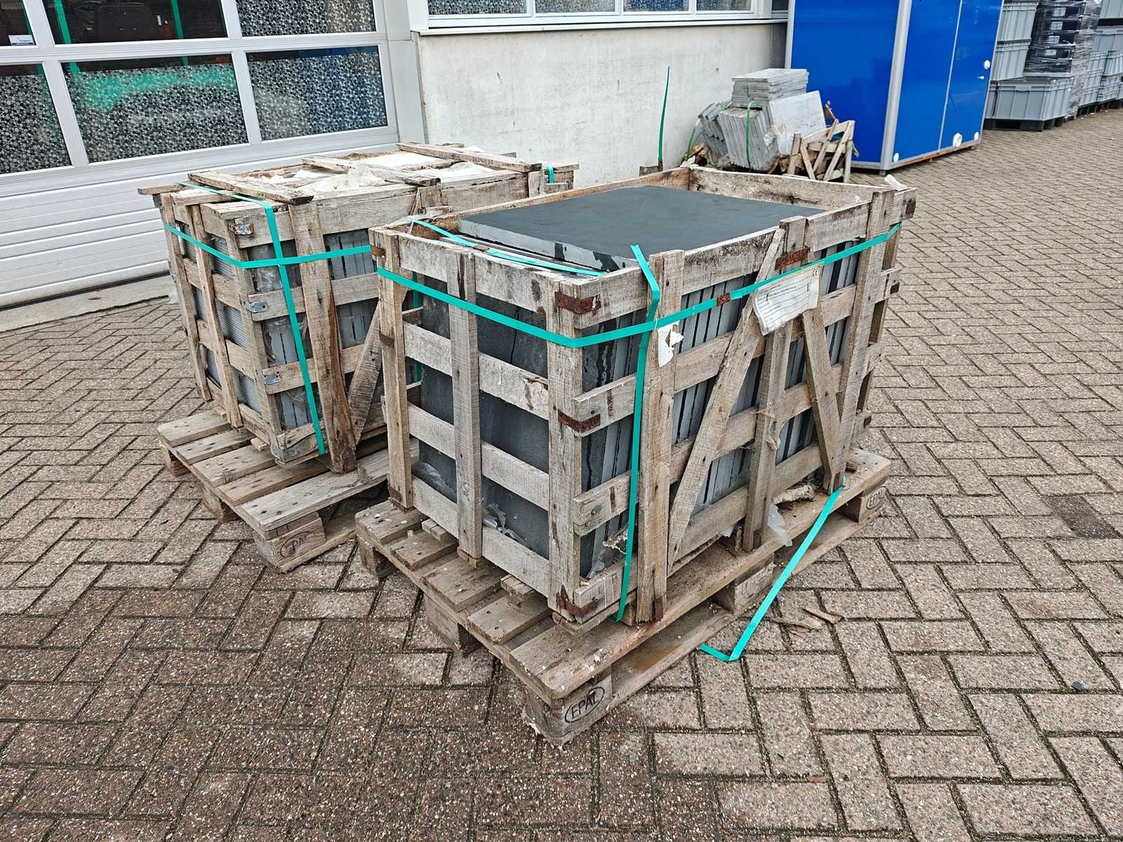 Partij bestaande uit 2 kratten a ca 29 tegels 60x60cm, ongebruikt Nee Lengte: 60cm Breedte: 60cm Dikte: 30mm Materiaal: Limestone