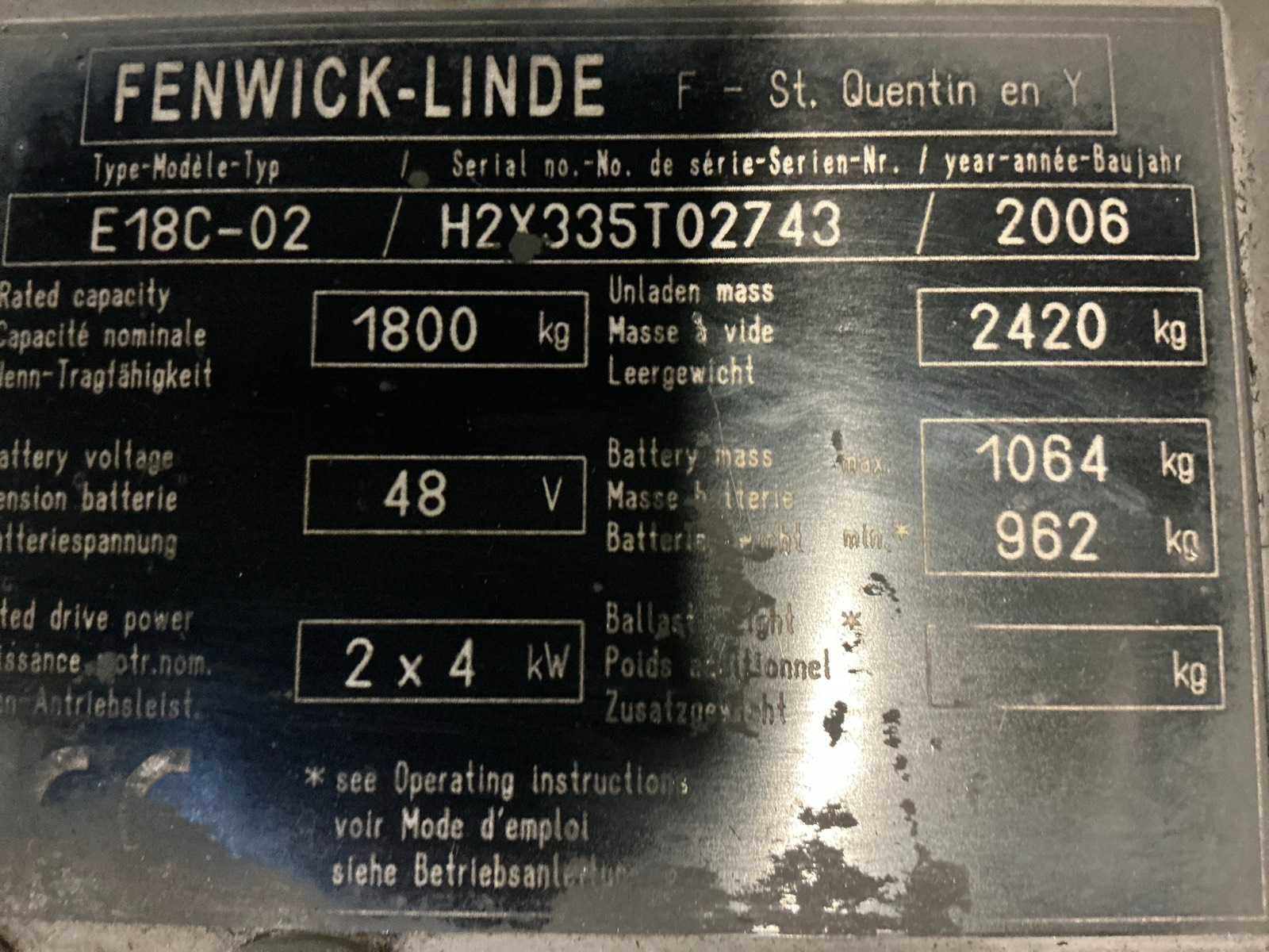 BOLZONI AURAMO side shift vorkversteller ,nieuwe accu van 2020 Nee Merk: Linde-fenwick Type: E18C-02 Bouwjaar: 2006 Serienummer: H2X335T02743 Brandstof: Elektrisch Mast: Duplex Soort band: Volrubber banden Aantal wielen: 4 Afgelezen urenstand: 6500 Hydraulisch verstelbare lepels: true Duplex mast: true Eigen gewicht: 3500kg Hefvermogen: 1800kg Lepellengte: 1200mm Min. hefhoogte: 0mm Max. hefhoogte: 4800mm Hefhoogte: 4800mm Vol rubber banden: true Totale afmeting L: 2100mm Totale afmeting Breedte: 1150mm Totale afmeting Hoogte: 2950mm