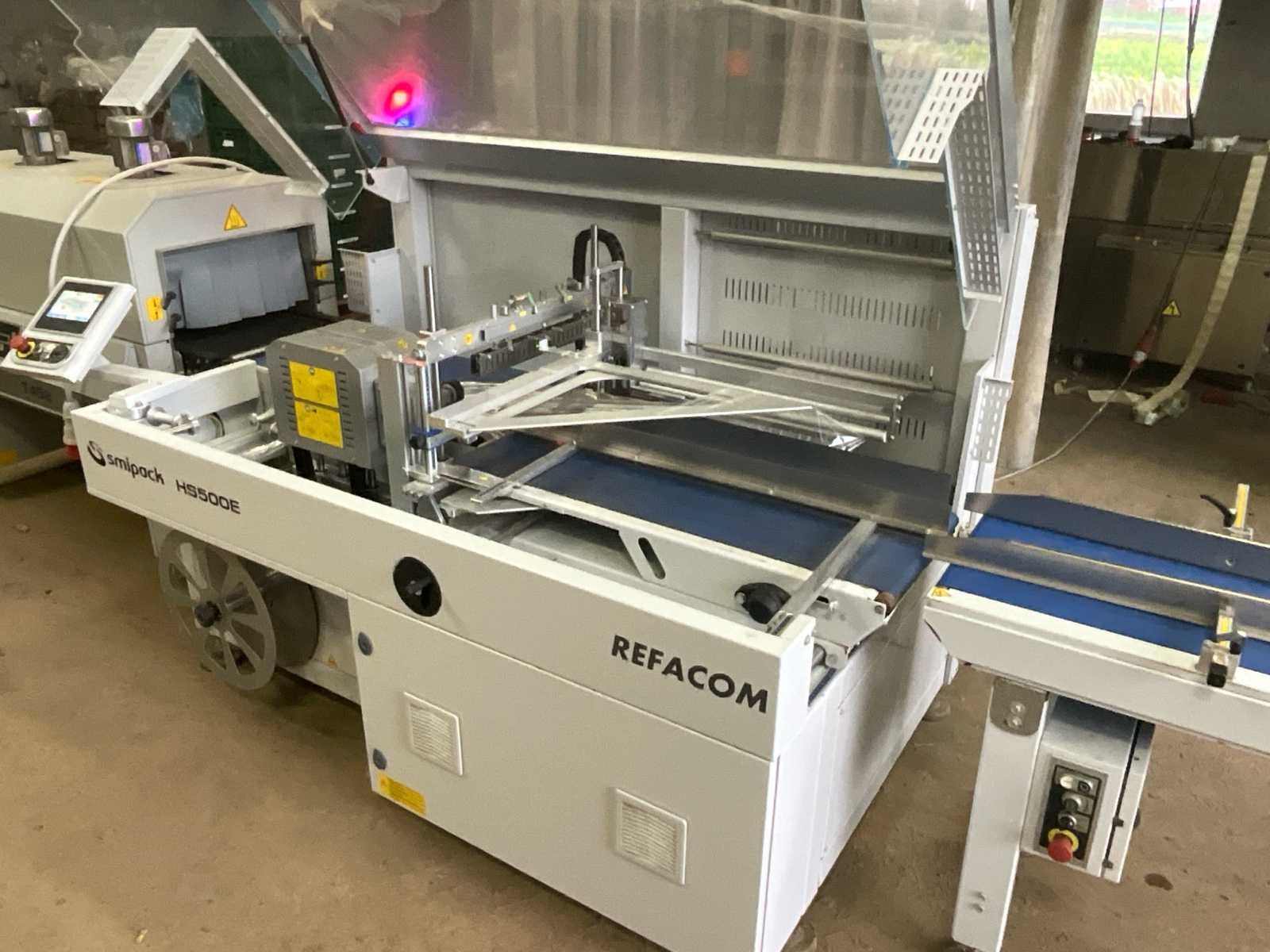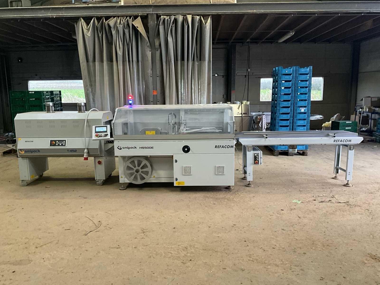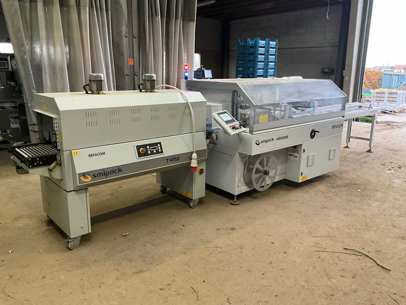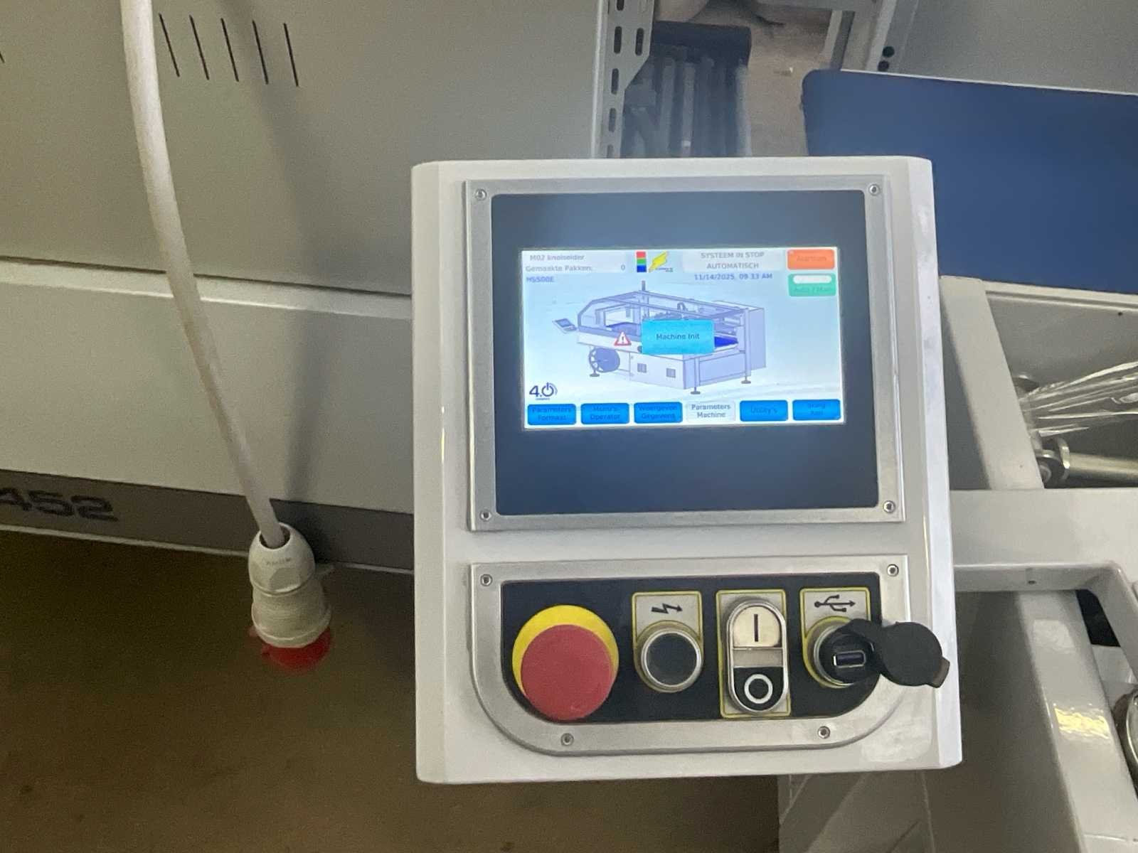 Simpack HSE500E hoeklasser met bijhorende krimptunnel Simpack T425 + transportband 200mm No Merk: Smipack Type: HS500E Bouwjaar: 2024 Serienummer: 91539 Transportband afm. l: 2000mm Transportband afm. b: 400mm Transportband afm. h: 200mm Aansluiting: 380V Eigen gewicht: 800kg Totale afmeting L: 6300mm Totale afmeting Breedte: 1550mm Totale afmeting Hoogte: 1500mm