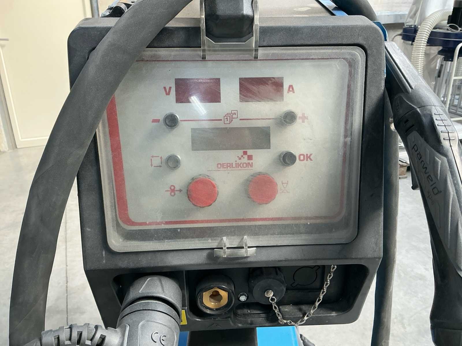 Waterkoeling. 3-fase. 32 Ampere stekker. Lasdraad 1,2mm. Argon gas. Bouwjaar +- 2012. In werkende staat. No Merk: Oerlikon Type: Citopuls II 420 Serienummer: W000273204 Inschakelduur: 60% Max. lasvermogen: 420A Aansluiting: 400V Digitale uitlezing: true Draadaanvoerunit: true Machinegewicht: 80kg Afmeting l: 800mm Afmeting b: 360mm Afmeting h: 620mm
