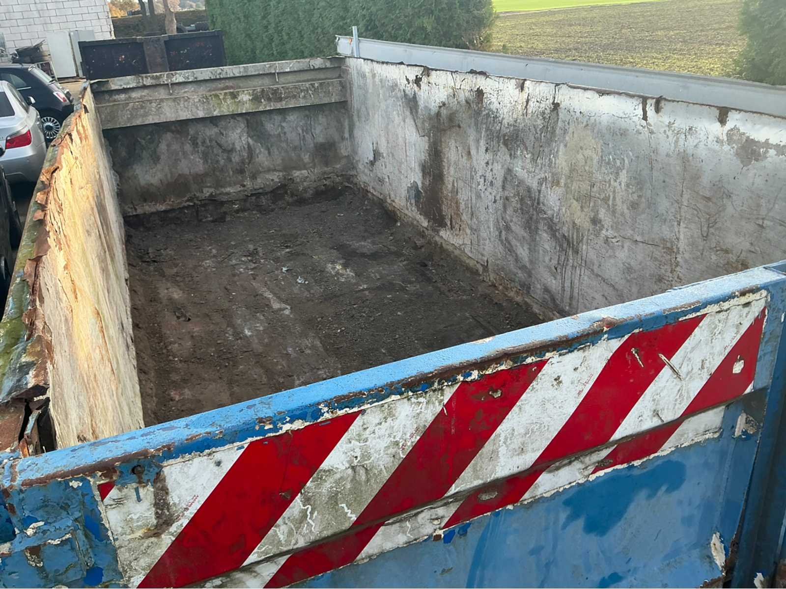 No Merk: Container blauw met slechte bodem Totale afmeting L: 6000mm Totale afmeting Breedte: 2400mm Totale afmeting Hoogte: 1500mm