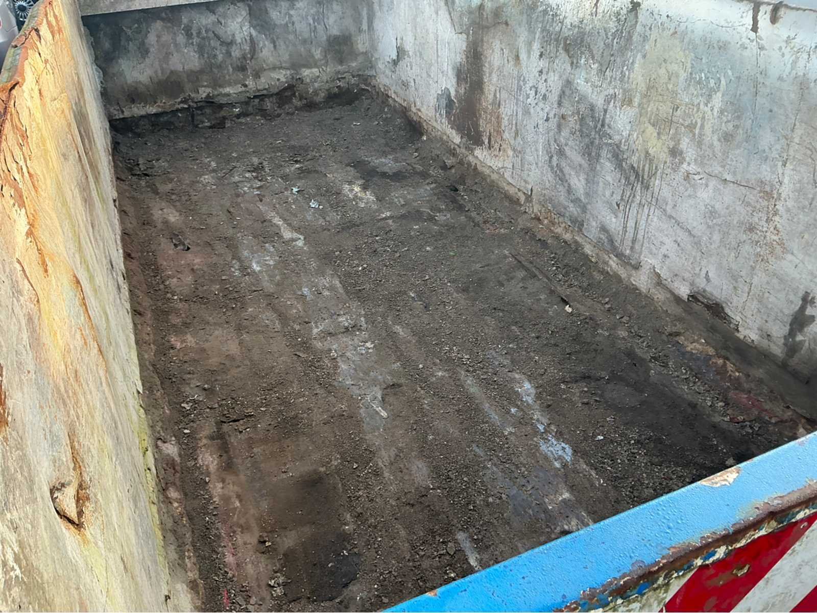 Container blauw met slechte bodem afzet afvalcontainer