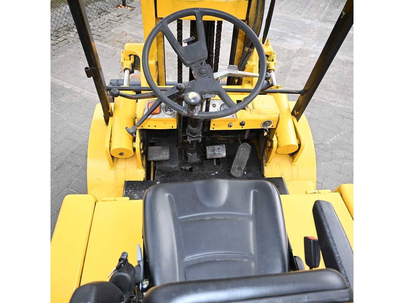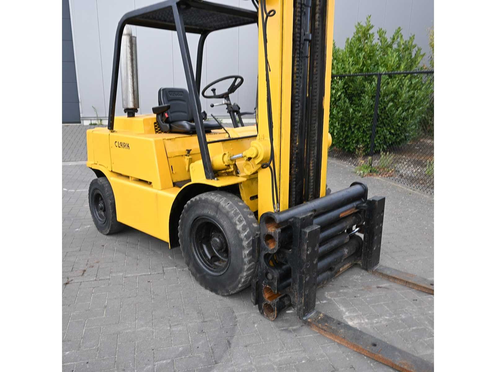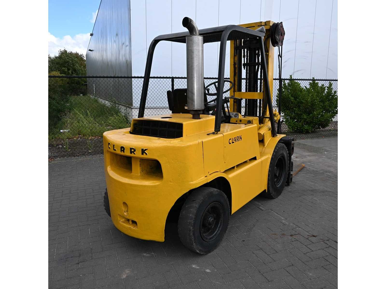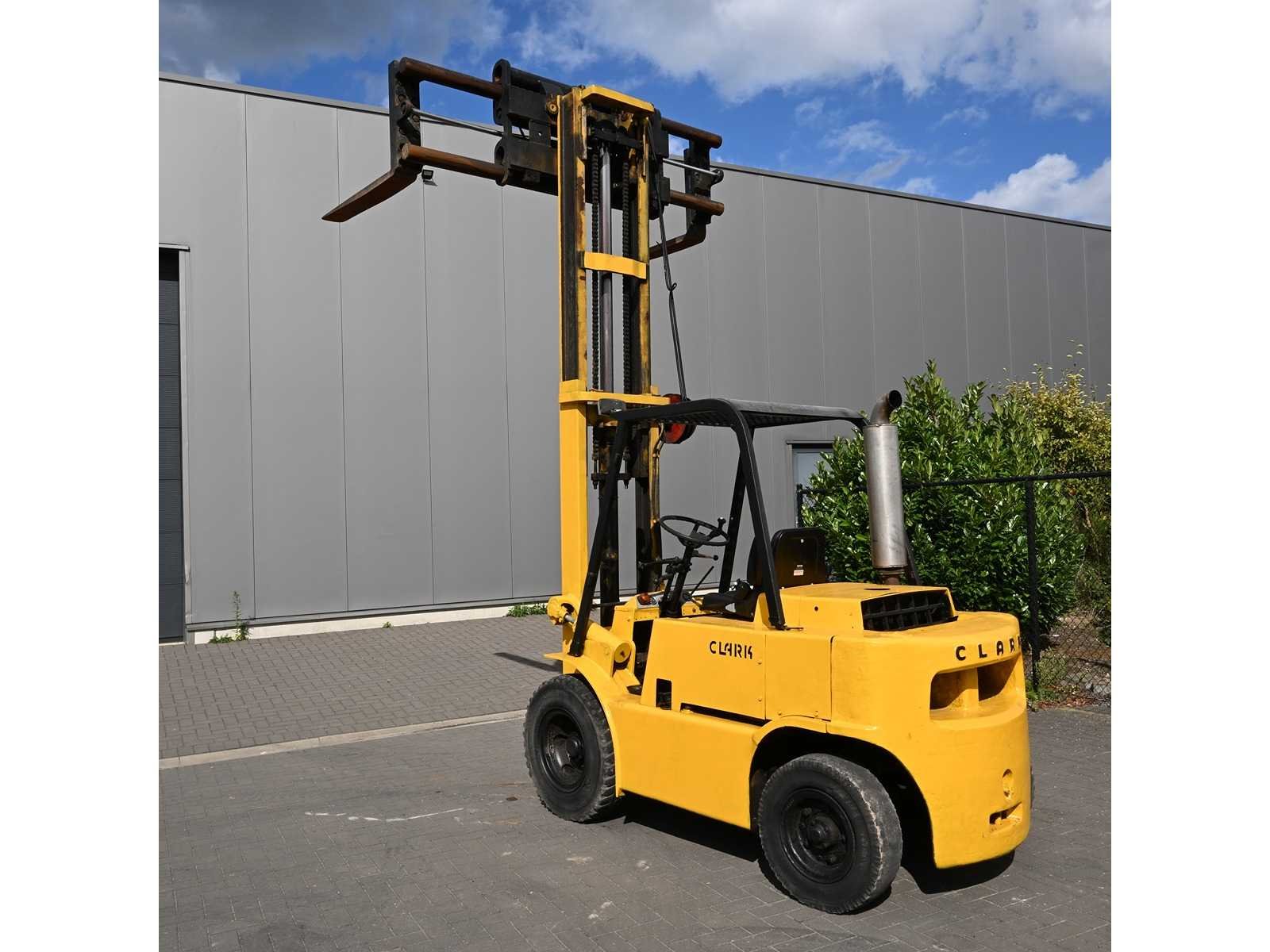 Clark Diesel forklift Mercedes diesel engine No Merk: Clark Brandstof: Diesel Mast: Standaard Aantal wielen: 4 Hydraulisch verstelbare lepels: true Hefvermogen: 3000kg Hefhoogte: 4000mm Vol rubber banden: true Minimale doorrijhoogte: 2500mm Diesel: true Leveringsvoorwaarden: Gratis op vrachtwagen