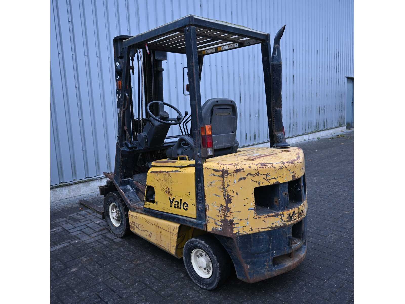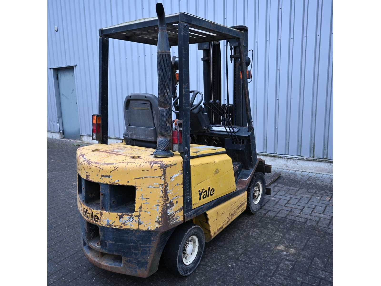 No Merk: Yale Type: GDP20 Bouwjaar: 1991 Brandstof: Diesel Mast: Triplex Soort band: Vol rubber Aantal wielen: 4 Afgelezen urenstand: 4927 Side-shift: true Triple mast: true Eigen gewicht: 3480kg Hefvermogen: 2000kg Hefhoogte: 4700mm Vol rubber banden: true Minimale doorrijhoogte: 2100mm Diesel: true Leveringsvoorwaarden: Gratis op vrachtwagen