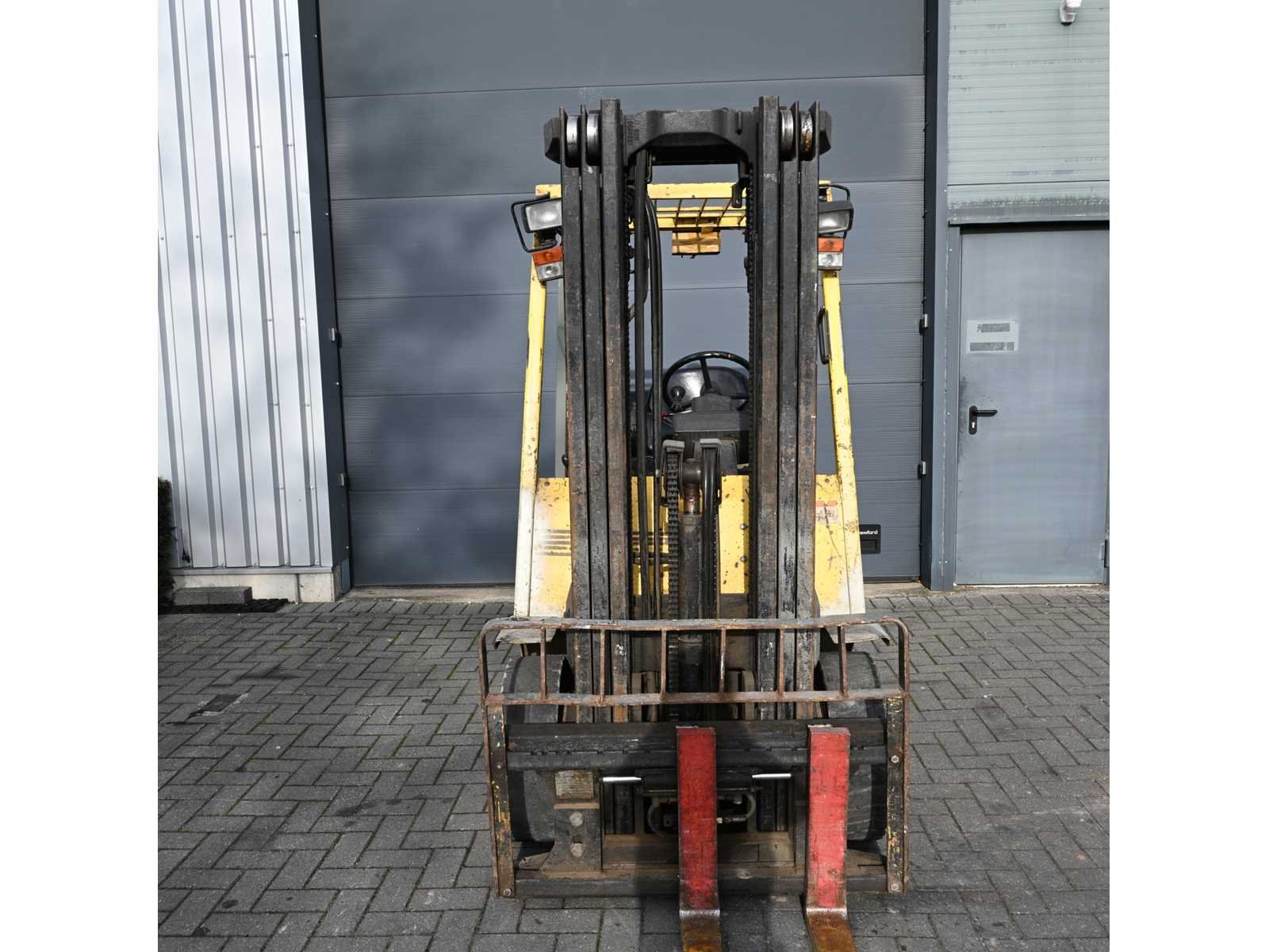 No Merk: Hyster Type: H2.50XM Bouwjaar: 1995 Serienummer: D177B21700S Brandstof: LPG Mast: Triplex Soort band: Vol rubber Aantal wielen: 4 Afgelezen urenstand: 12751 Free-lift: true Side-shift: true Triple mast: true Eigen gewicht: 4160kg Hefvermogen: 2500kg Hefhoogte: 4950mm Vol rubber banden: true Minimale doorrijhoogte: 2200mm LPG: true Leveringsvoorwaarden: Gratis op vrachtwagen