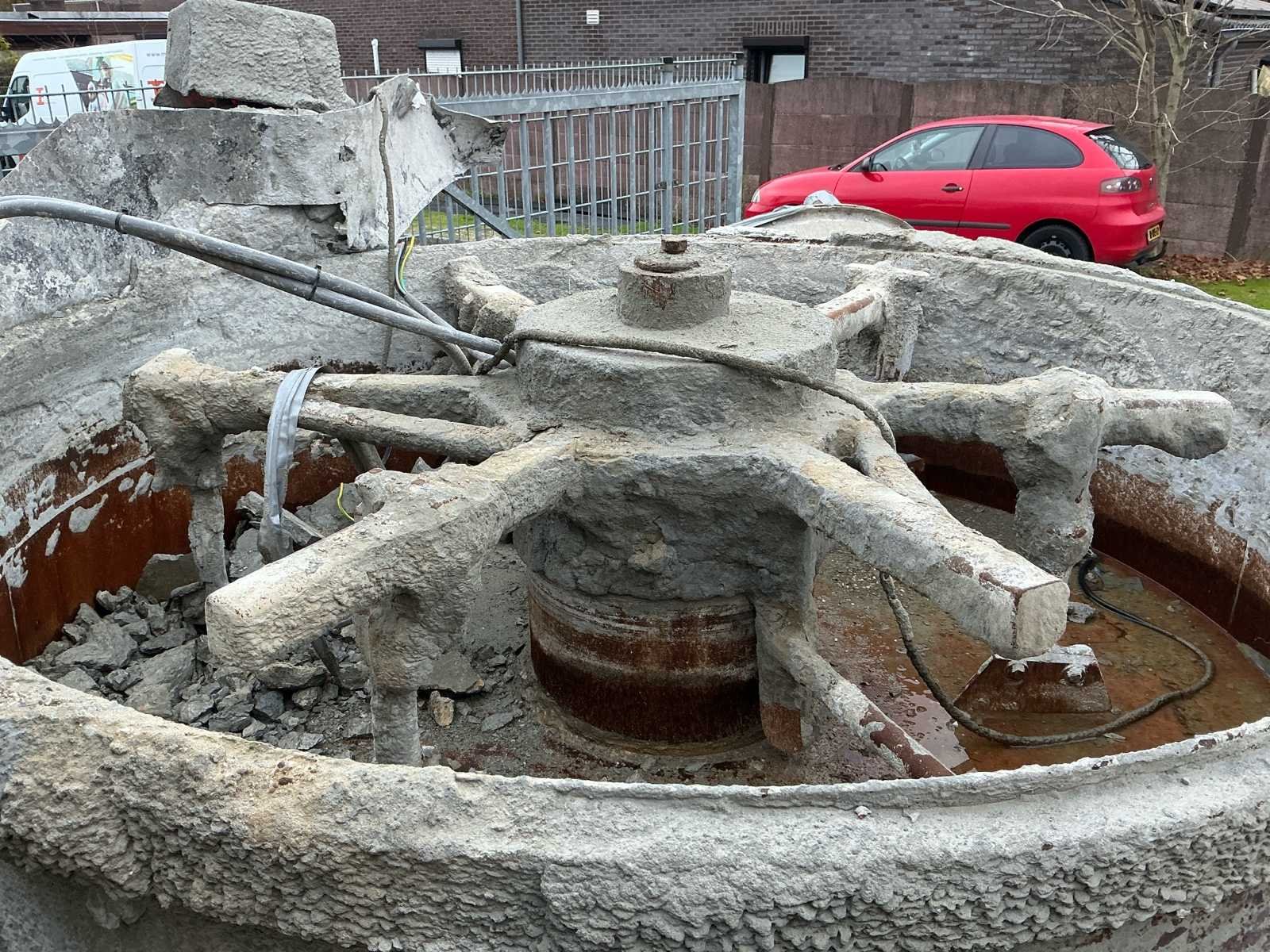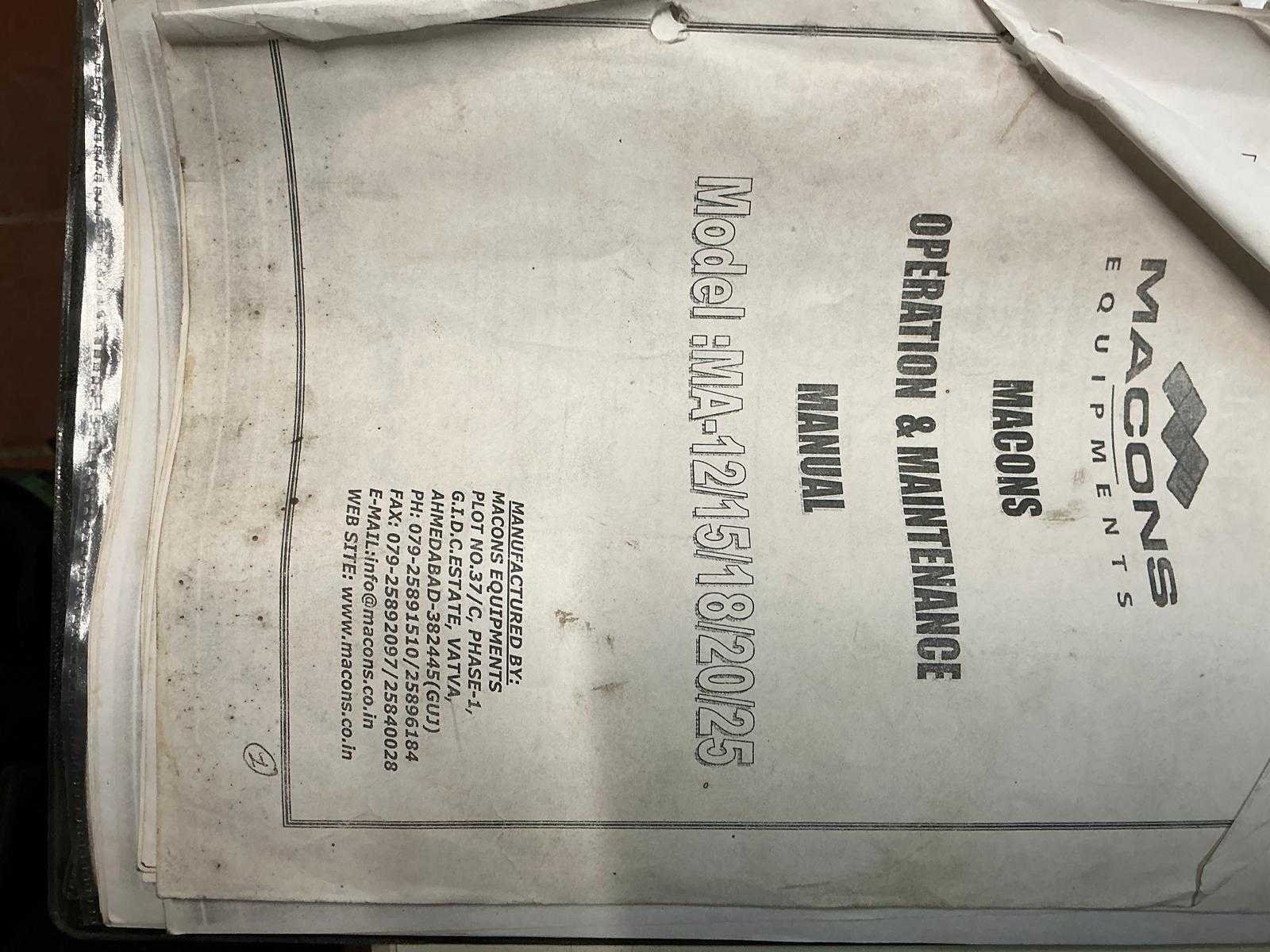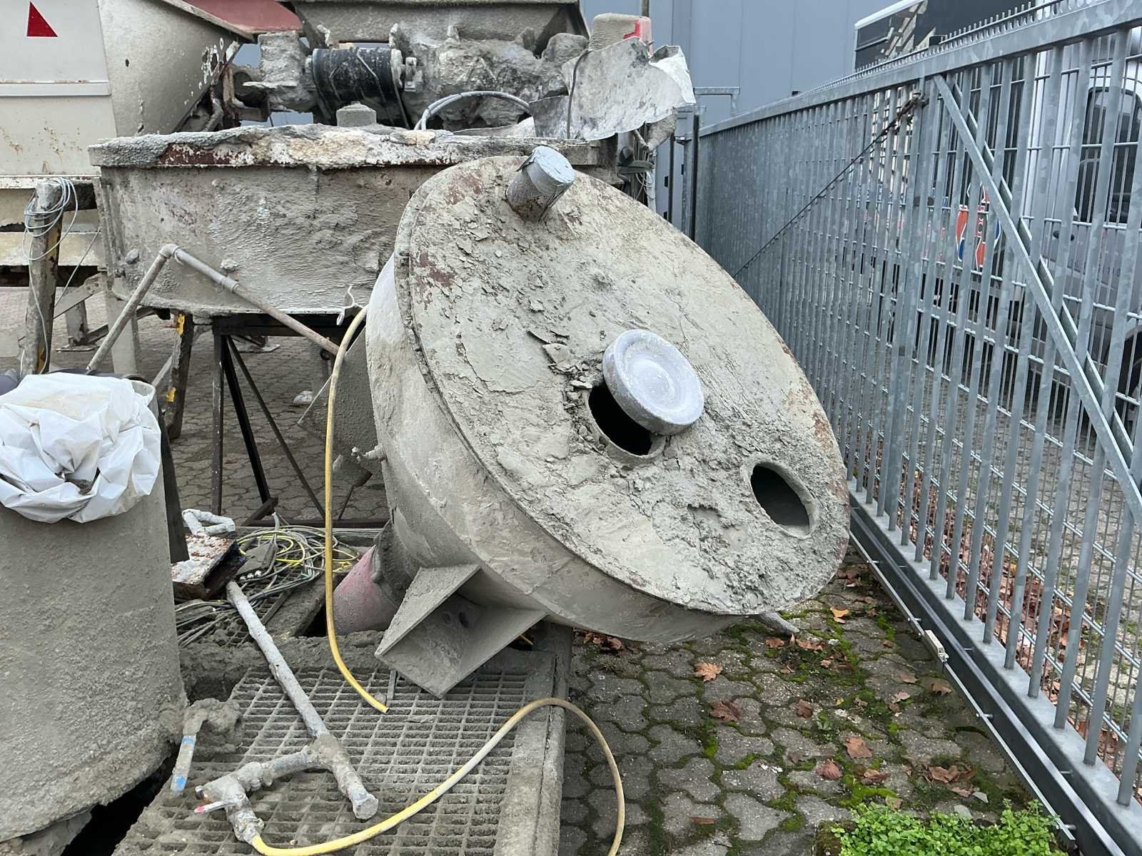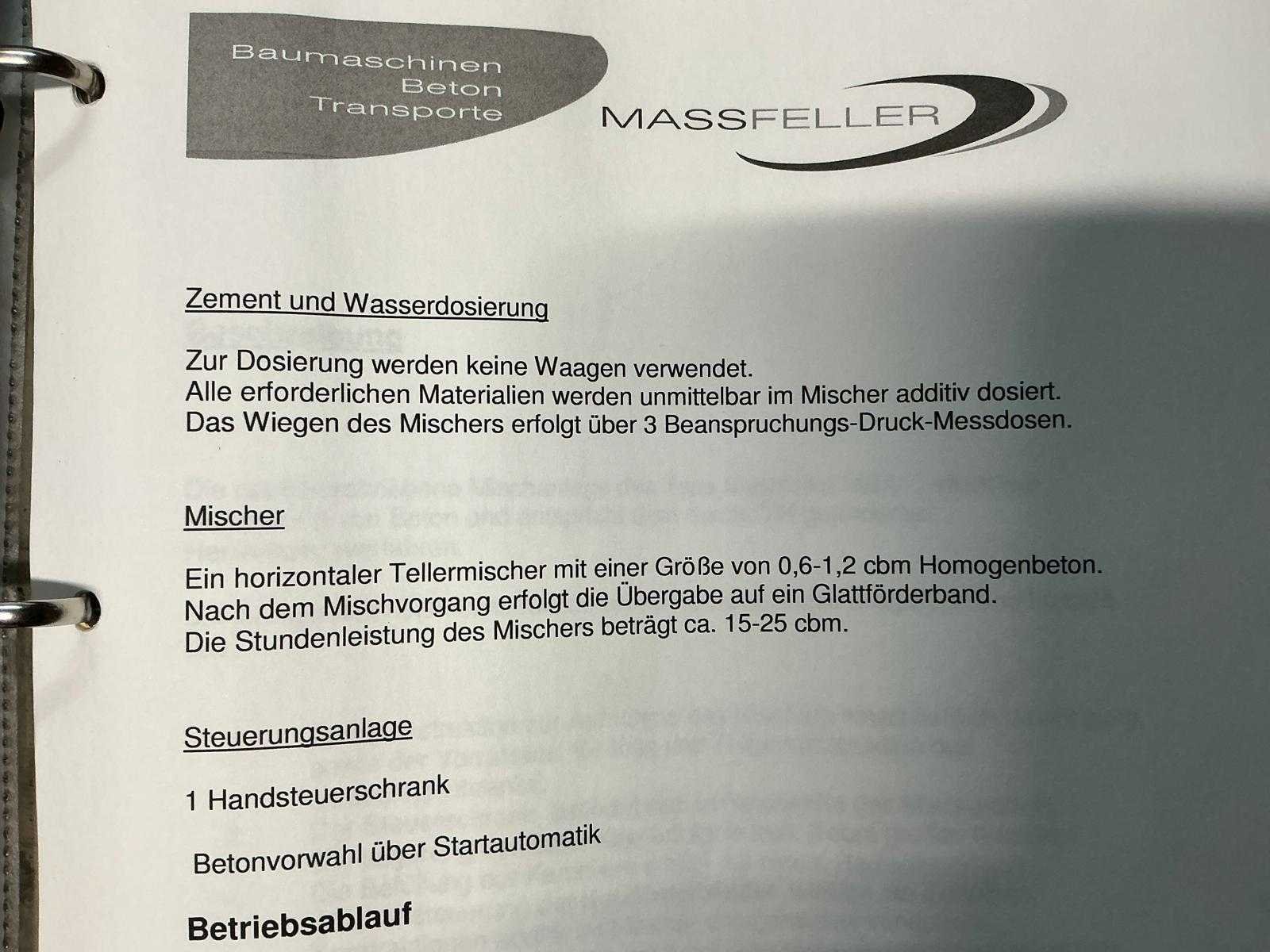 Bestaat uit: horizontale trommelmenger 1400Ltr, 4 aanvoerbanden voor 4 fracties, max. 3500kg belasting mixer, benodigde waterdruk 4-6 bar, elektrisch vermogen ca. 56kW, productie ca. 20M3/uur, charge grote per menging ca. 1000Ltr, mixermotor 30kW, betreft een reeds gedemonteerde machine, gereed voor transport, documentatie aanwezig, gebruiksaanwijzing, schema's. No Merk: Macons Type: MA20 Eigen gewicht: 10000kg