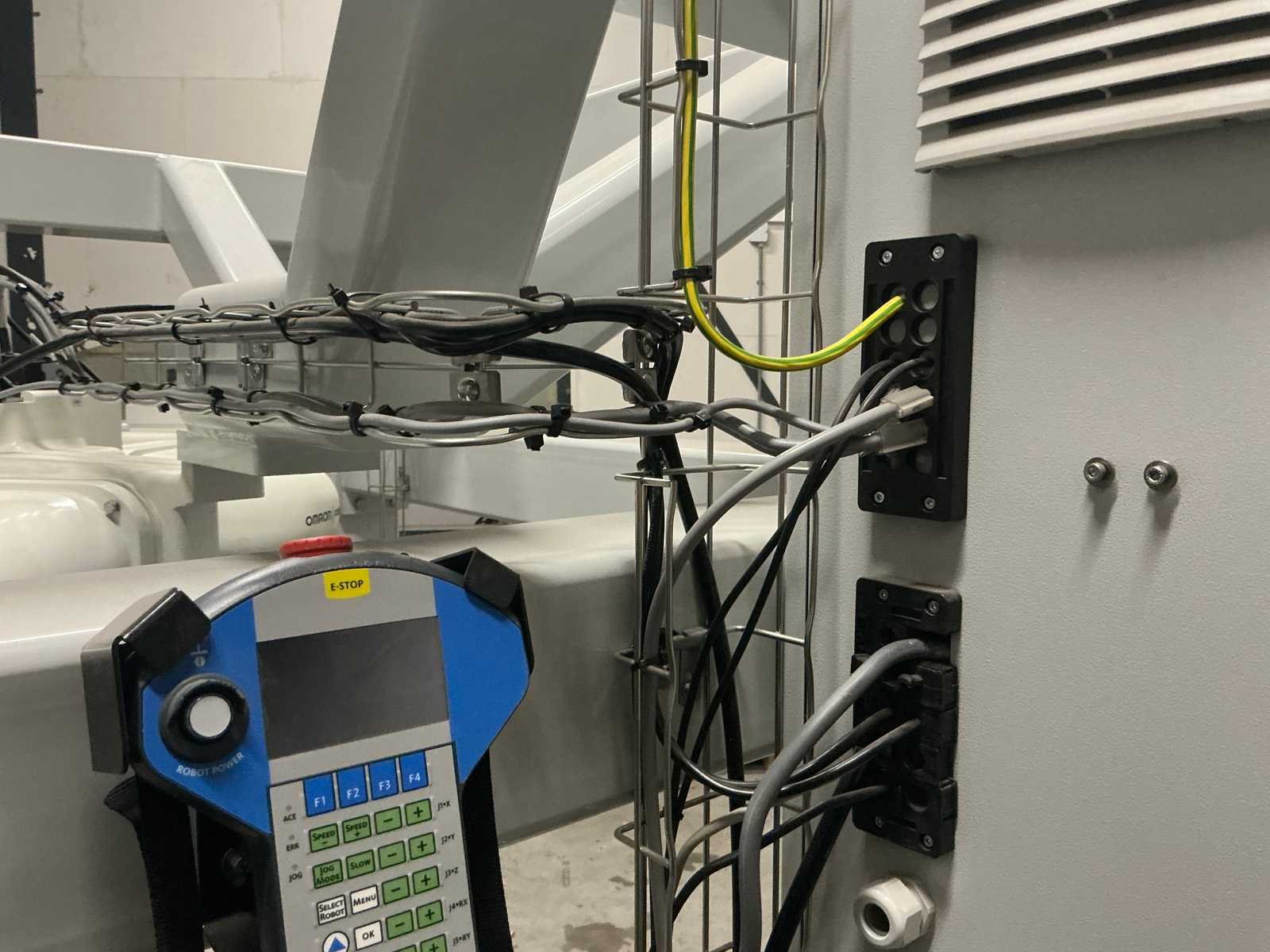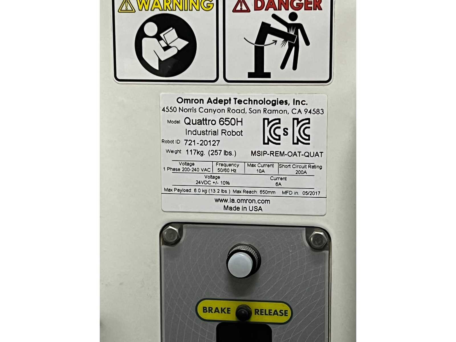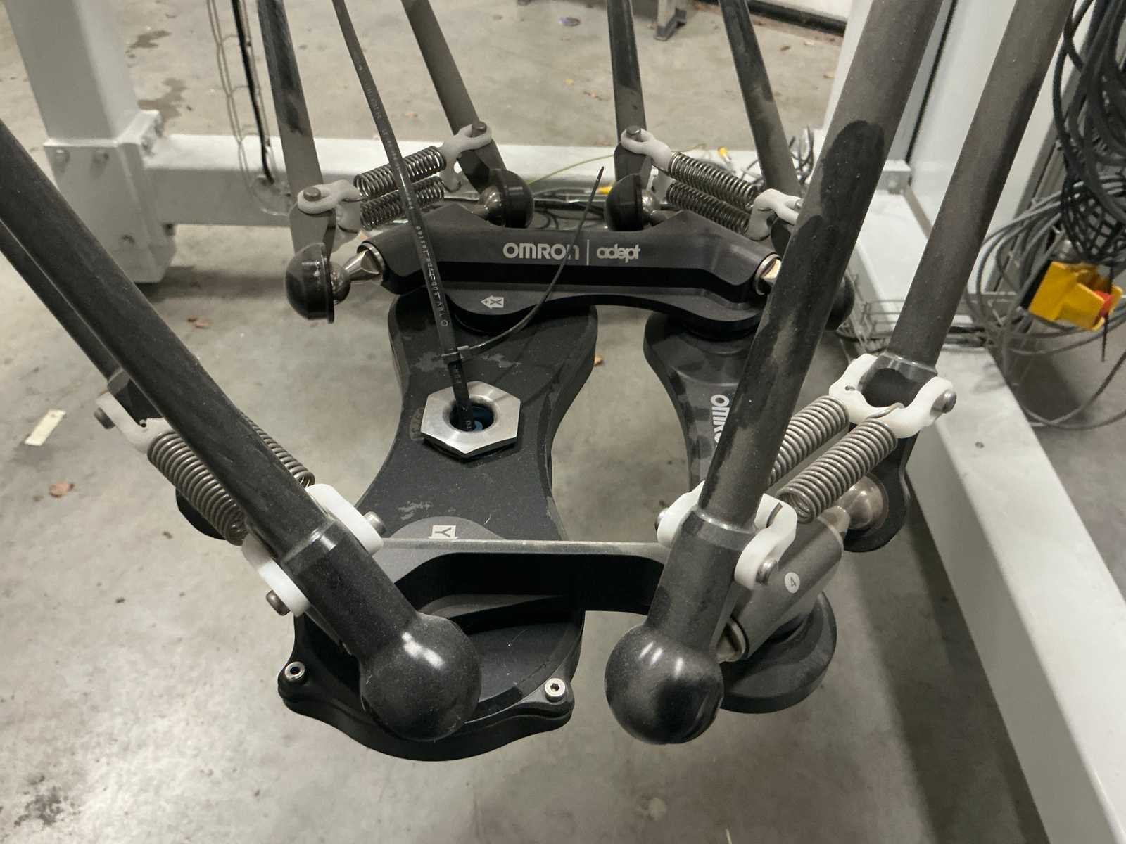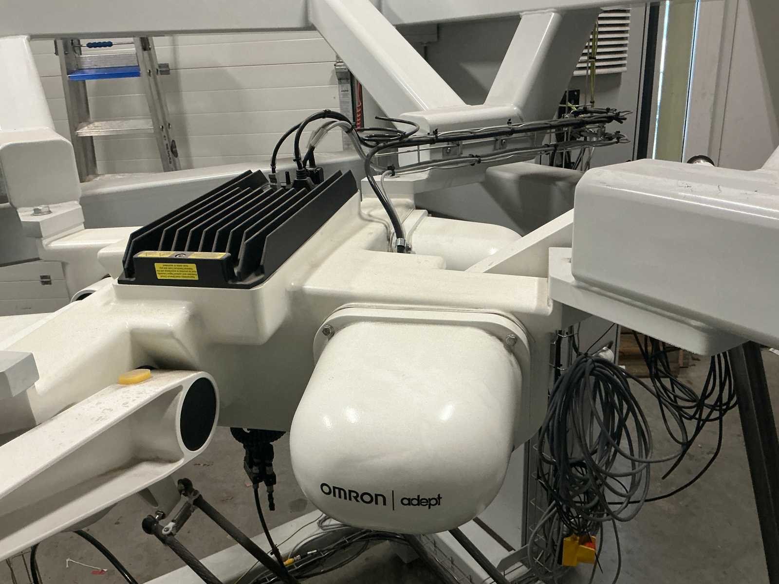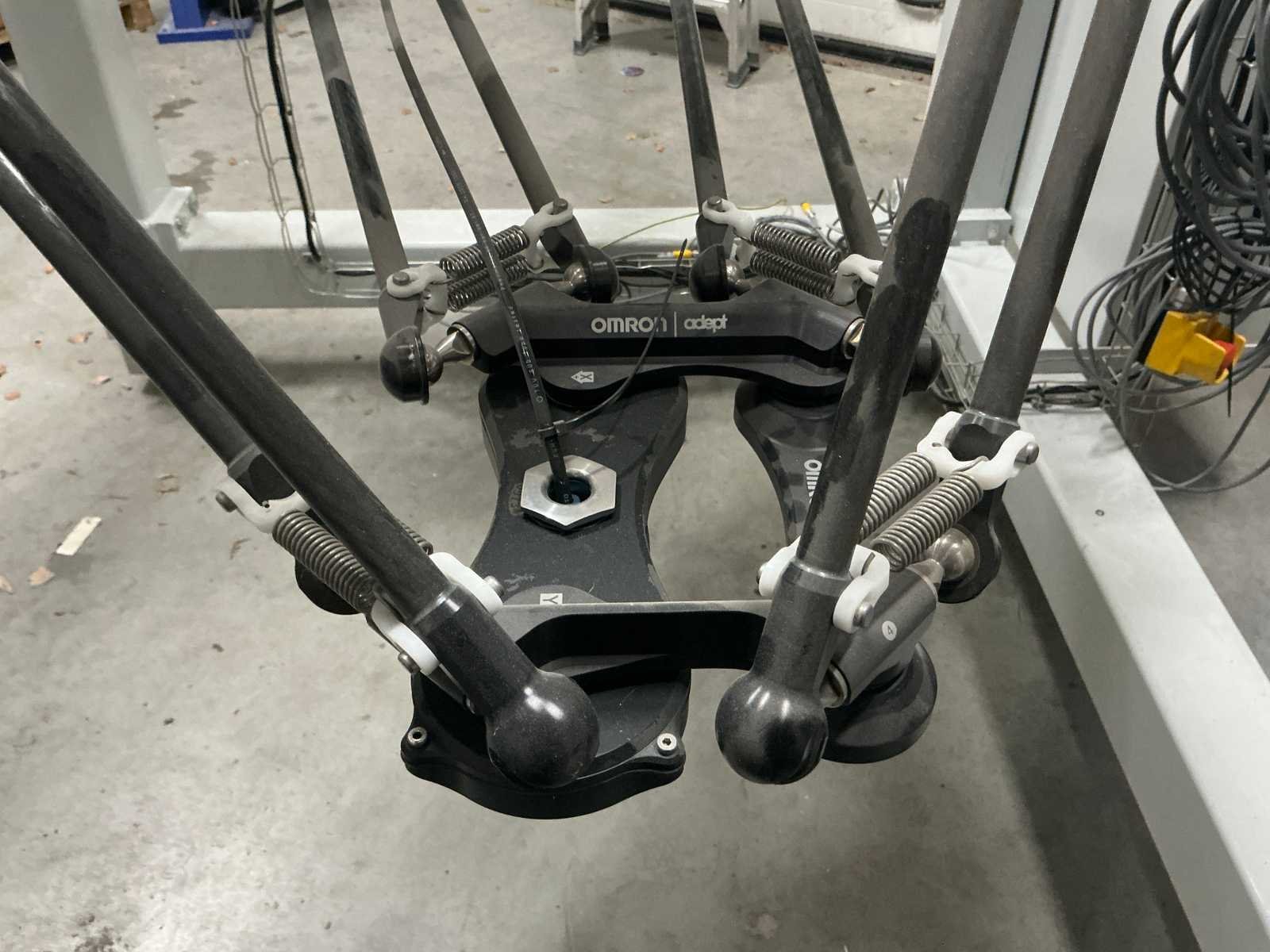 Omron Quattro 650H HMI parallel robot in stalen frame gemonteerd stalen buis frame, voorzien van controle kast (Omron adept) Frame is voorzien van hijsogen. Stalen frame bestaat uit stalen buis 15x15cm wit gespoten. No Merk: Omron Model: Quattro 650H Bouwjaar: 2017 Kleur: Wit Lengte: 215cm Breedte: 200cm Hoogte: 215cm Materiaal: Staal