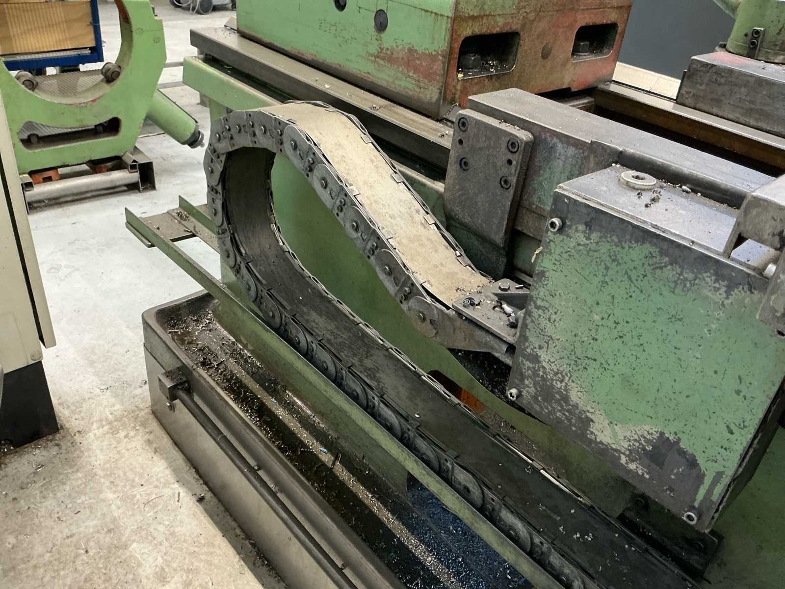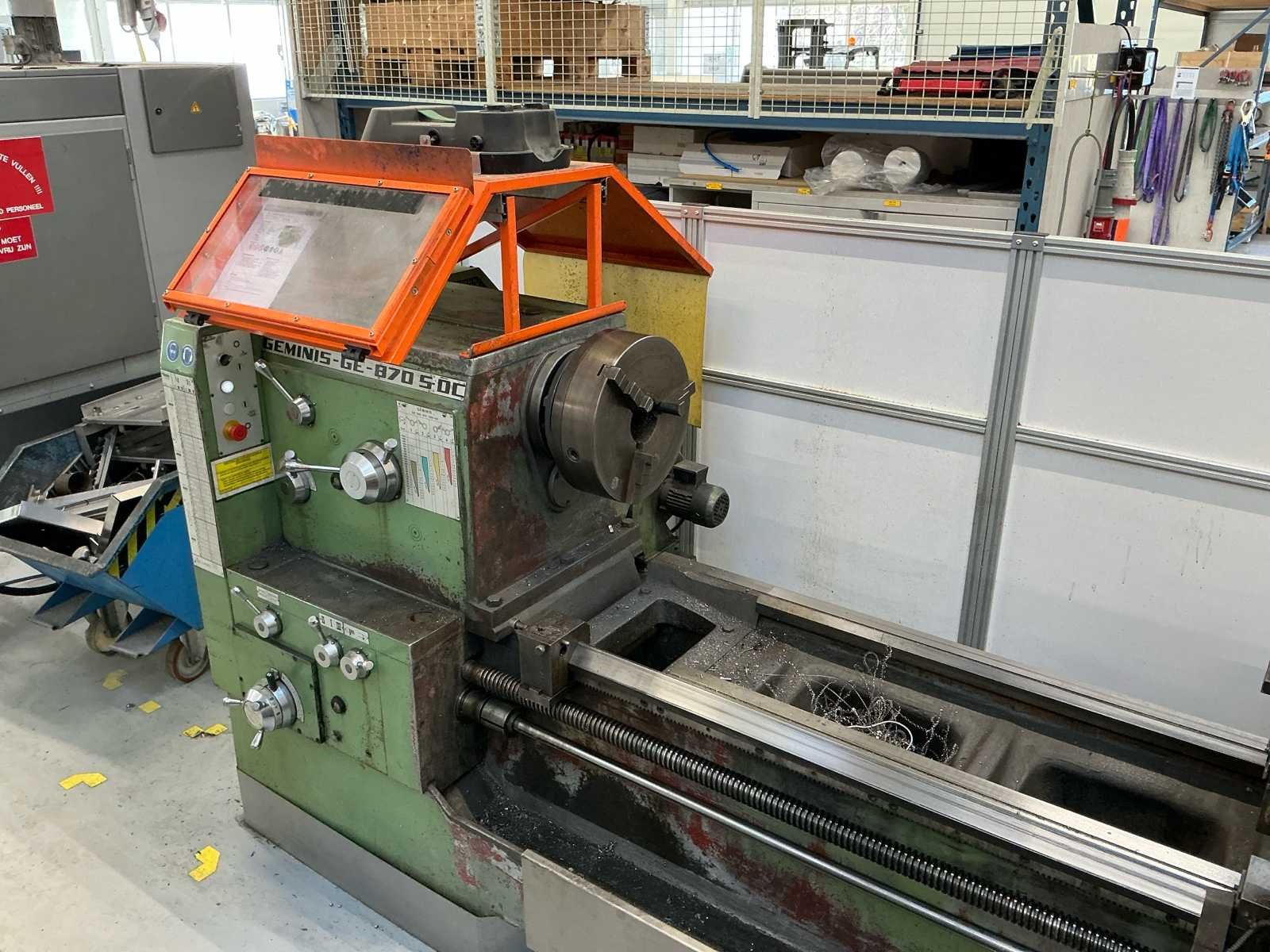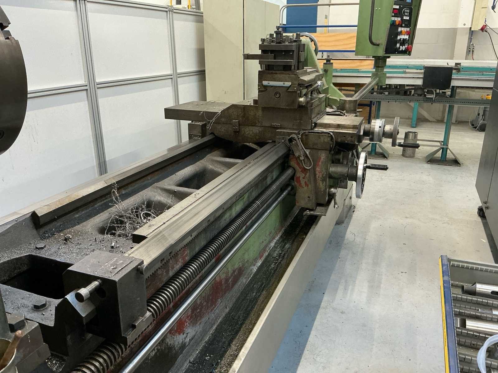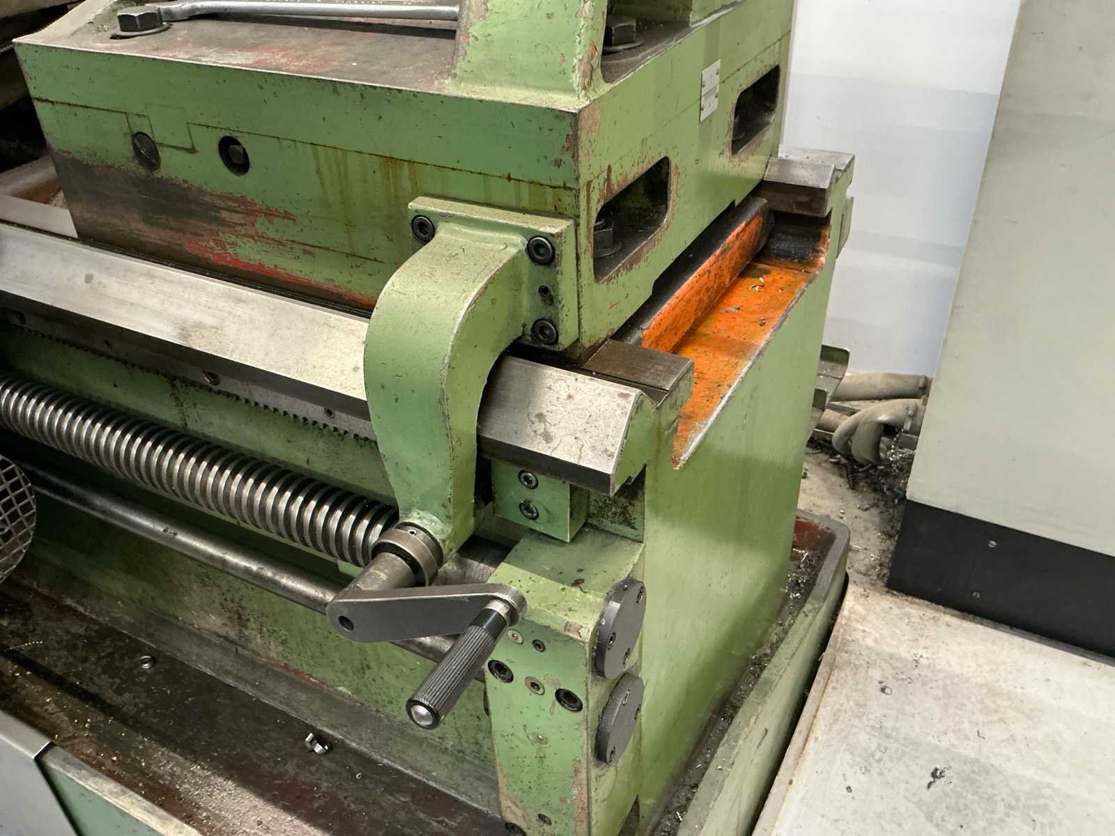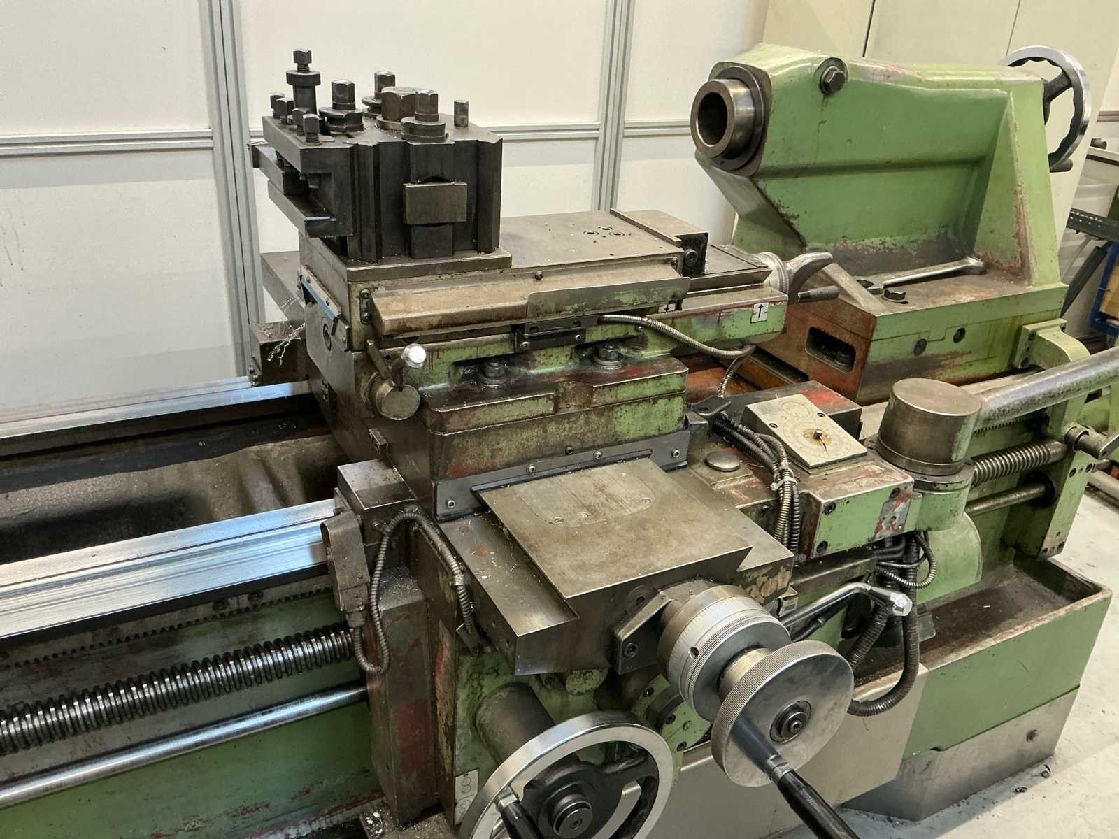 Voorzien van: Geminis GE870S, afstand tussen punten: 2.000 mm, digitale aflezing, elecktrische schakelkast, draadsnijklok, reduceerbus voor hoofdspil, 1 vast center, 1x hoofdspil boring 104mm, 1x hoofdspil boring 162mm, snelverstelling, motor 18,6kW, vaste bril, zelfcenterende 3 klauwplaten 500mm, onafhankelijke 4 klauwplaten 900mm, afmetingen DIN spilneus 8-11, spilsnelheden 18n standaard reeks 13-1000, snelle reeks 16-1250, spoed draadspil 6mm, 48 metrische spoeden van 0,5-30mm, 30 withwort 3/4-50, 48 langsaanzetten, 48 dwarsaanzetten, lengte bedslede 800mm, breedte dwarsslede 350mm, slag van dwarsslede 465mm, slag beilethouder 250mm, beitelschahchtafmeting 40x40mm, spilbusdiameter 100mm, slag spilbus 310mm, spilbusopname Morse 6, bedbreete 550mm, hoogte tot vlakke leibaan 805mm, doorlaat vaste bril 23-350, doorlaat meelopende bril 15-140mm, dubbelwandig bed met grote doorvalopening, 2 stuks 4 klauwen, koppel 5600Nm, ca. 10 stuks beitelhouders met diverse beitels, slijtplaatjes, opname conussen, inspanklauwen, en centers, documentatie aanwezig, aankoopfactuur, schema's, onderhouden machine, jaarlijks gekeurd. No Merk: Gemins Type: GE-870 S-DC Bouwjaar: 1986 Serienummer: N5099hv480 Draailengte: 3000mm Holle spil Ø: 100mm Aantal snelheden: 18 Besturing, merk, type: Fagor Aansluiting: 380V Machinegewicht: 6000kg Afmeting l: 4000mm Afmeting b: 1400mm Afmeting h: 2000mm