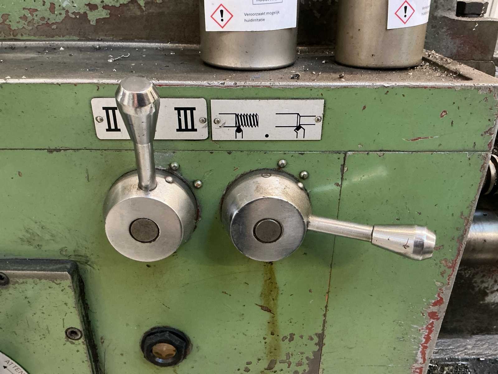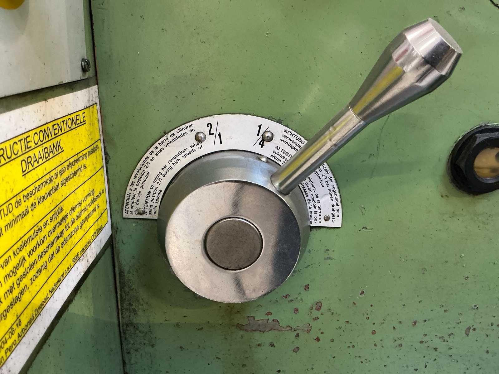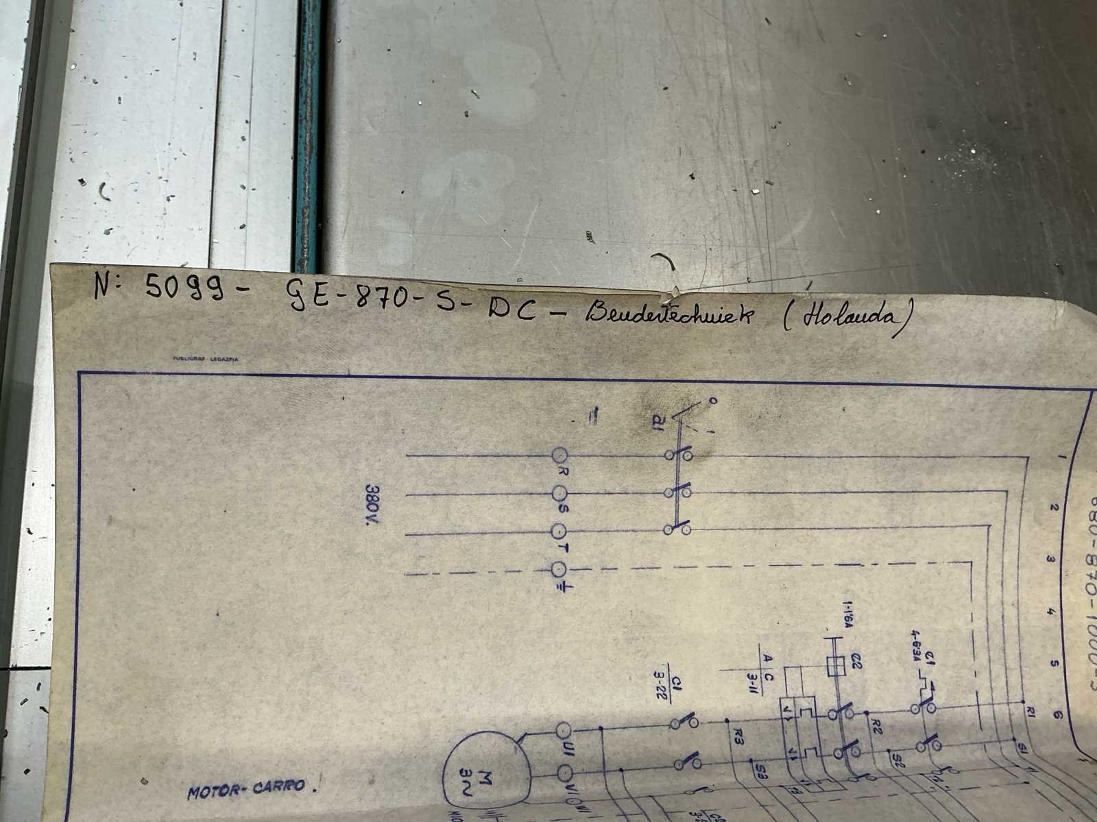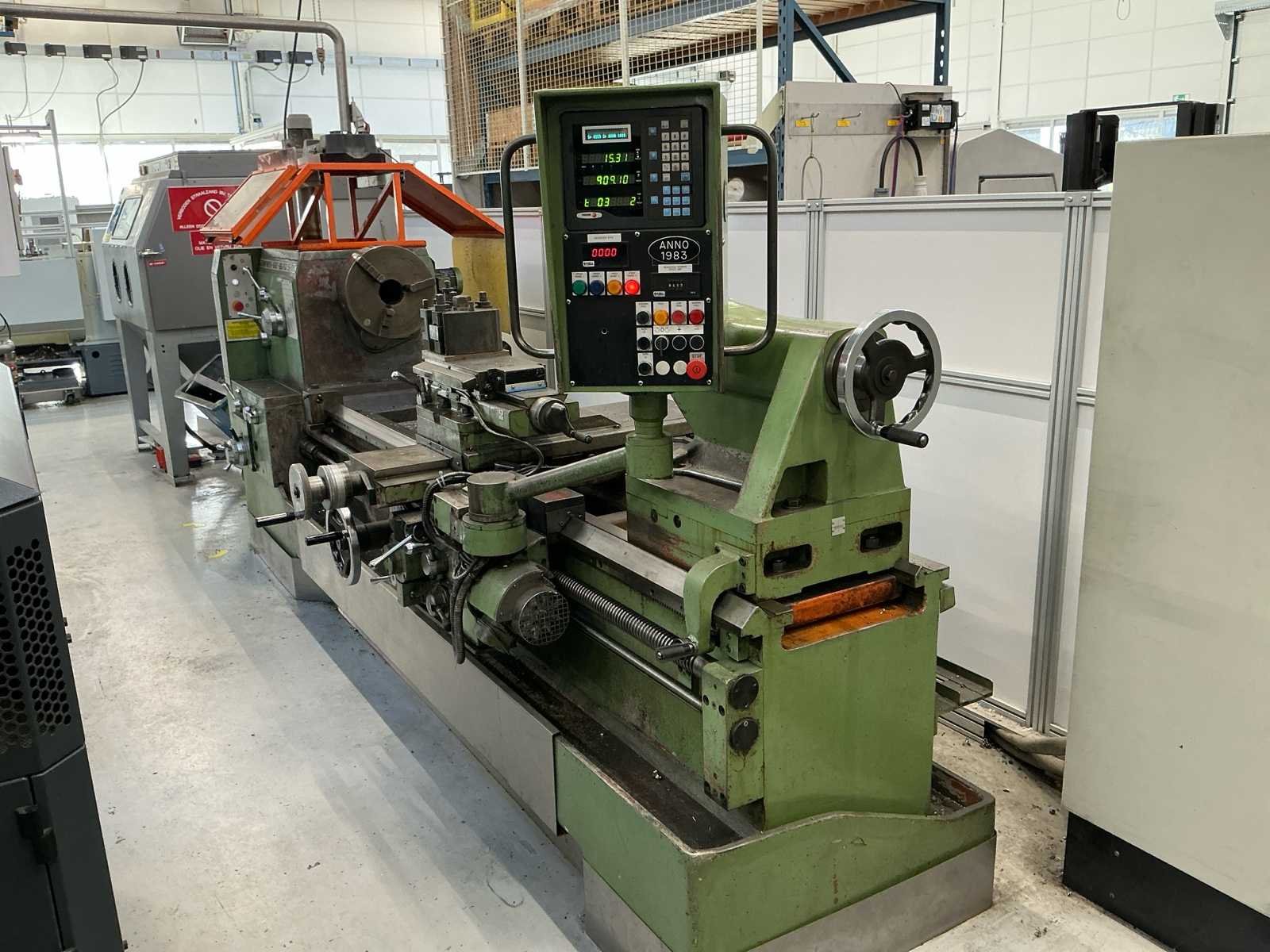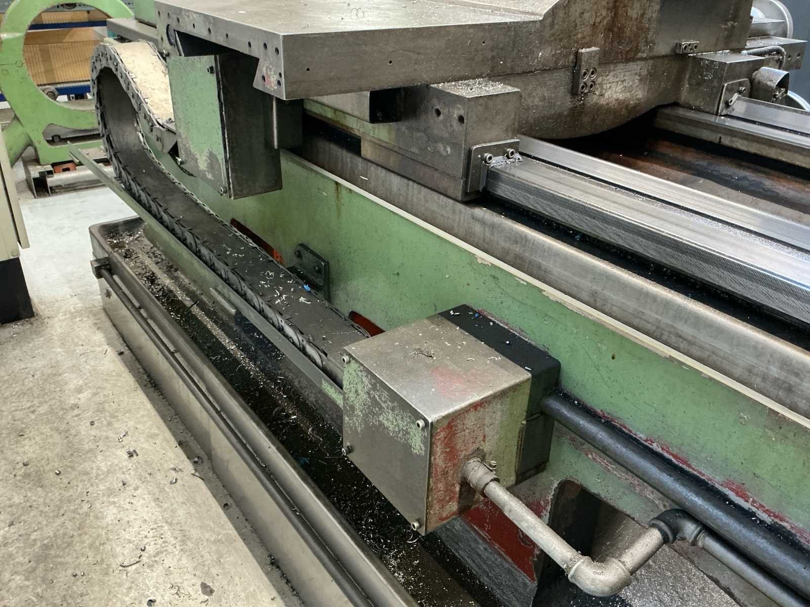Voorzien van: Geminis GE870S, afstand tussen punten: 2.000 mm, digitale aflezing, elecktrische schakelkast, draadsnijklok, reduceerbus voor hoofdspil, 1 vast center, 1x hoofdspil boring 104mm, 1x hoofdspil boring 162mm, snelverstelling, motor 18,6kW, vaste bril, zelfcenterende 3 klauwplaten 500mm, onafhankelijke 4 klauwplaten 900mm, afmetingen DIN spilneus 8-11, spilsnelheden 18n standaard reeks 13-1000, snelle reeks 16-1250, spoed draadspil 6mm, 48 metrische spoeden van 0,5-30mm, 30 withwort 3/4-50, 48 langsaanzetten, 48 dwarsaanzetten, lengte bedslede 800mm, breedte dwarsslede 350mm, slag van dwarsslede 465mm, slag beilethouder 250mm, beitelschahchtafmeting 40x40mm, spilbusdiameter 100mm, slag spilbus 310mm, spilbusopname Morse 6, bedbreete 550mm, hoogte tot vlakke leibaan 805mm, doorlaat vaste bril 23-350, doorlaat meelopende bril 15-140mm, dubbelwandig bed met grote doorvalopening, 2 stuks 4 klauwen, koppel 5600Nm, ca. 10 stuks beitelhouders met diverse beitels, slijtplaatjes, opname conussen, inspanklauwen, en centers, documentatie aanwezig, aankoopfactuur, schema's, onderhouden machine, jaarlijks gekeurd. No Merk: Gemins Type: GE-870 S-DC Bouwjaar: 1986 Serienummer: N5099hv480 Draailengte: 3000mm Holle spil Ø: 100mm Aantal snelheden: 18 Besturing, merk, type: Fagor Aansluiting: 380V Machinegewicht: 6000kg Afmeting l: 4000mm Afmeting b: 1400mm Afmeting h: 2000mm