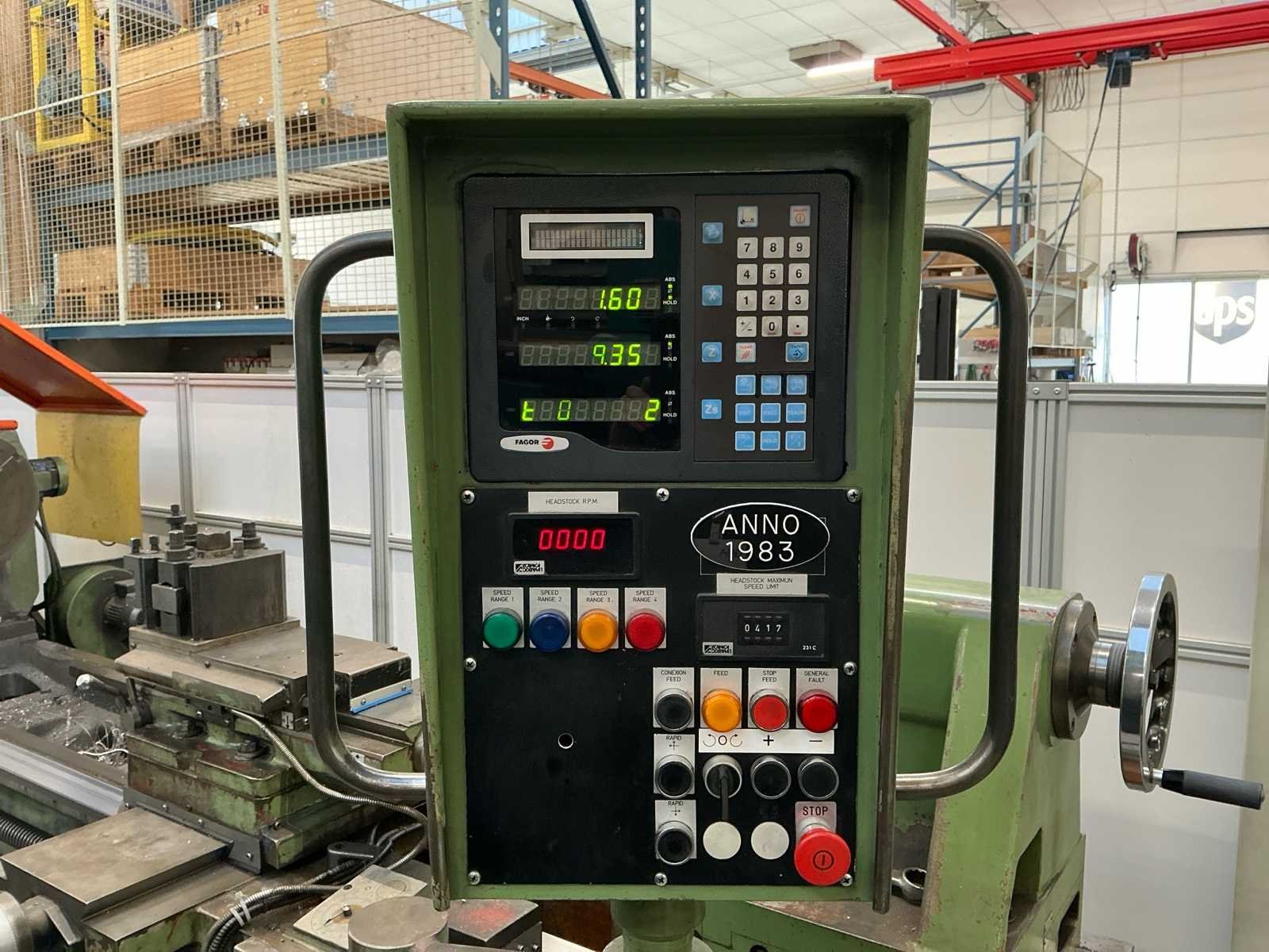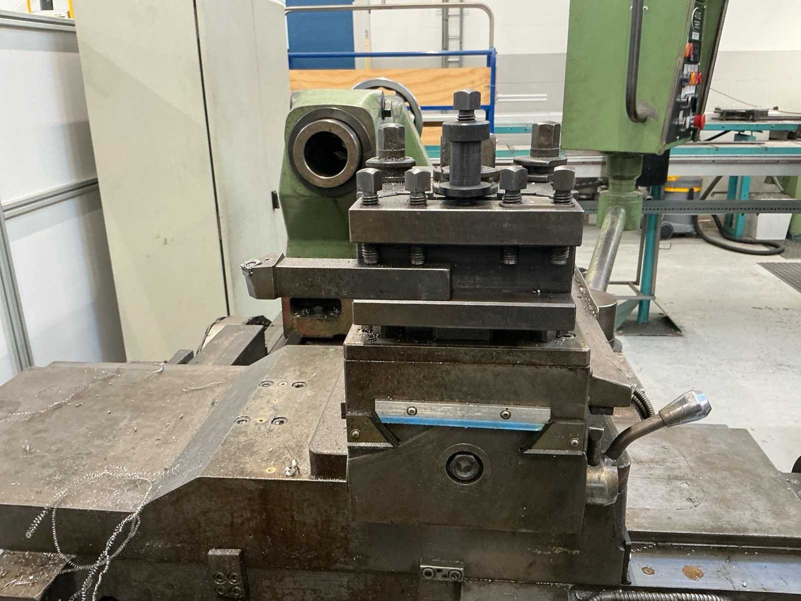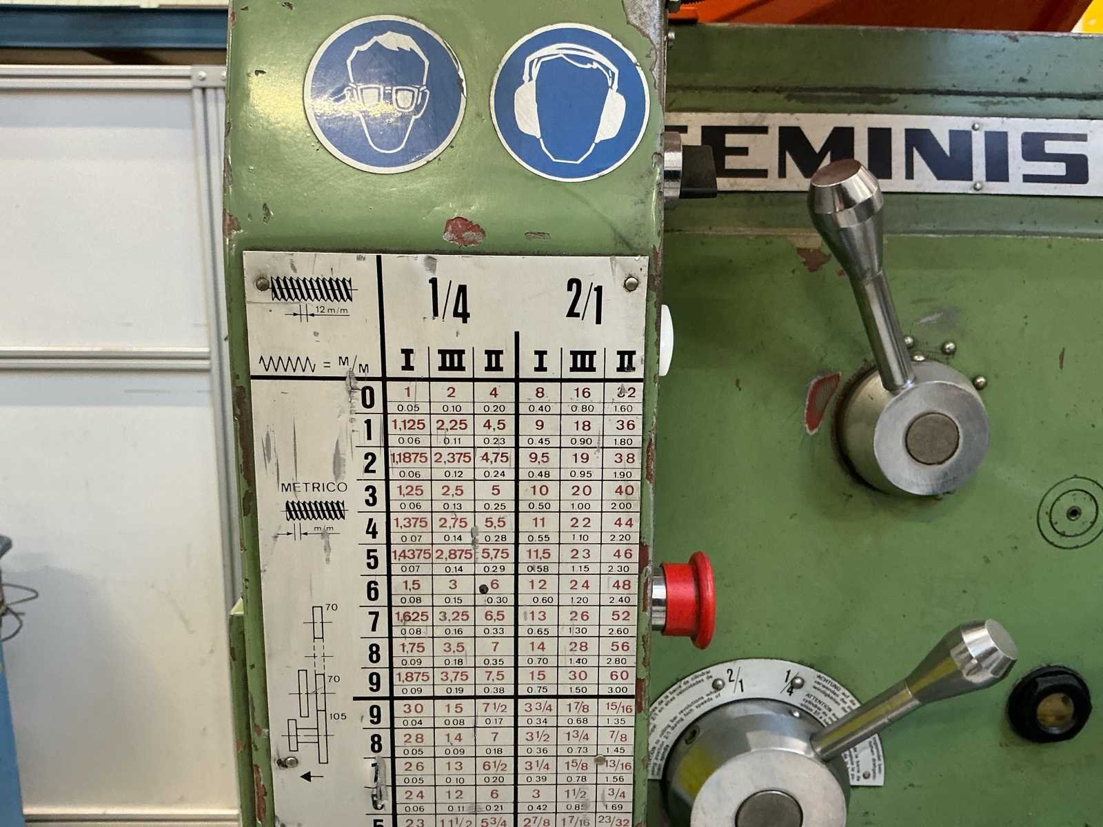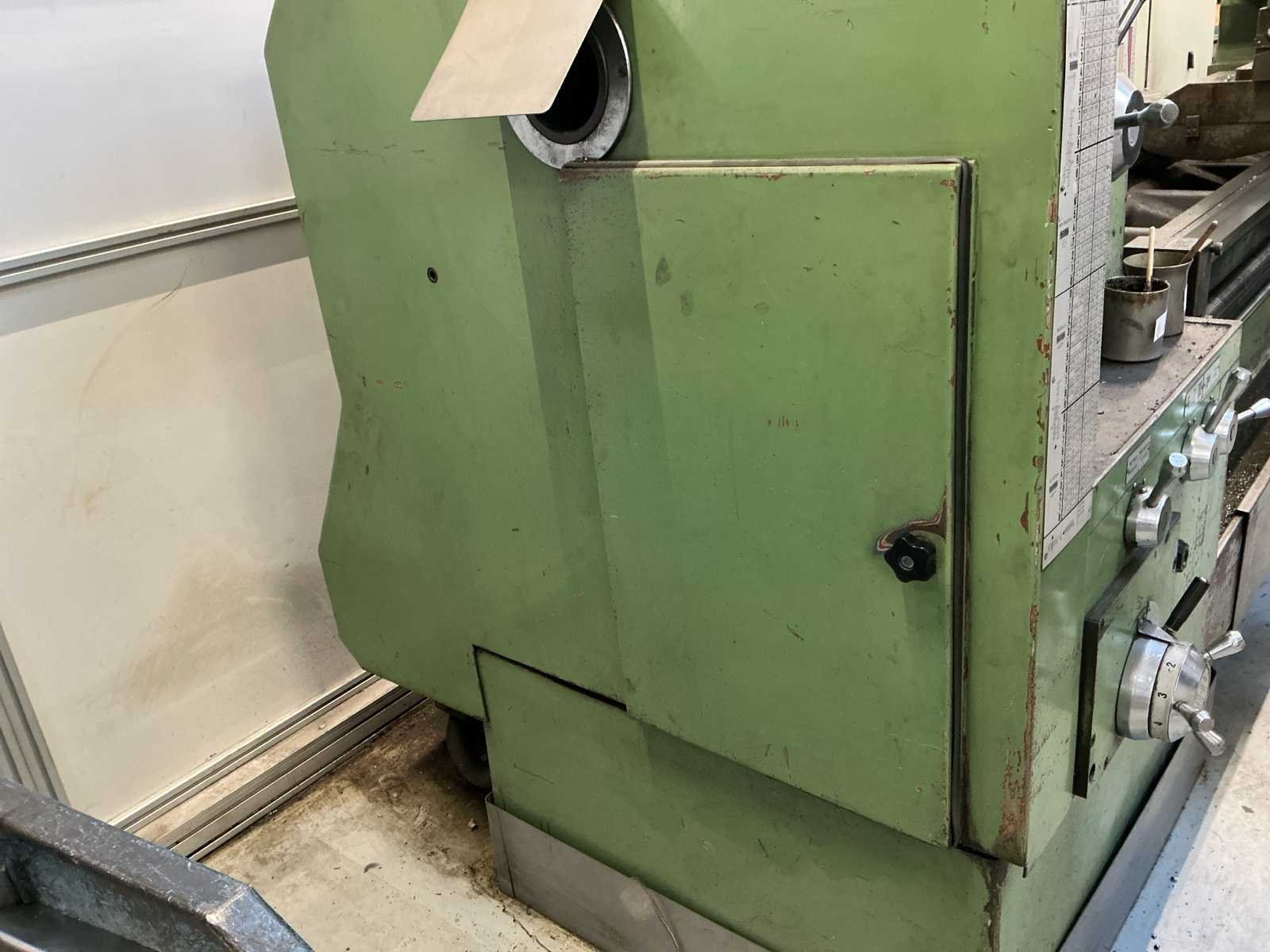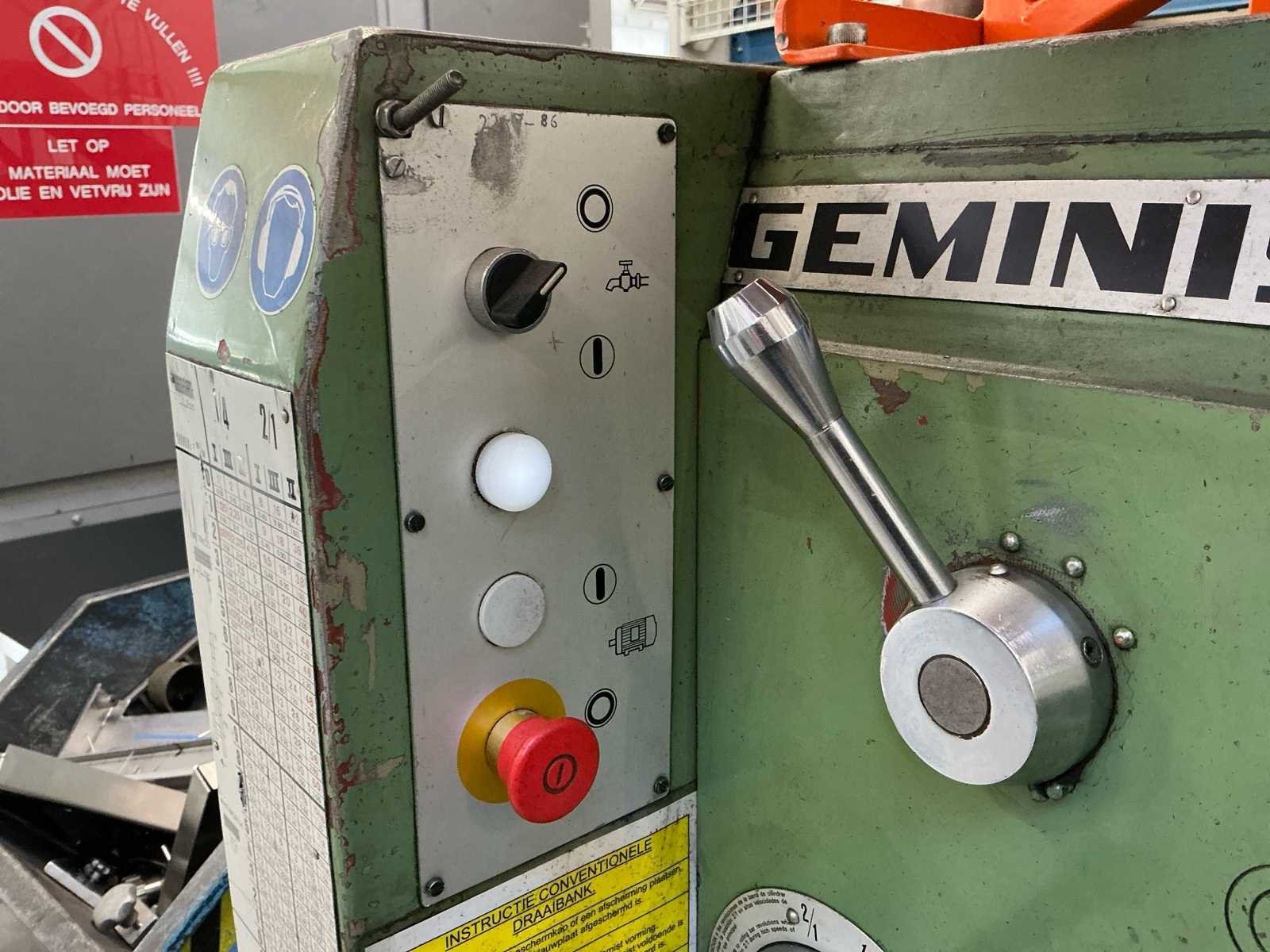 Voorzien van: Geminis GE870S, afstand tussen punten: 2.000 mm, digitale aflezing, elecktrische schakelkast, draadsnijklok, reduceerbus voor hoofdspil, 1 vast center, 1x hoofdspil boring 104mm, 1x hoofdspil boring 162mm, snelverstelling, motor 18,6kW, vaste bril, zelfcenterende 3 klauwplaten 500mm, onafhankelijke 4 klauwplaten 900mm, afmetingen DIN spilneus 8-11, spilsnelheden 18n standaard reeks 13-1000, snelle reeks 16-1250, spoed draadspil 6mm, 48 metrische spoeden van 0,5-30mm, 30 withwort 3/4-50, 48 langsaanzetten, 48 dwarsaanzetten, lengte bedslede 800mm, breedte dwarsslede 350mm, slag van dwarsslede 465mm, slag beilethouder 250mm, beitelschahchtafmeting 40x40mm, spilbusdiameter 100mm, slag spilbus 310mm, spilbusopname Morse 6, bedbreete 550mm, hoogte tot vlakke leibaan 805mm, doorlaat vaste bril 23-350, doorlaat meelopende bril 15-140mm, dubbelwandig bed met grote doorvalopening, 2 stuks 4 klauwen, koppel 5600Nm, ca. 10 stuks beitelhouders met diverse beitels, slijtplaatjes, opname conussen, inspanklauwen, en centers, documentatie aanwezig, aankoopfactuur, schema's, onderhouden machine, jaarlijks gekeurd. No Merk: Gemins Type: GE-870 S-DC Bouwjaar: 1986 Serienummer: N5099hv480 Draailengte: 3000mm Holle spil Ø: 100mm Aantal snelheden: 18 Besturing, merk, type: Fagor Aansluiting: 380V Machinegewicht: 6000kg Afmeting l: 4000mm Afmeting b: 1400mm Afmeting h: 2000mm