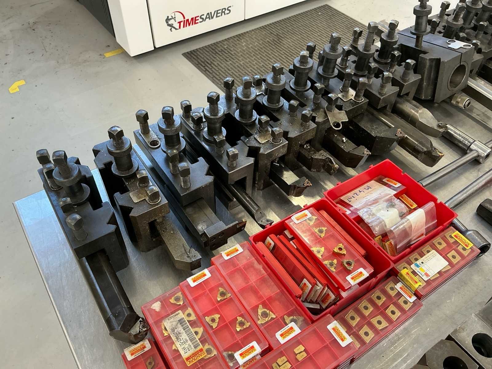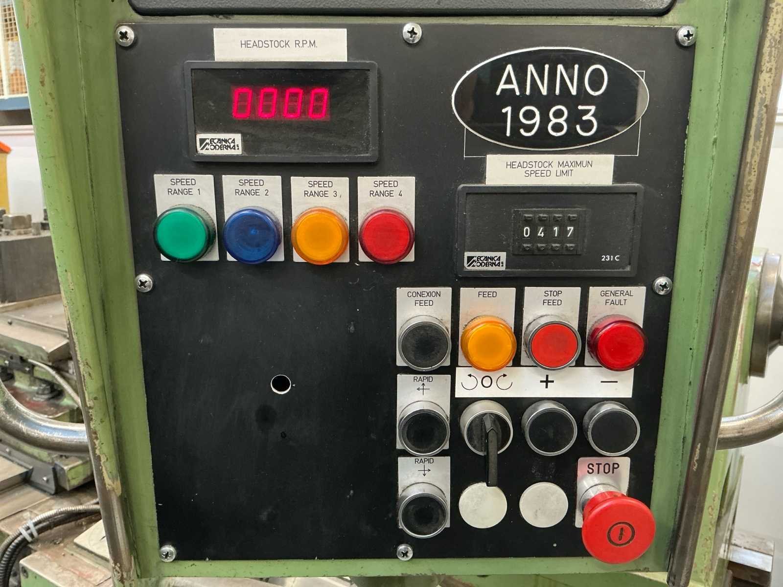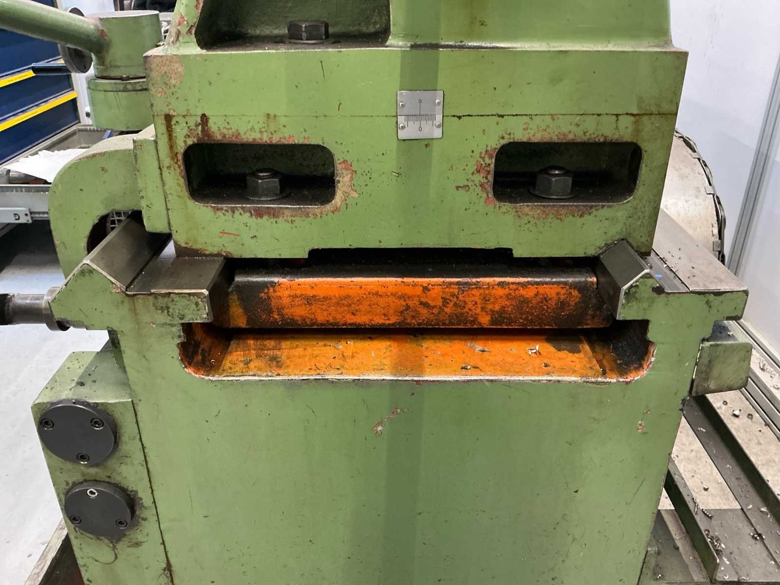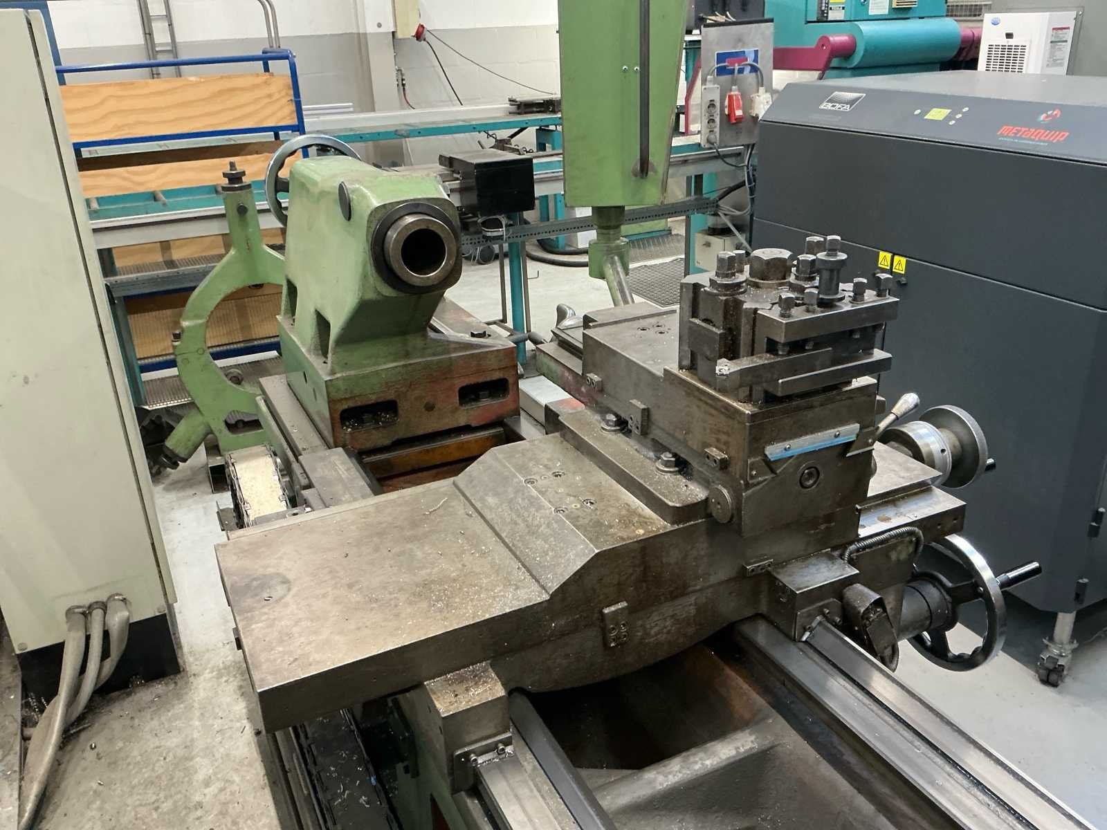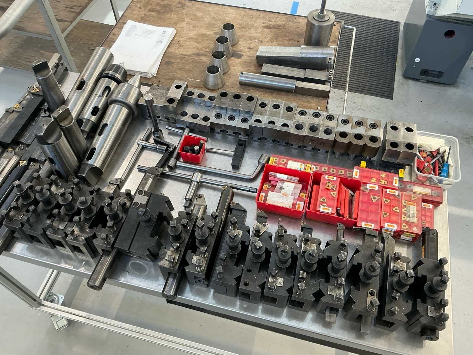 Voorzien van: Geminis GE870S, afstand tussen punten: 2.000 mm, digitale aflezing, elecktrische schakelkast, draadsnijklok, reduceerbus voor hoofdspil, 1 vast center, 1x hoofdspil boring 104mm, 1x hoofdspil boring 162mm, snelverstelling, motor 18,6kW, vaste bril, zelfcenterende 3 klauwplaten 500mm, onafhankelijke 4 klauwplaten 900mm, afmetingen DIN spilneus 8-11, spilsnelheden 18n standaard reeks 13-1000, snelle reeks 16-1250, spoed draadspil 6mm, 48 metrische spoeden van 0,5-30mm, 30 withwort 3/4-50, 48 langsaanzetten, 48 dwarsaanzetten, lengte bedslede 800mm, breedte dwarsslede 350mm, slag van dwarsslede 465mm, slag beilethouder 250mm, beitelschahchtafmeting 40x40mm, spilbusdiameter 100mm, slag spilbus 310mm, spilbusopname Morse 6, bedbreete 550mm, hoogte tot vlakke leibaan 805mm, doorlaat vaste bril 23-350, doorlaat meelopende bril 15-140mm, dubbelwandig bed met grote doorvalopening, 2 stuks 4 klauwen, koppel 5600Nm, ca. 10 stuks beitelhouders met diverse beitels, slijtplaatjes, opname conussen, inspanklauwen, en centers, documentatie aanwezig, aankoopfactuur, schema's, onderhouden machine, jaarlijks gekeurd. No Merk: Gemins Type: GE-870 S-DC Bouwjaar: 1986 Serienummer: N5099hv480 Draailengte: 3000mm Holle spil Ø: 100mm Aantal snelheden: 18 Besturing, merk, type: Fagor Aansluiting: 380V Machinegewicht: 6000kg Afmeting l: 4000mm Afmeting b: 1400mm Afmeting h: 2000mm